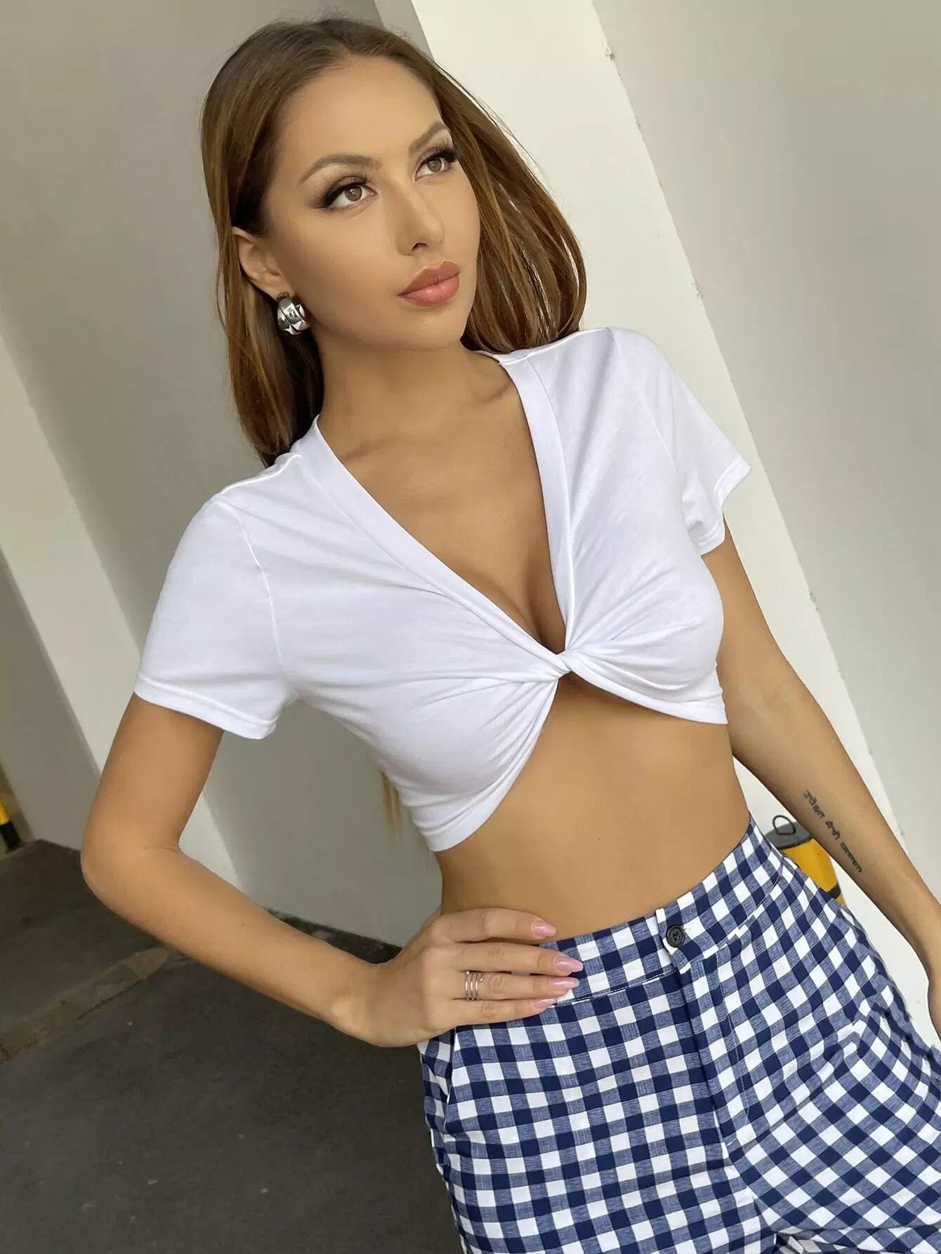 تي شيرت سوليد تويست قصير قصير ملتف