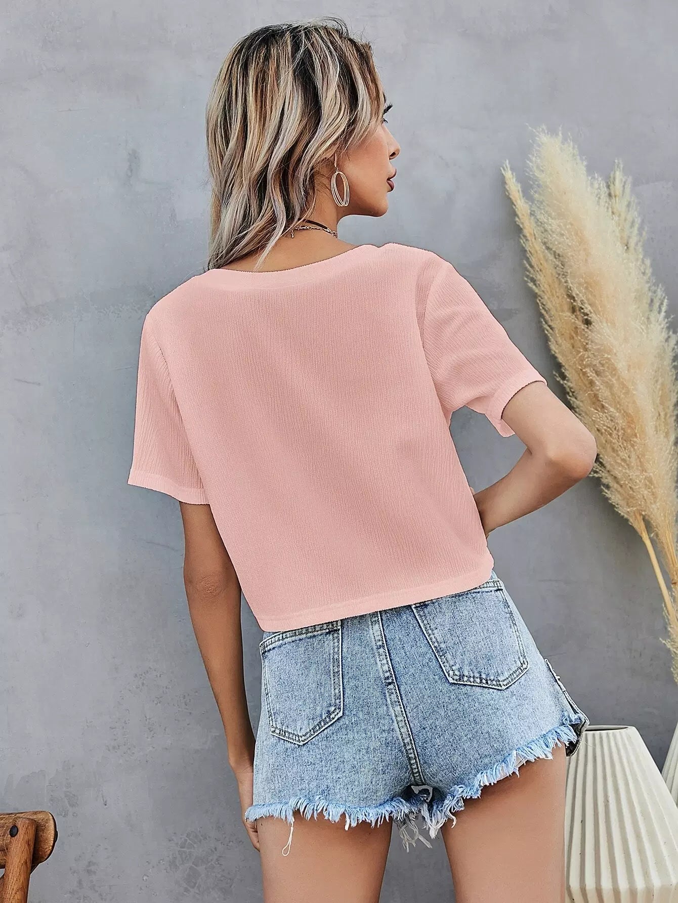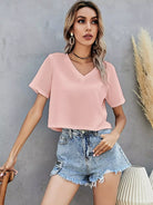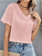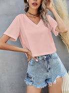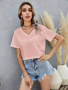 النساء - تي شيرت سادة برقبة على شكل حرف V