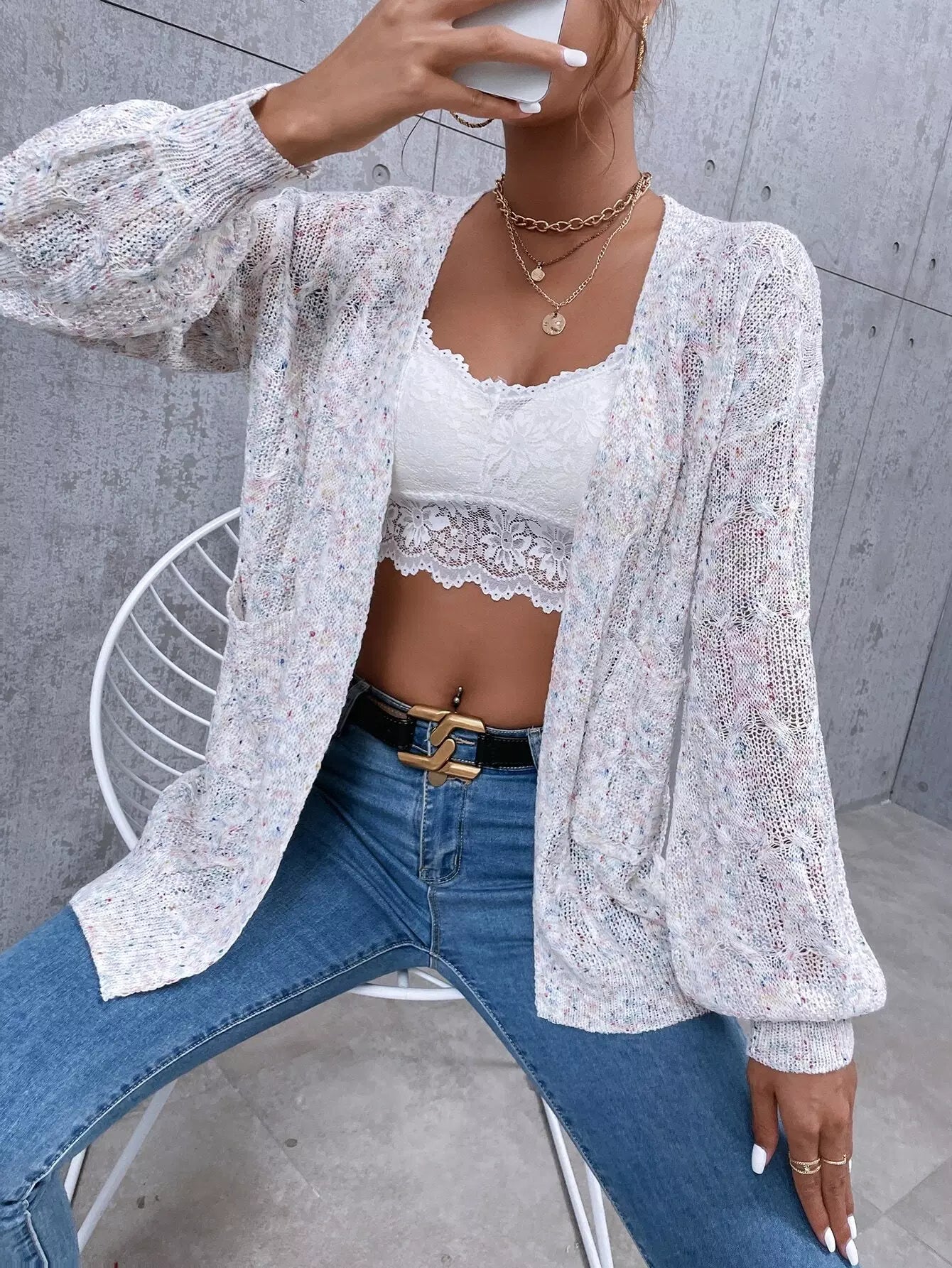 كارديجان محبوك منسدل الكتفين ذو جيبين منسدل الكتفين مصبوغ بالصبغة الفضائية