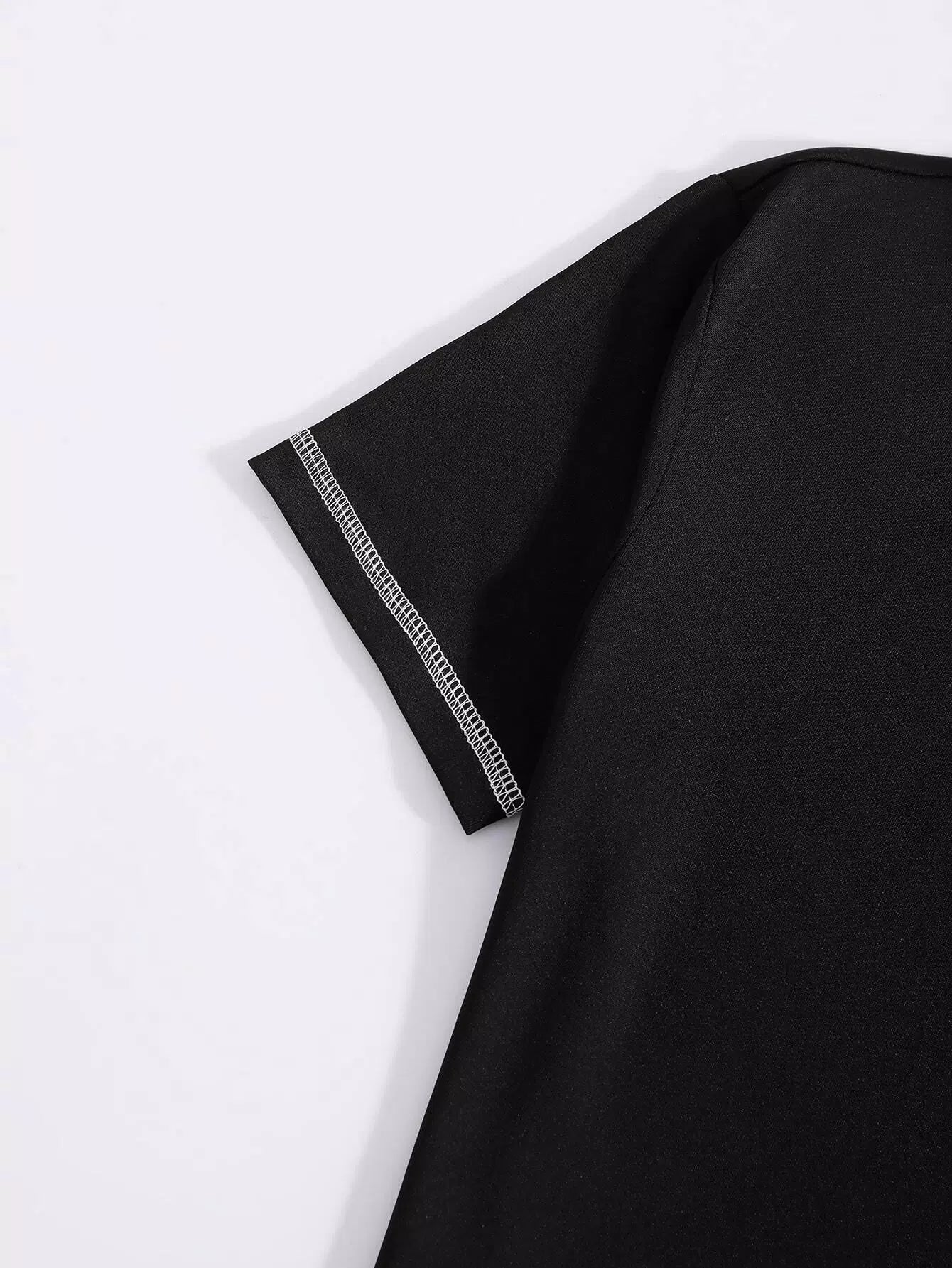 تي شيرت بطبعة شبكة عنكبوت بخياطة علوية