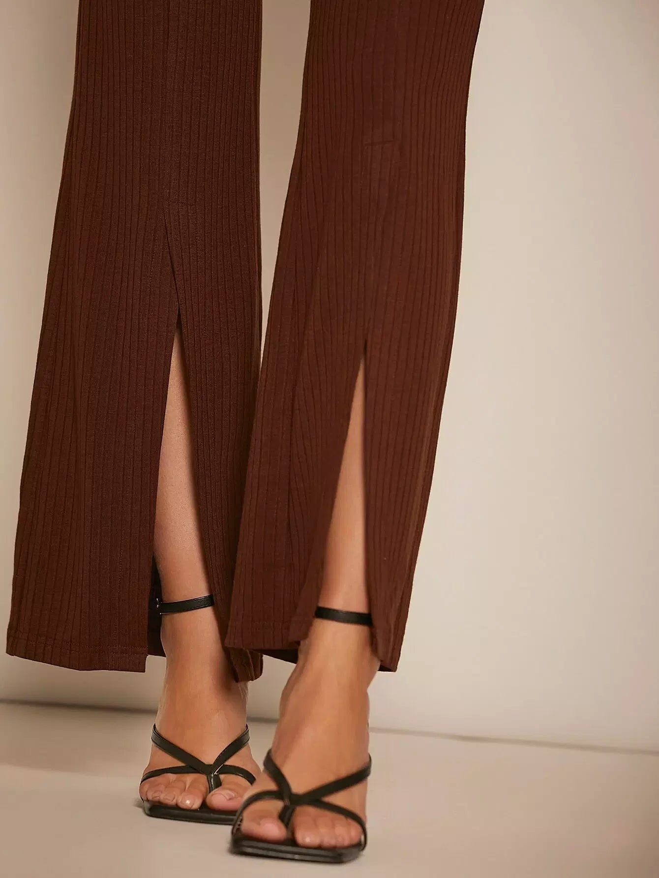 بنطلون بحواف منقسمة على الساقين واسعة الساقين