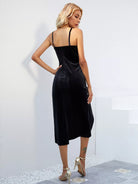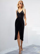 فستان كامي مخملي مخملي مشقوق الفخذين