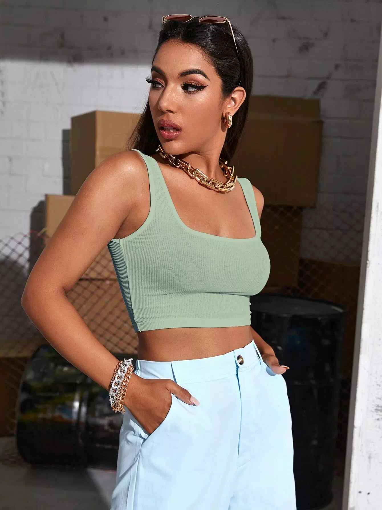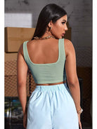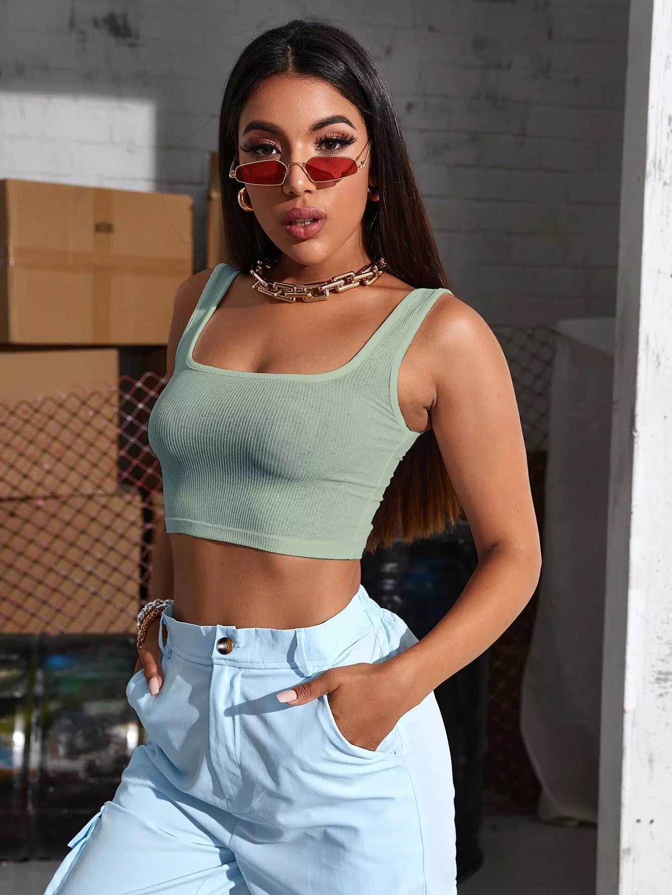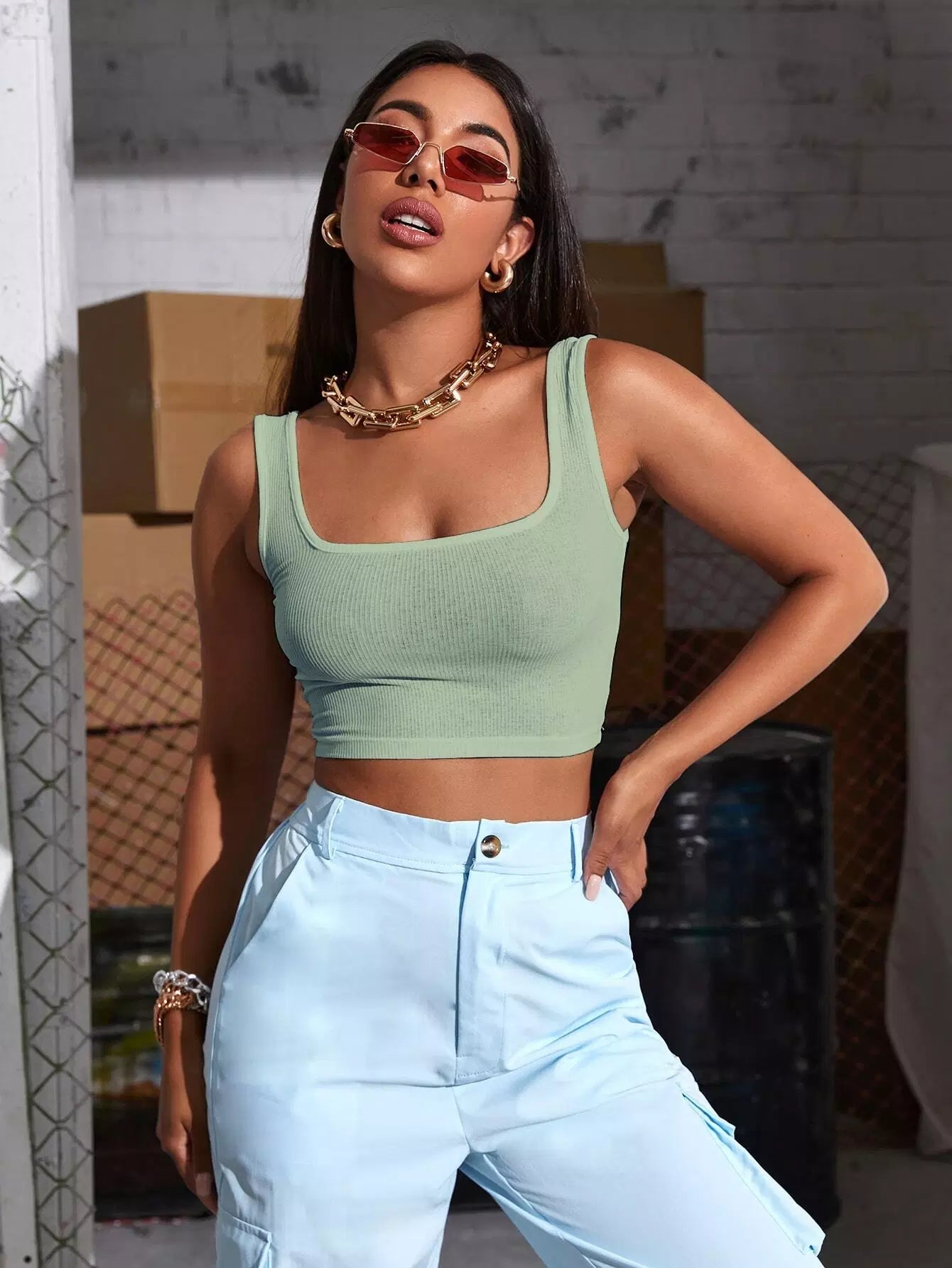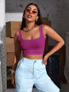بلوزة قصيرة محبوكة بفتحة رقبة مربعة