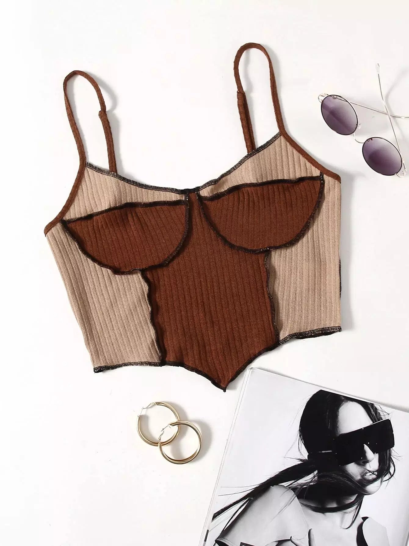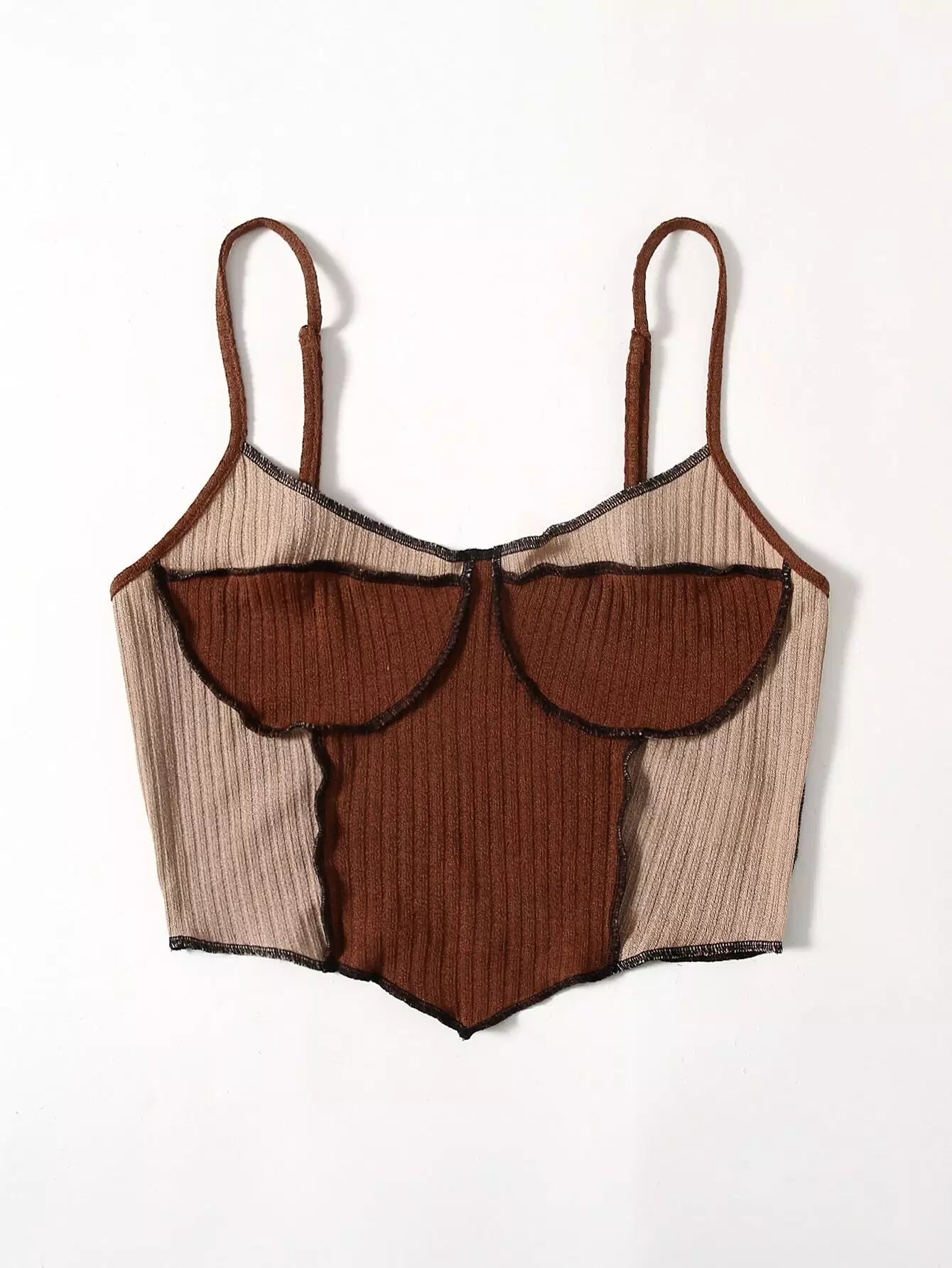 بلوزة كامي بحافة غير متناسقة ذات خياطة غير متناظرة ملونة