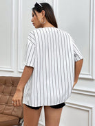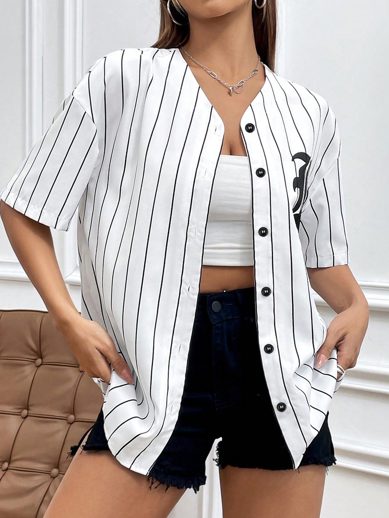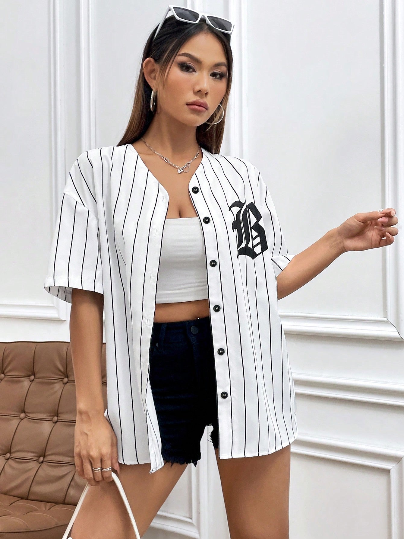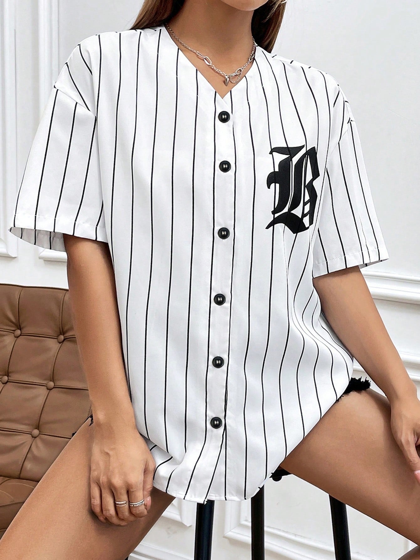 StreetHx Striped Drop Shoulder Baseball Shirt With Letter Print