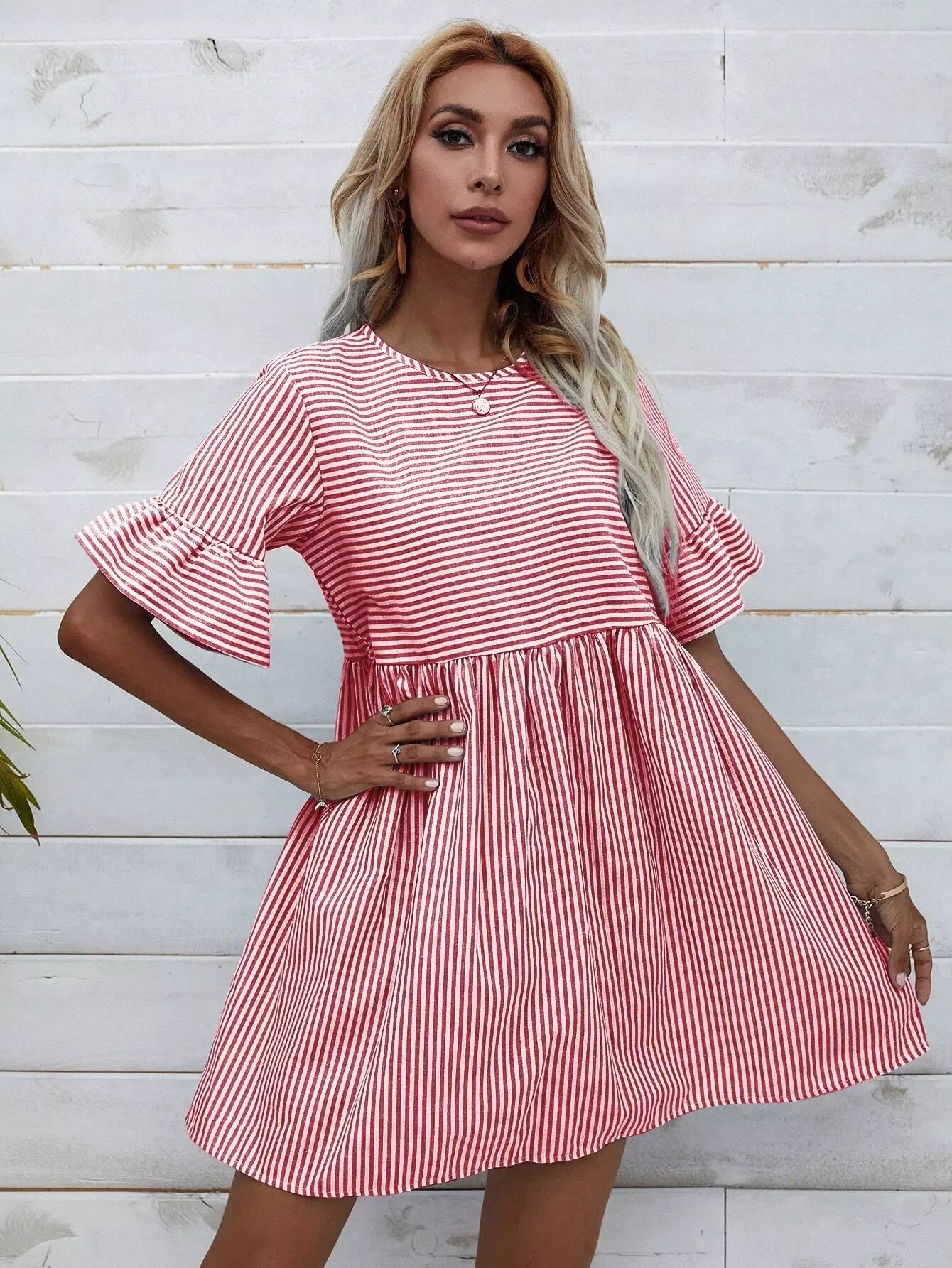 فستان بأكمام مخططة بأكمام جرس مخطط