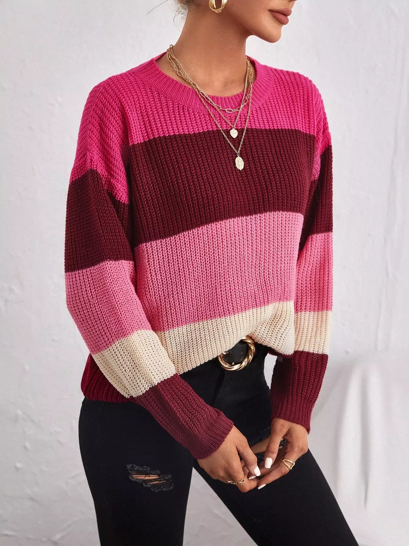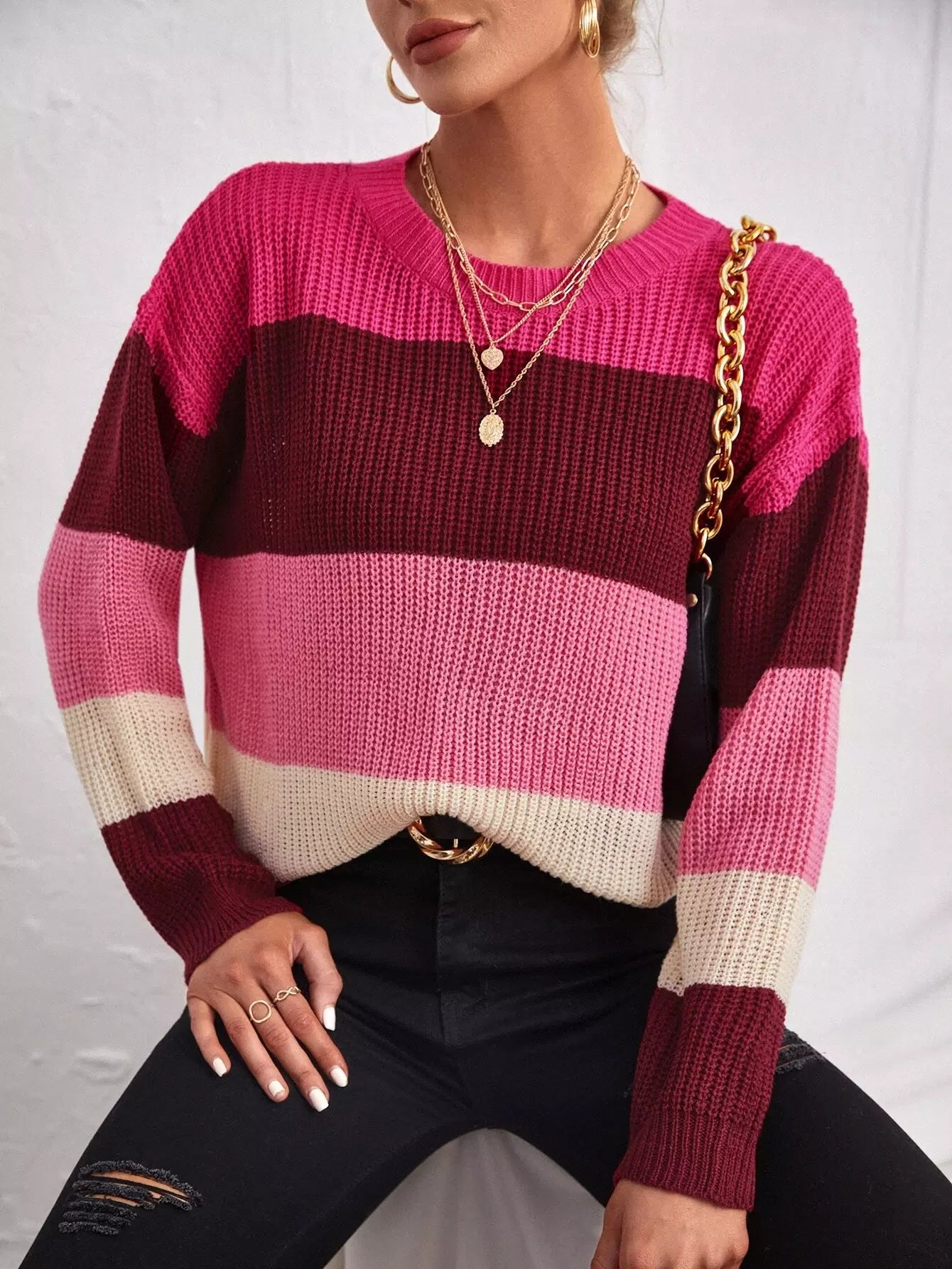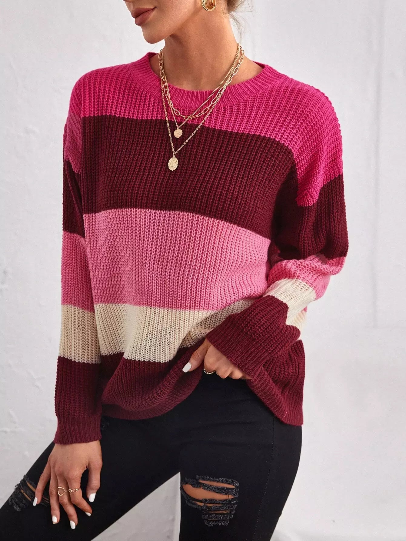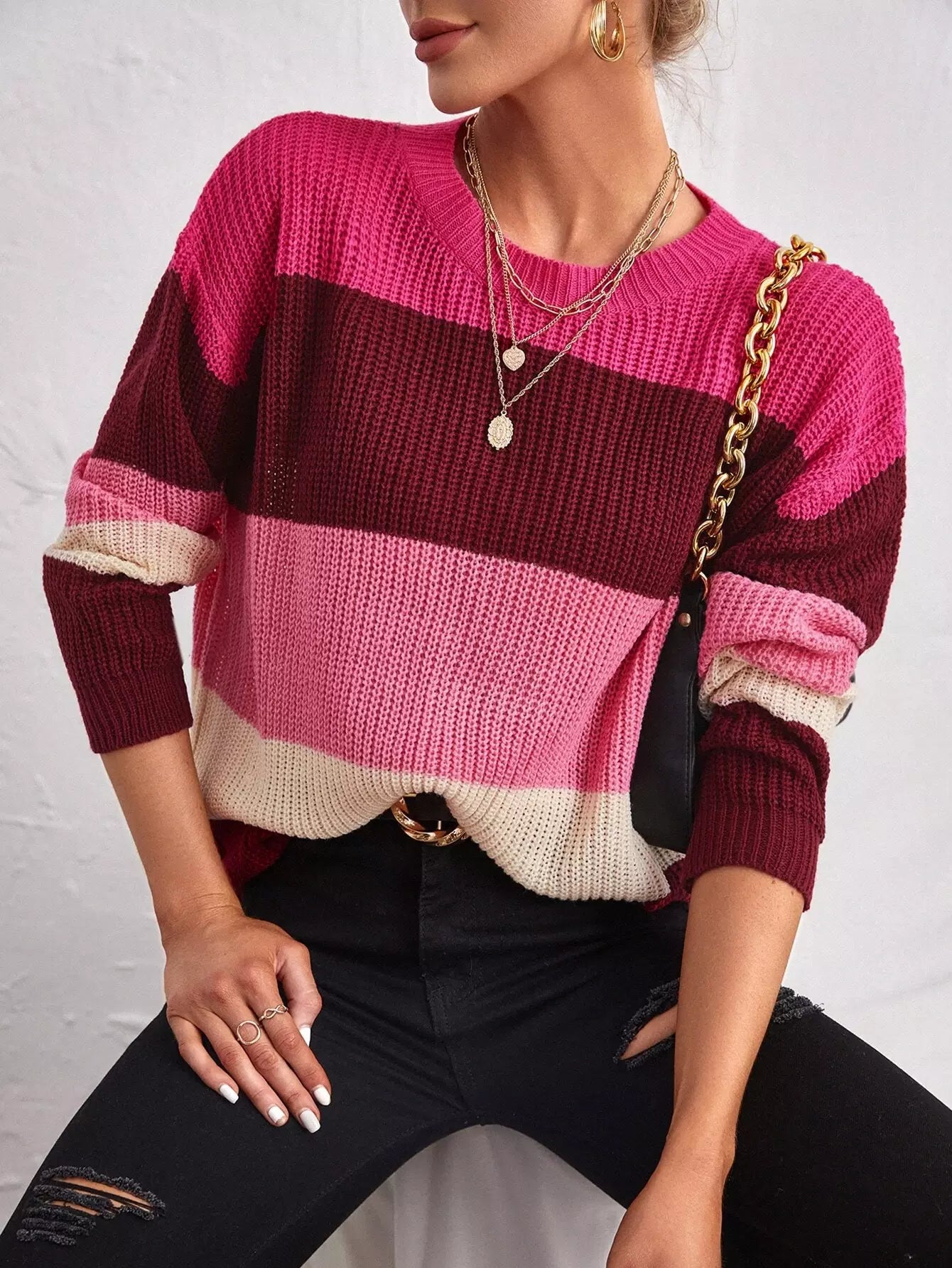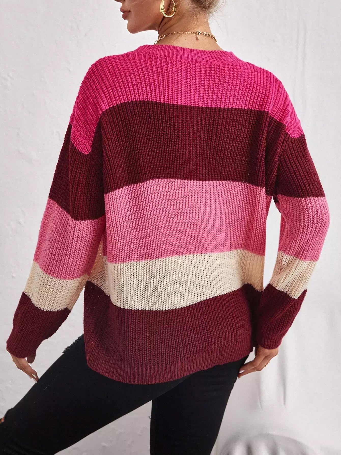 سترة مخططة منسدلة الكتفين ملونة الأكتاف مخططة