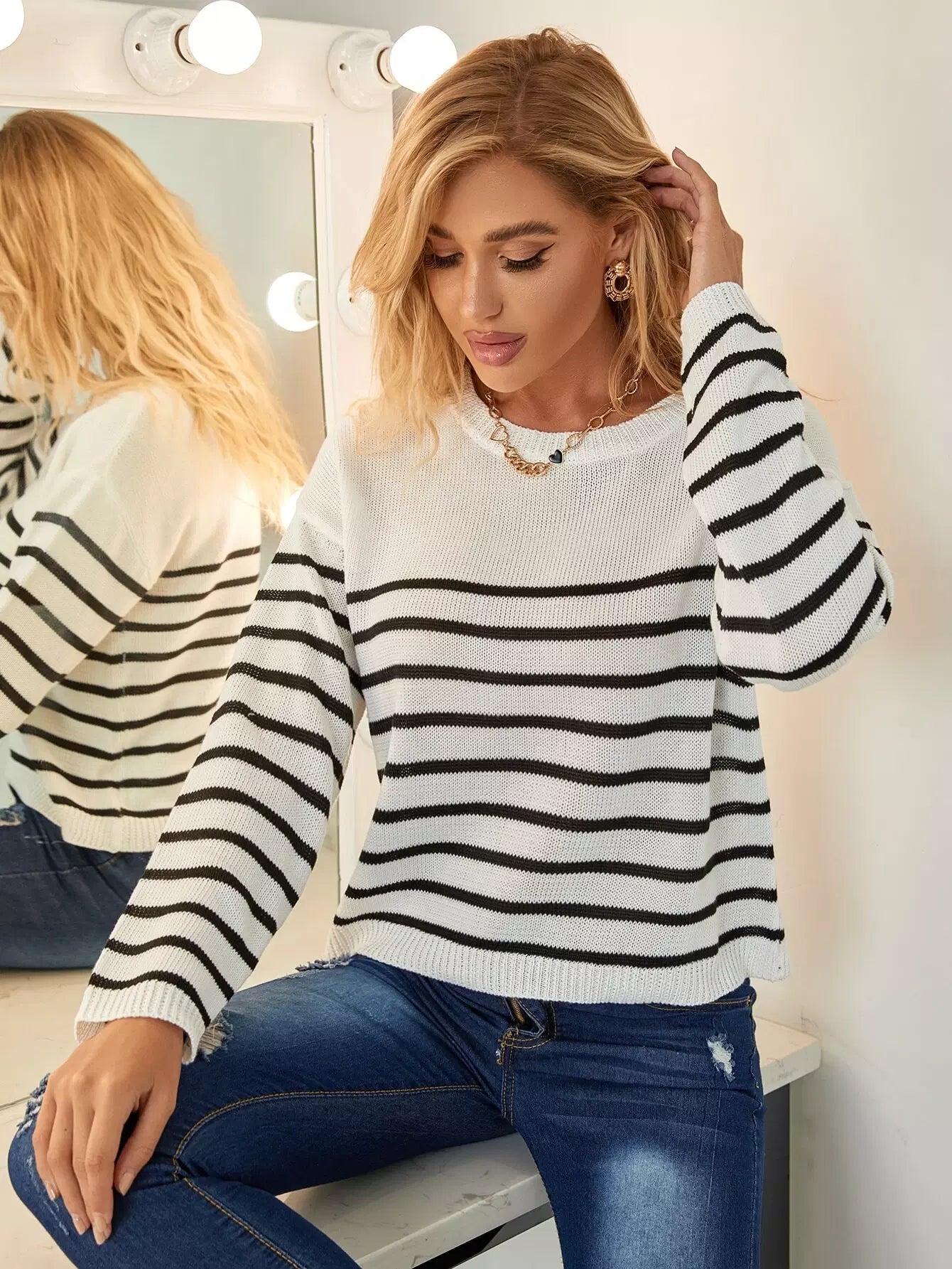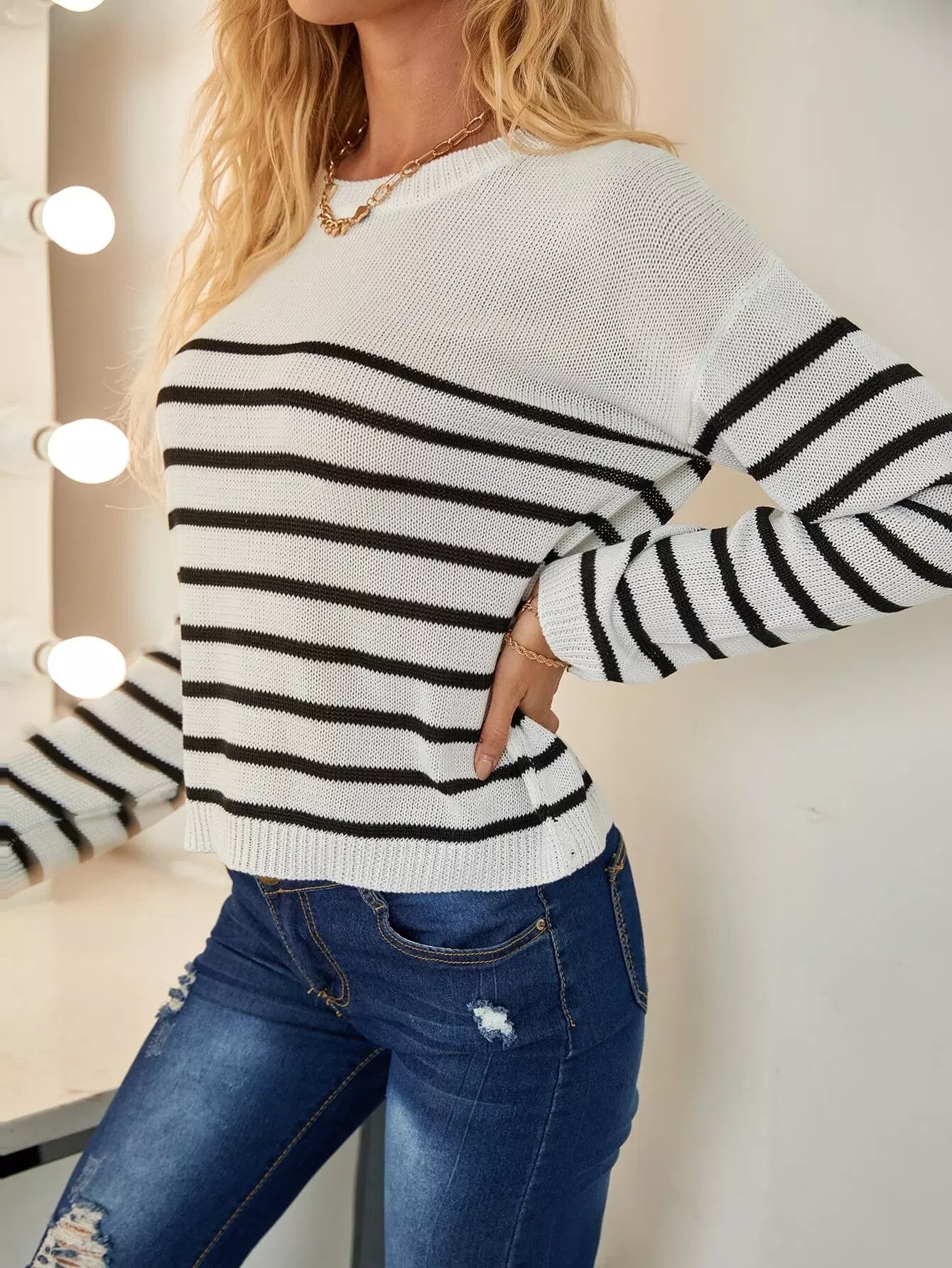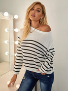 كنزة مخططة منسدلة الكتفين