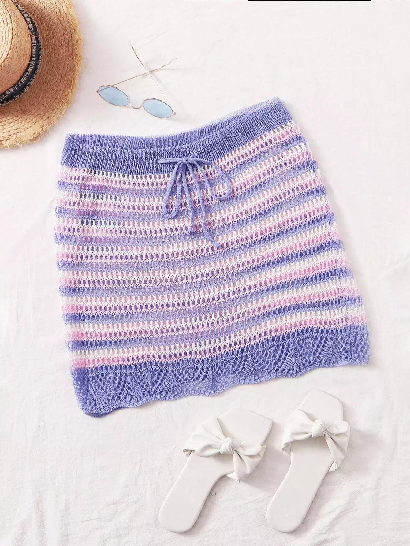 تنورة تغطية محبوكة مخططة