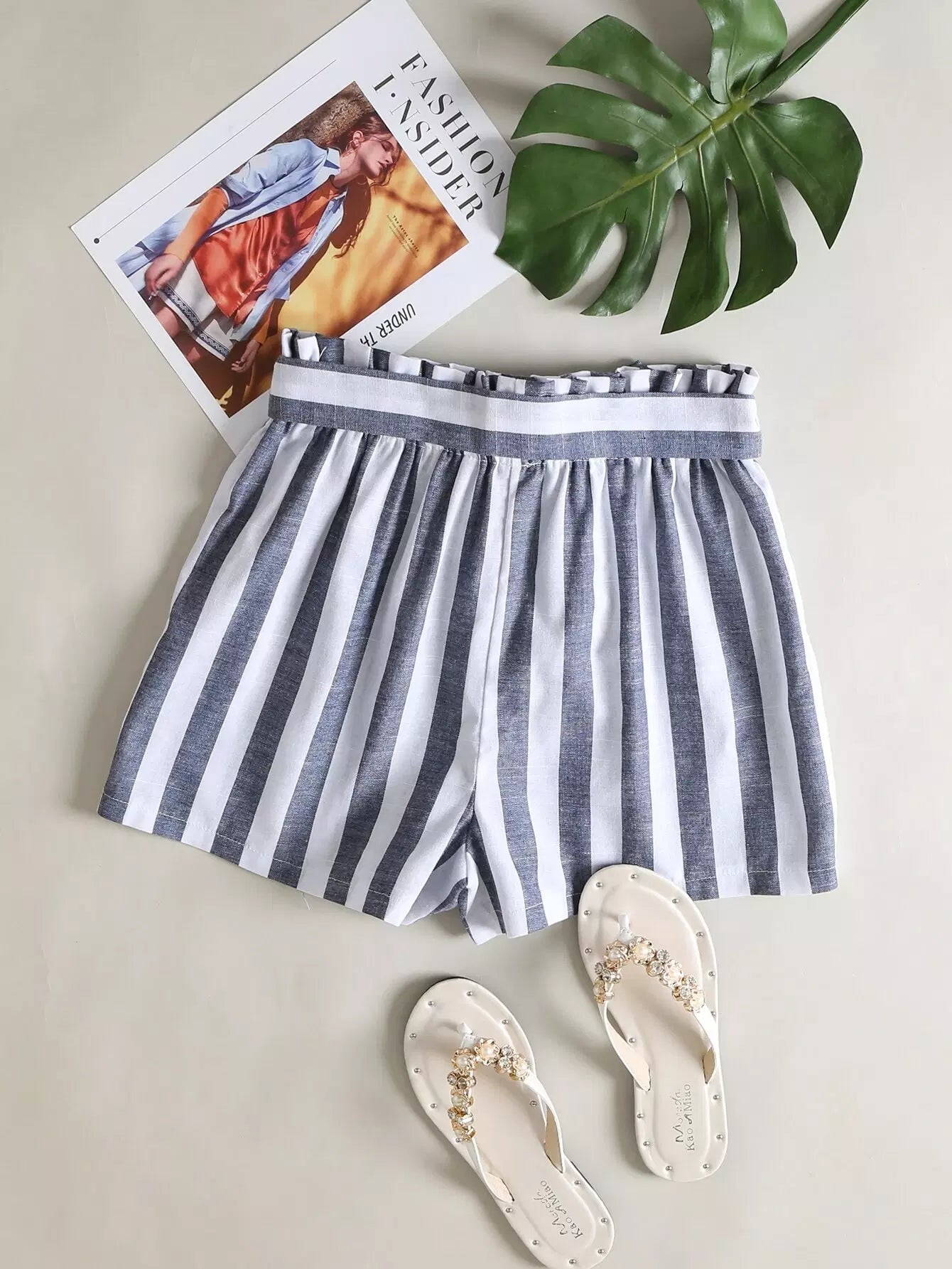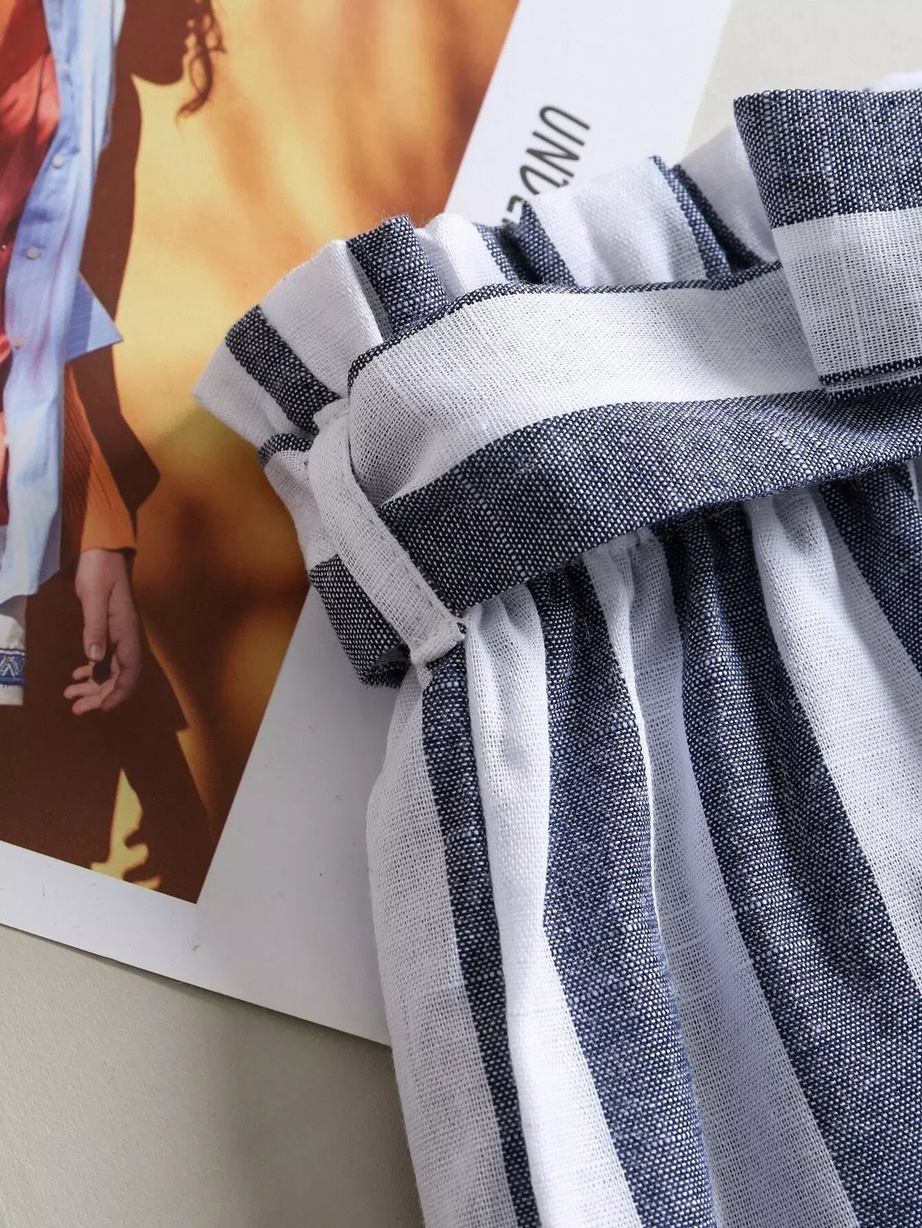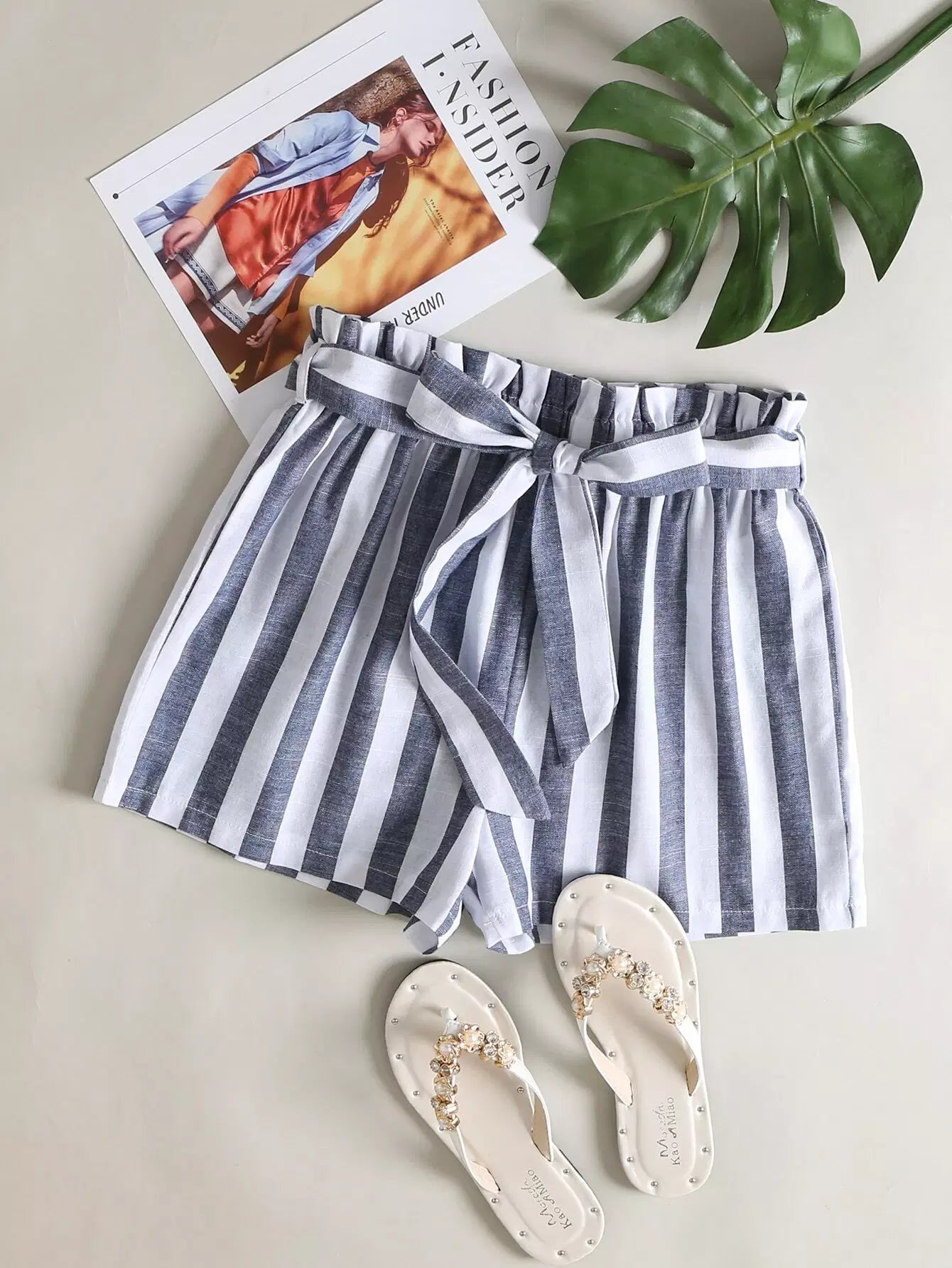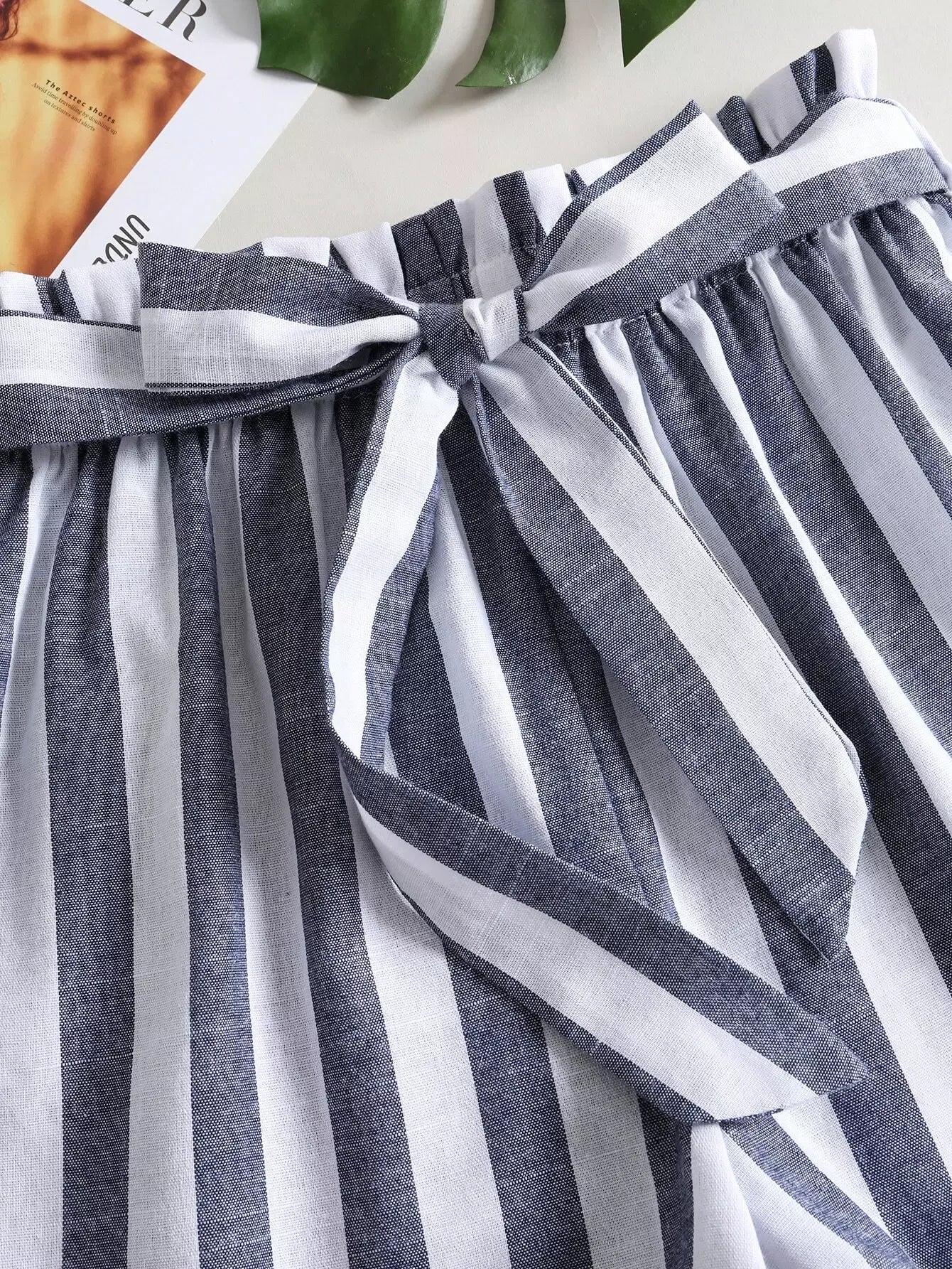 شورت خصر مخطط على شكل حقيبة ورقية بدون حزام