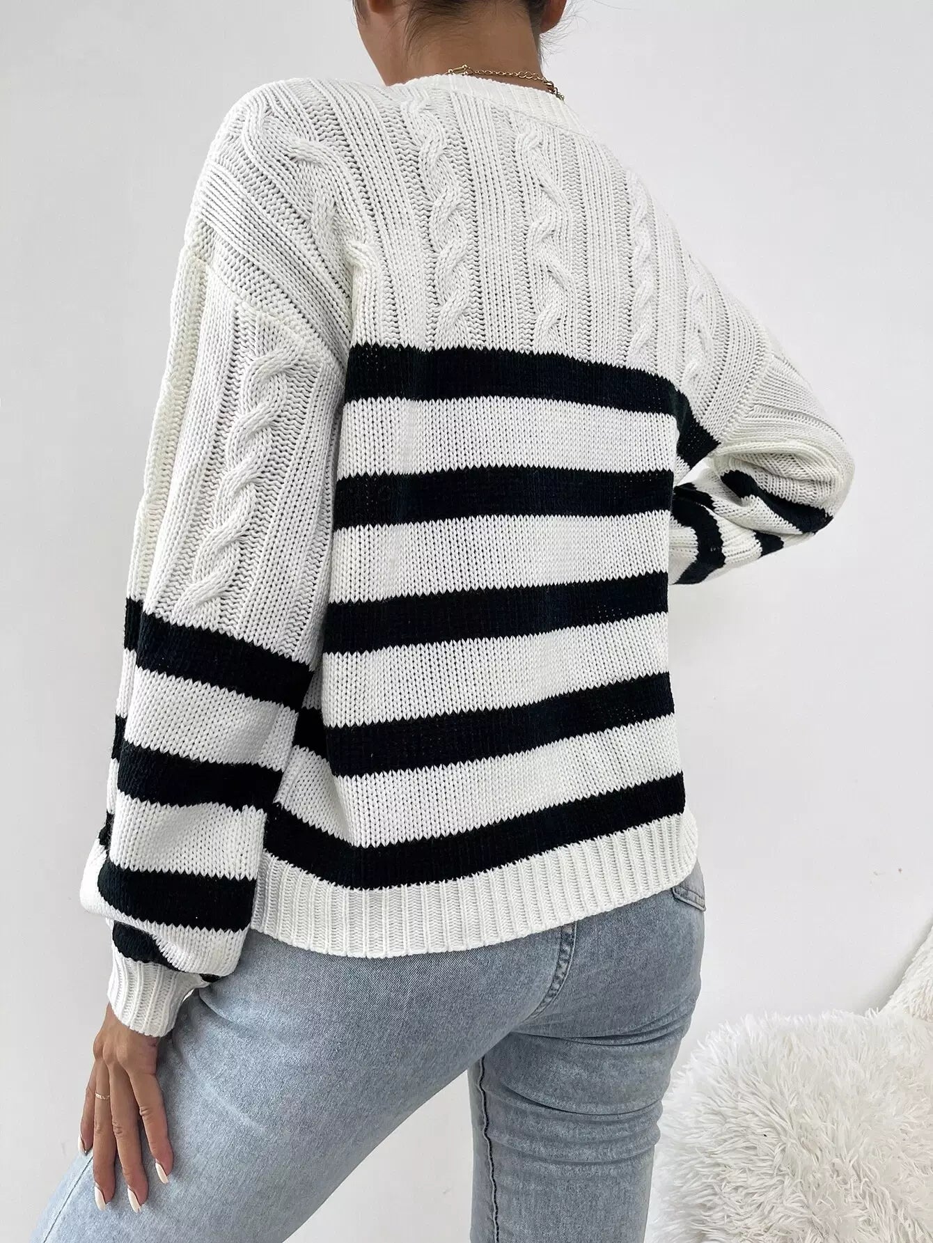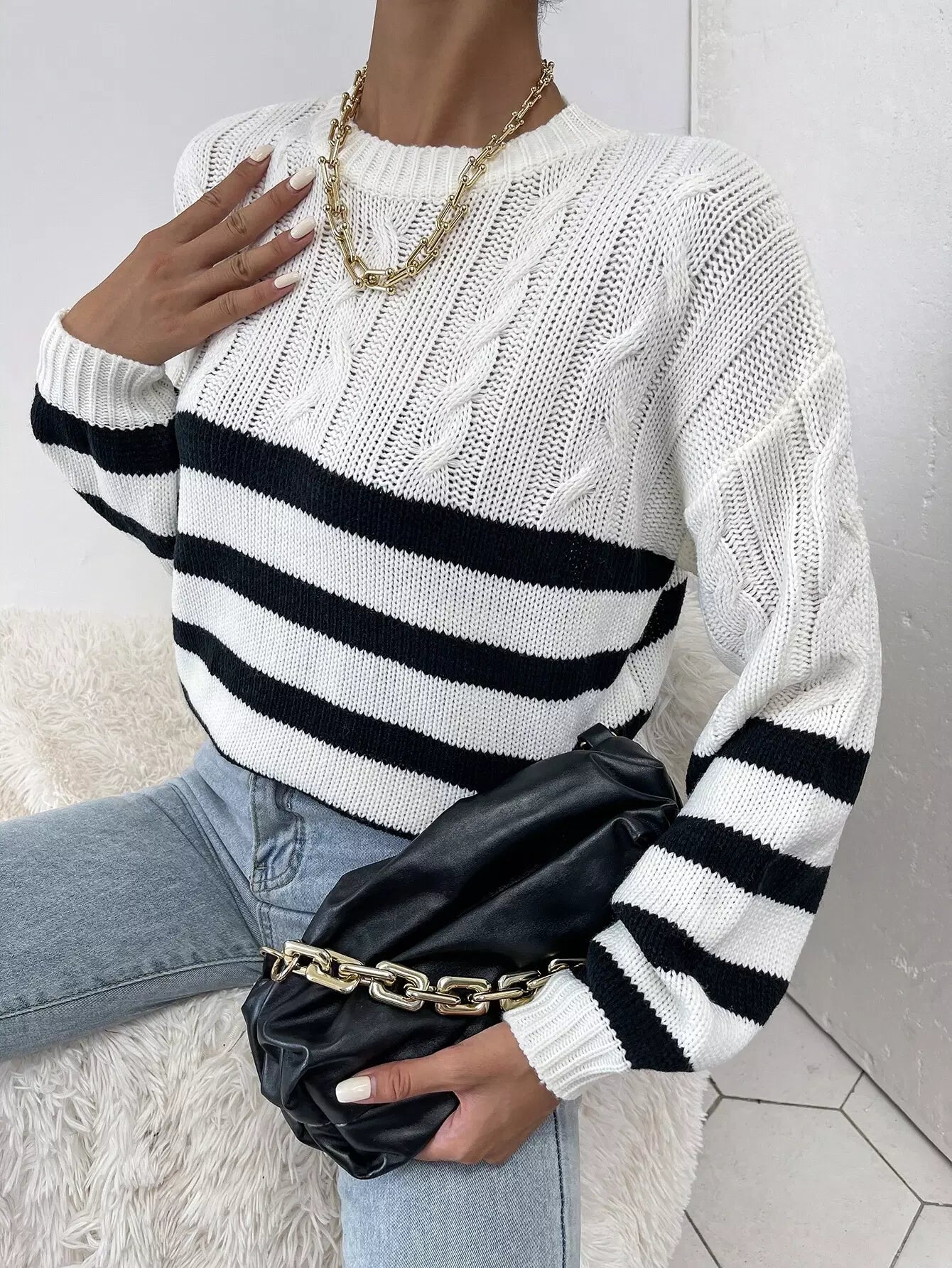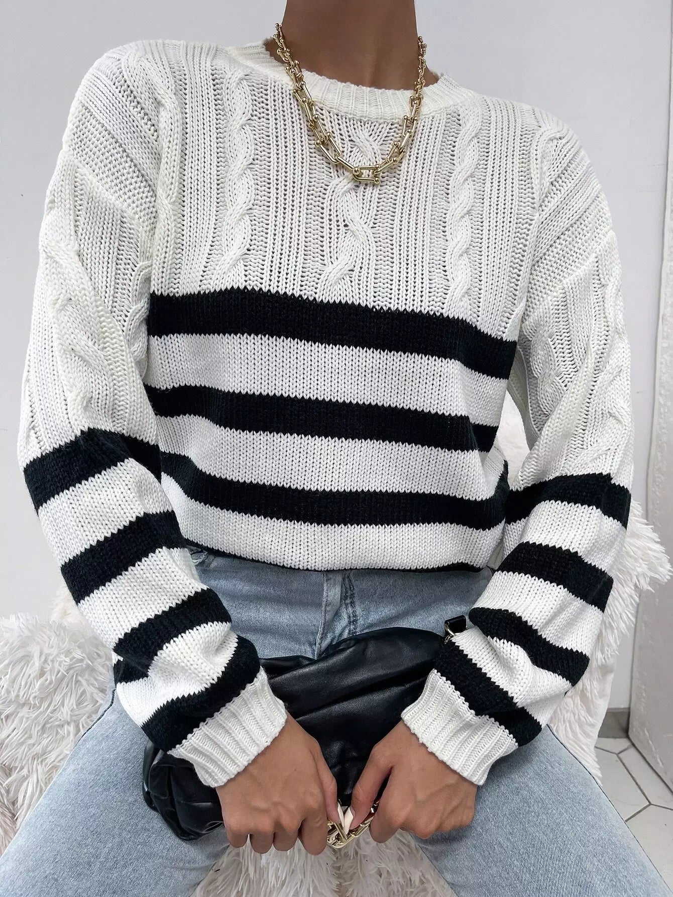 كنزة مخططة منسدلة الكتفين بنقشة مخططة