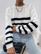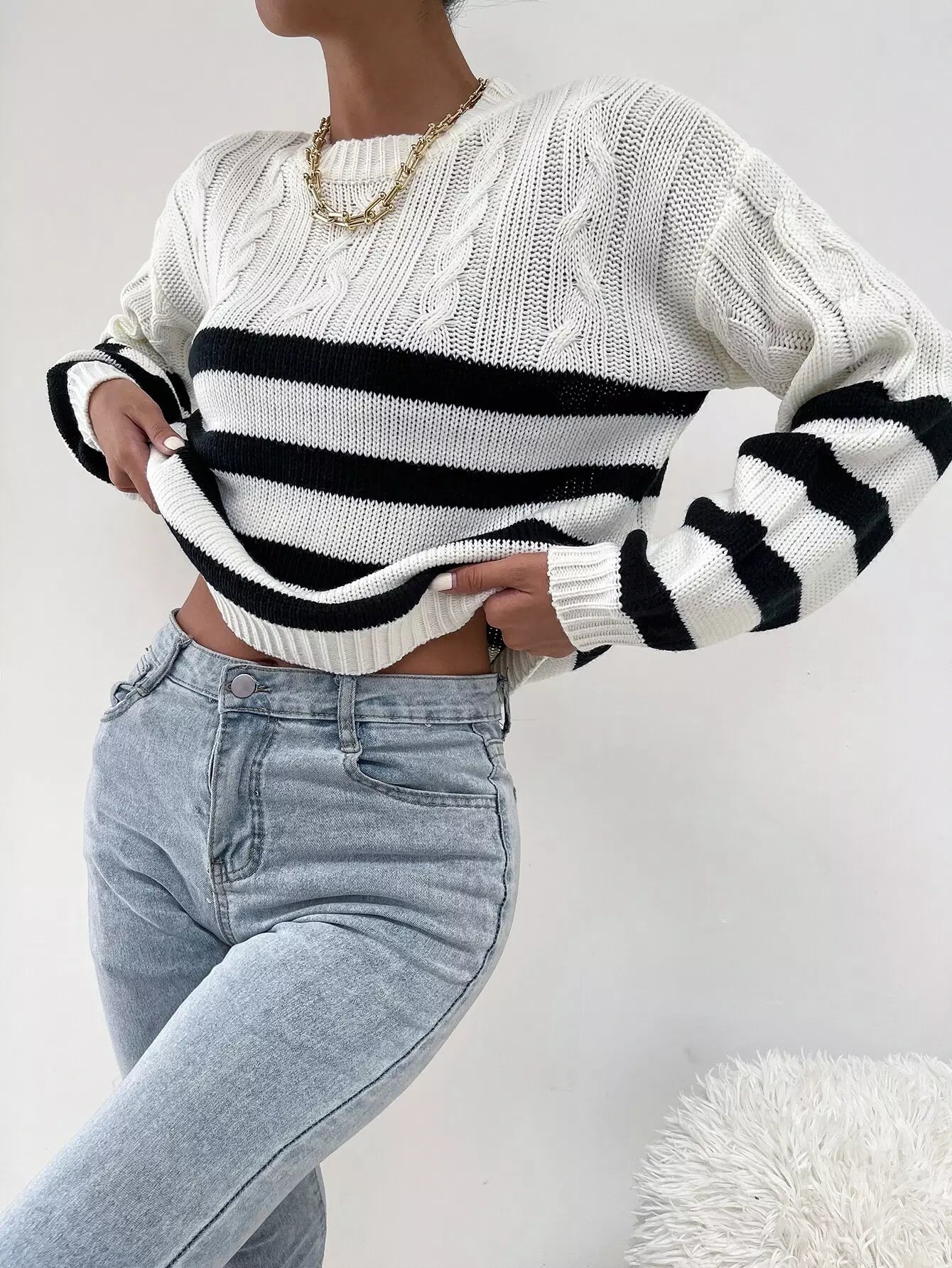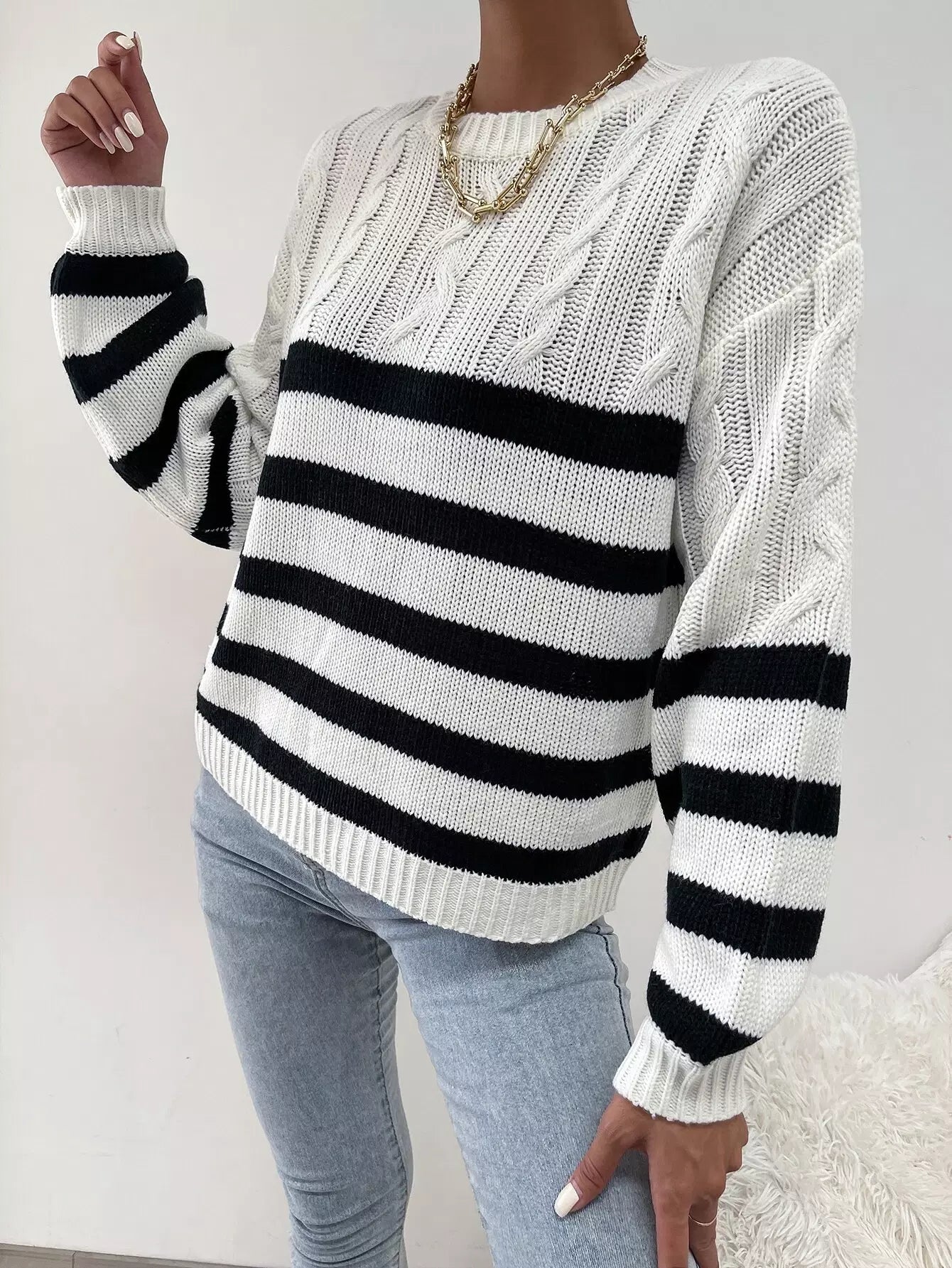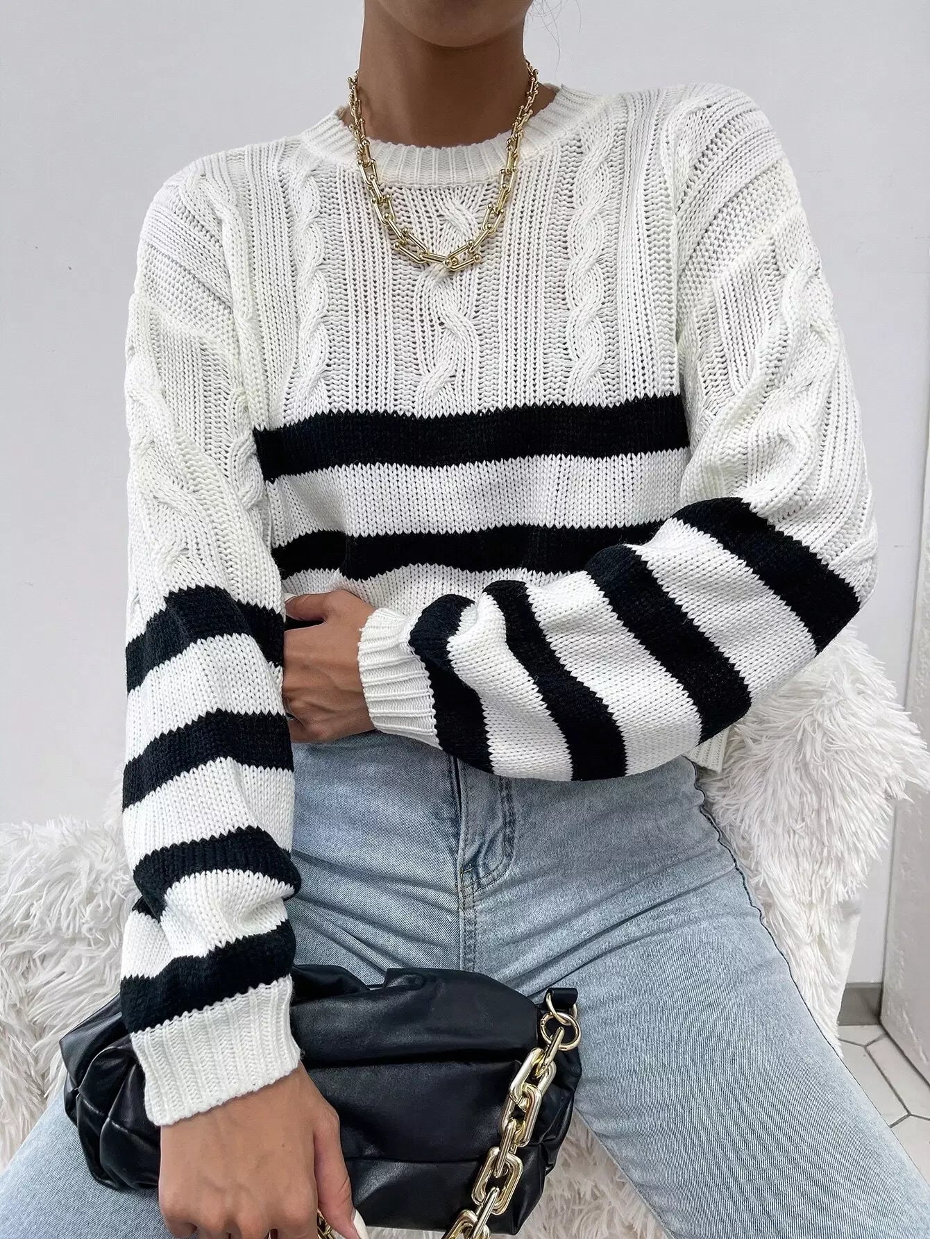 كنزة مخططة منسدلة الكتفين بنقشة مخططة