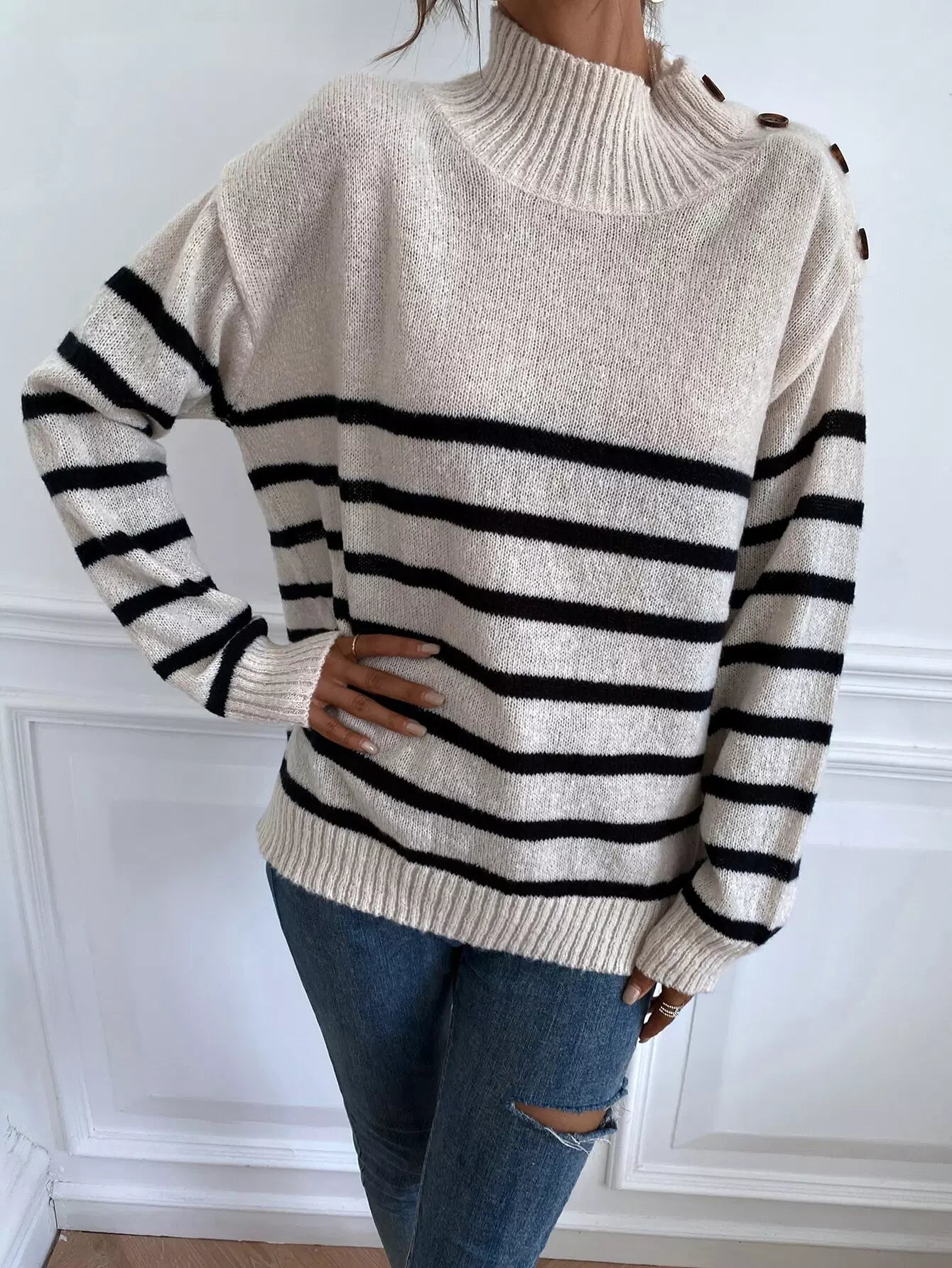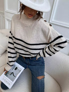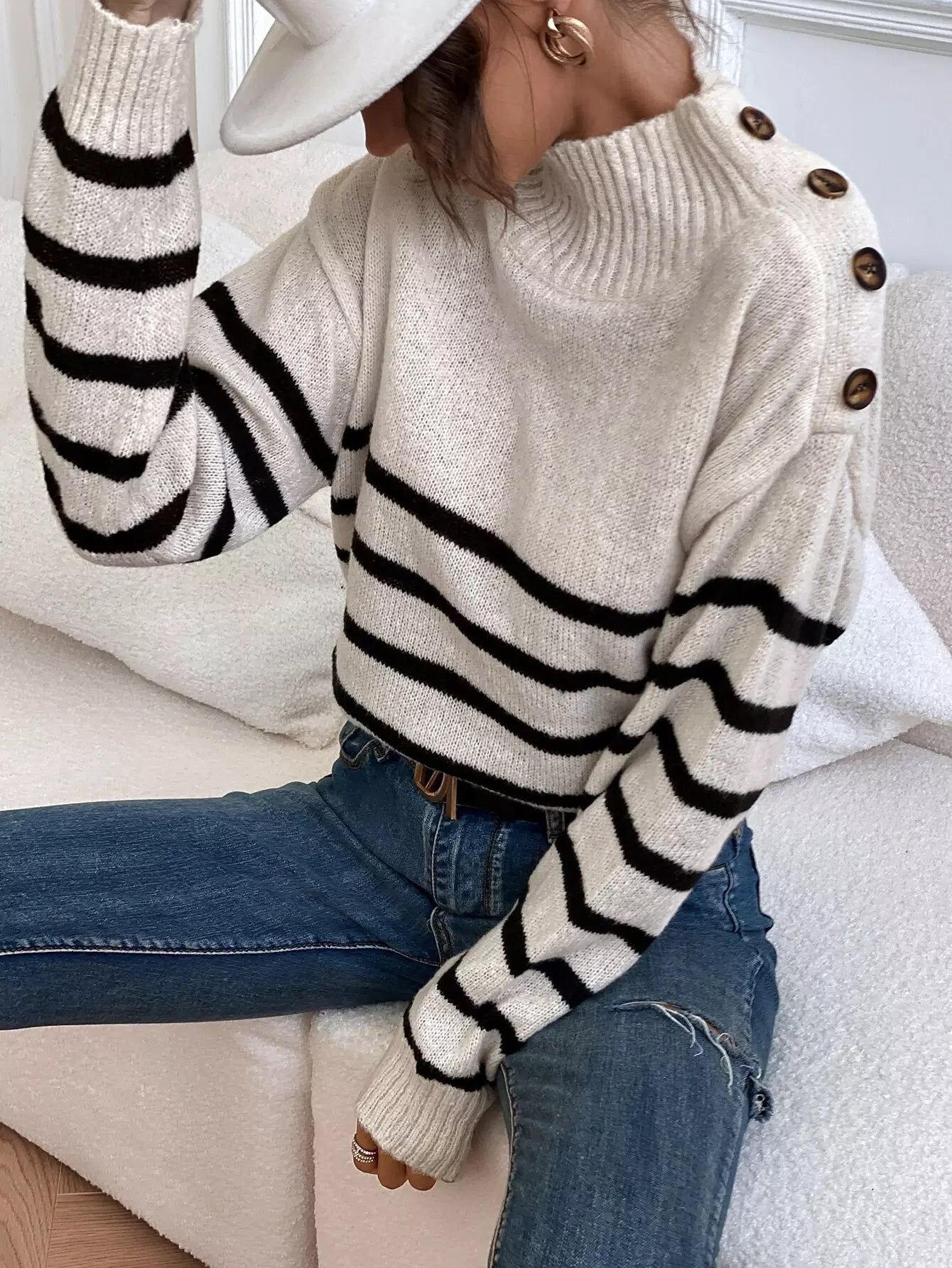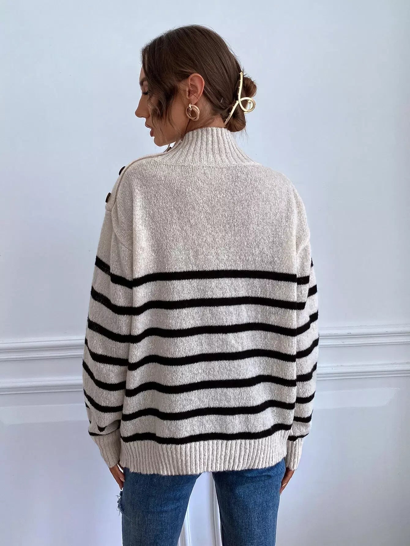 كنزة مخططة منسدلة الكتفين بنقشة مخططة