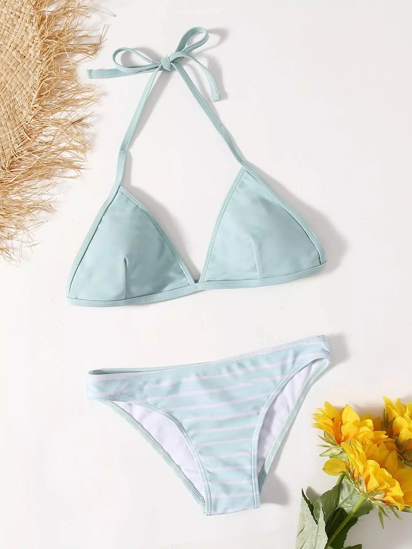 بيكيني سباحة بيكيني بطبعة مخططة على الرسن