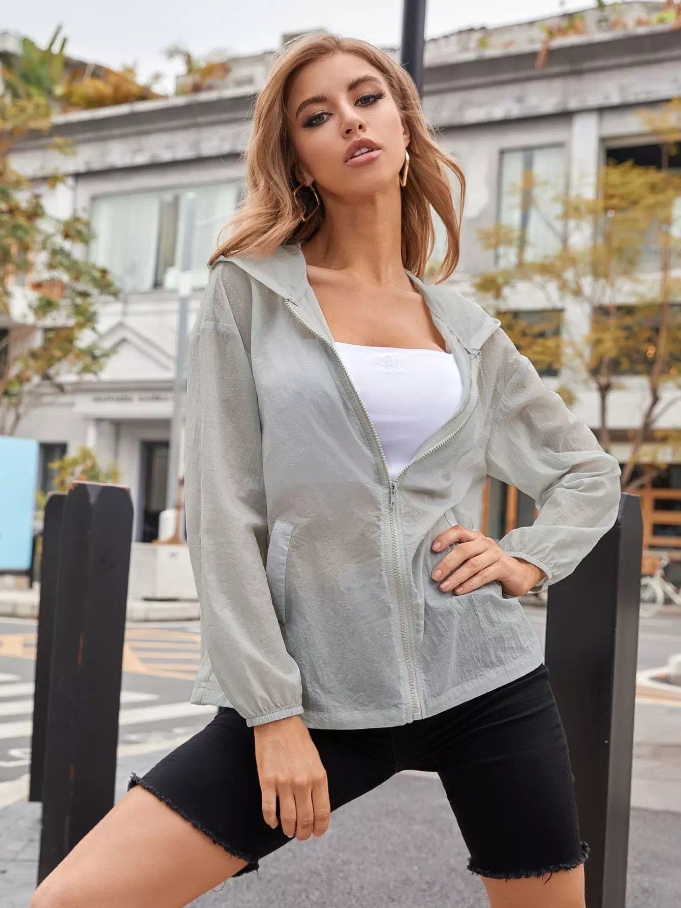 سترة بقلنسوة واقية من الشمس