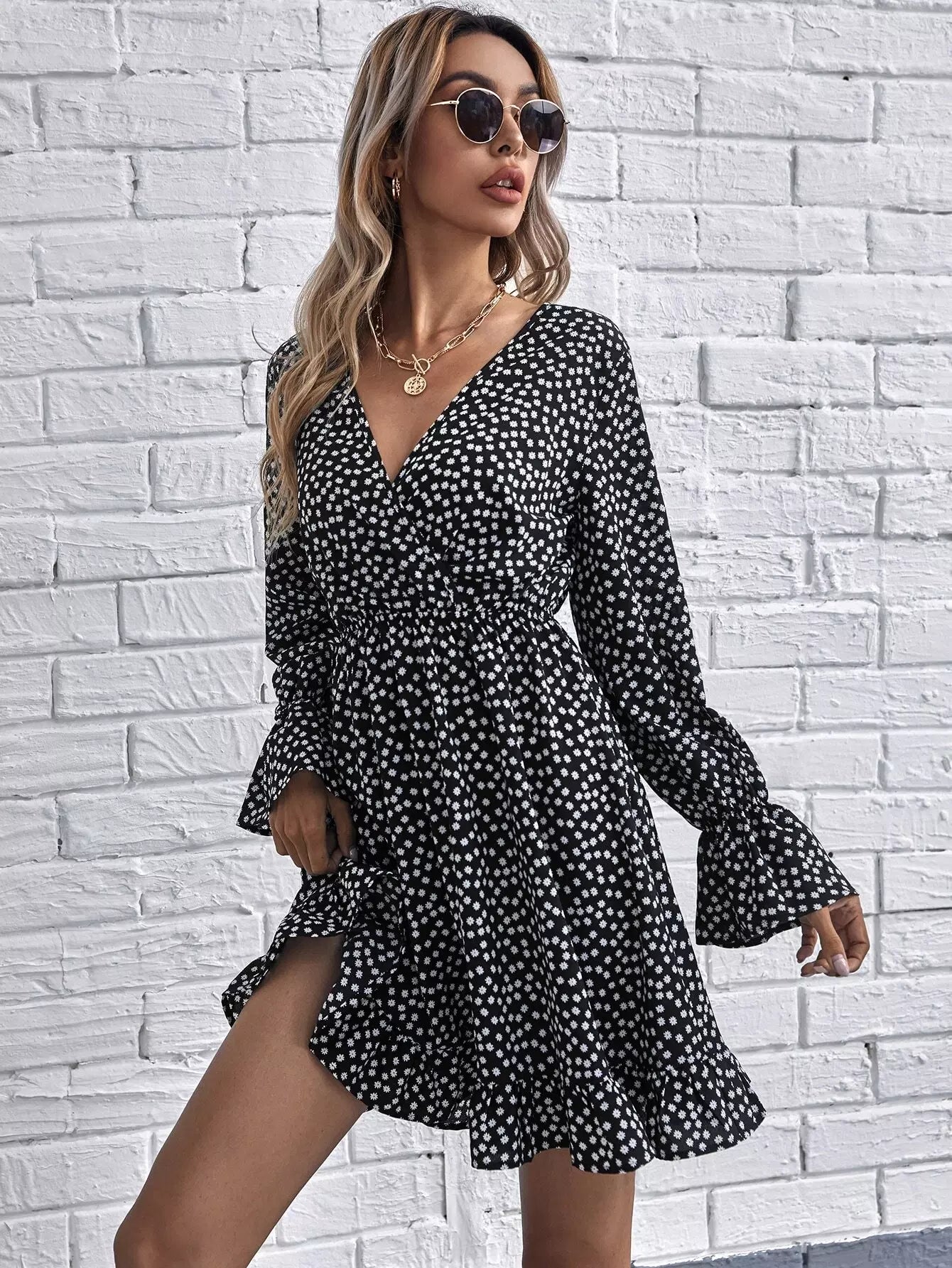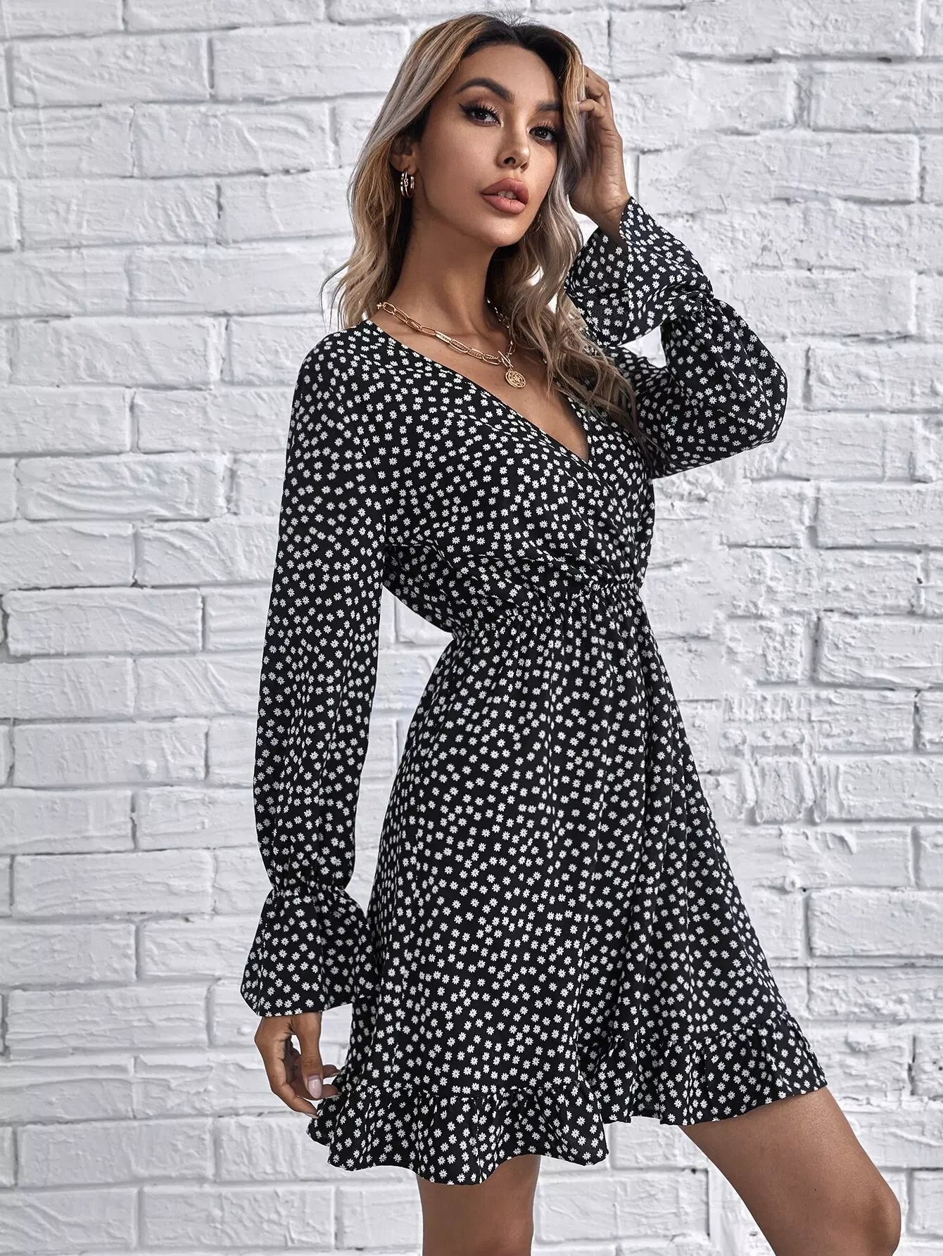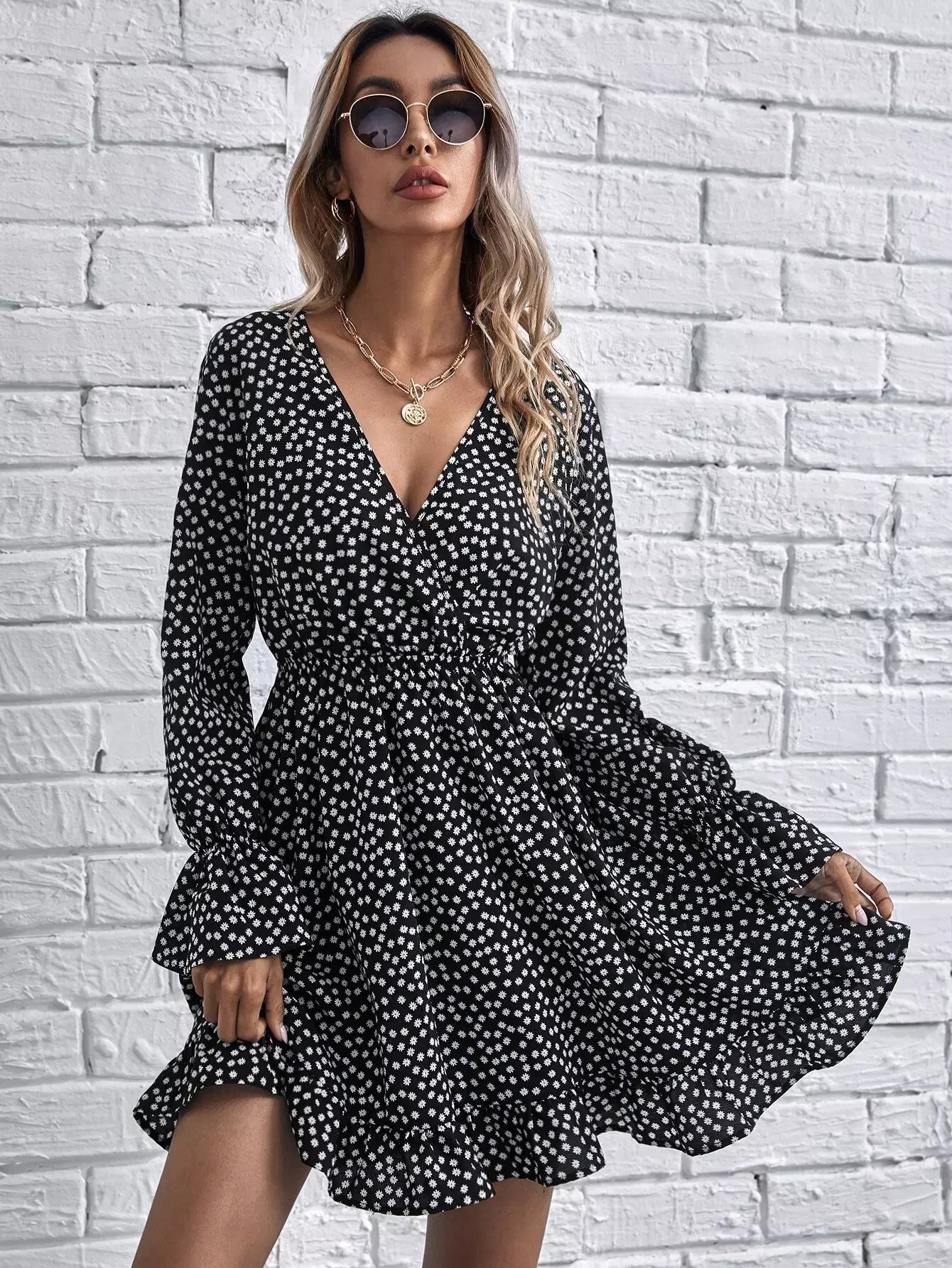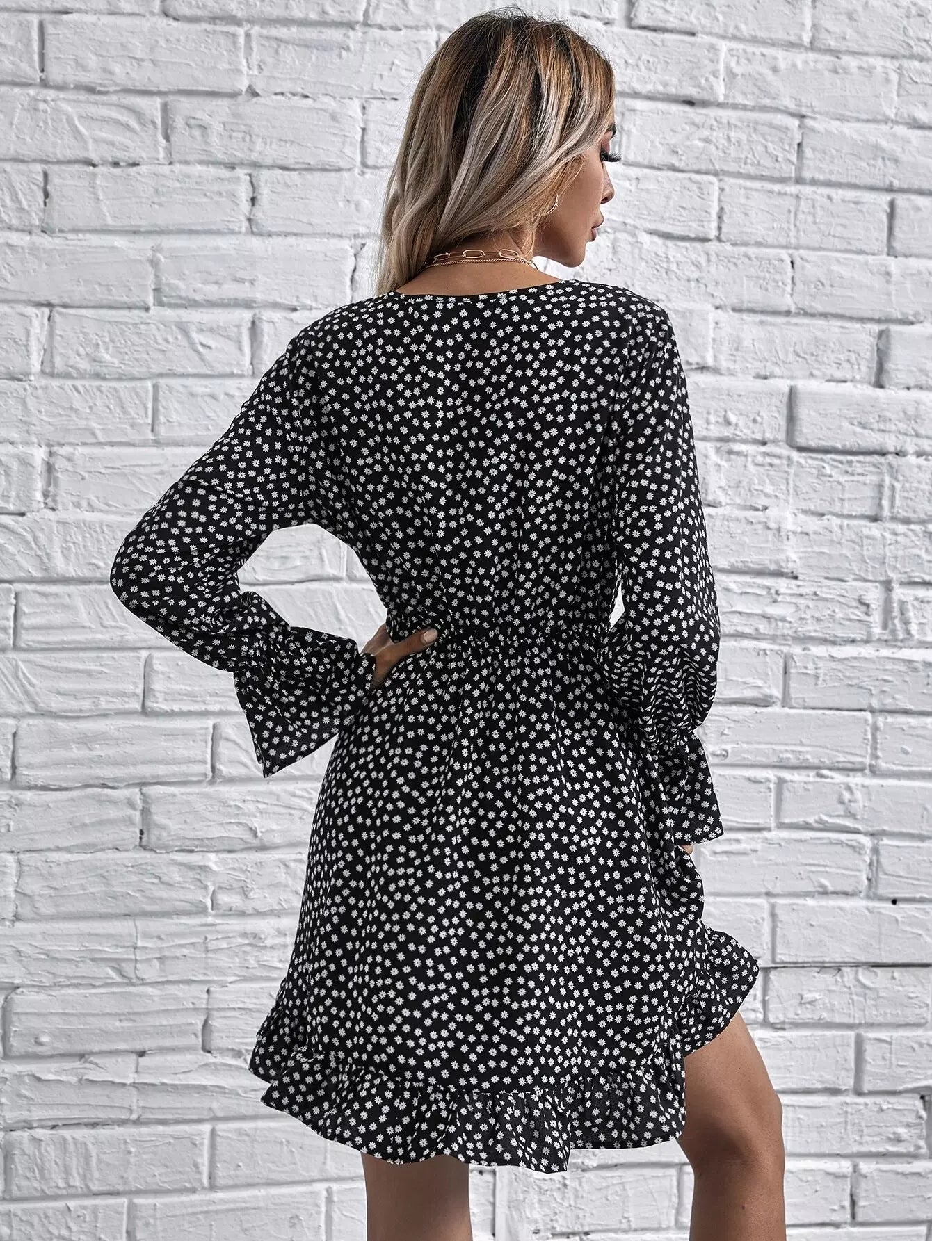 للنساء - فستان على شكل حرف A مزين بالزهور من الأمام
