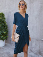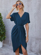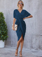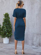 فستان ملفوف برقبة دائرية وأكمام خفاش