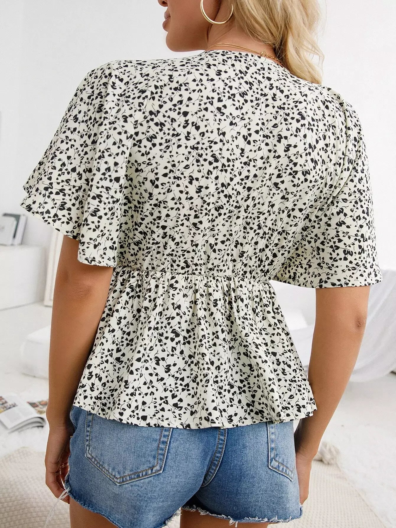 للنساء - بلوزة بيبلوم ذات ياقة واسعة وأكمام دولمان