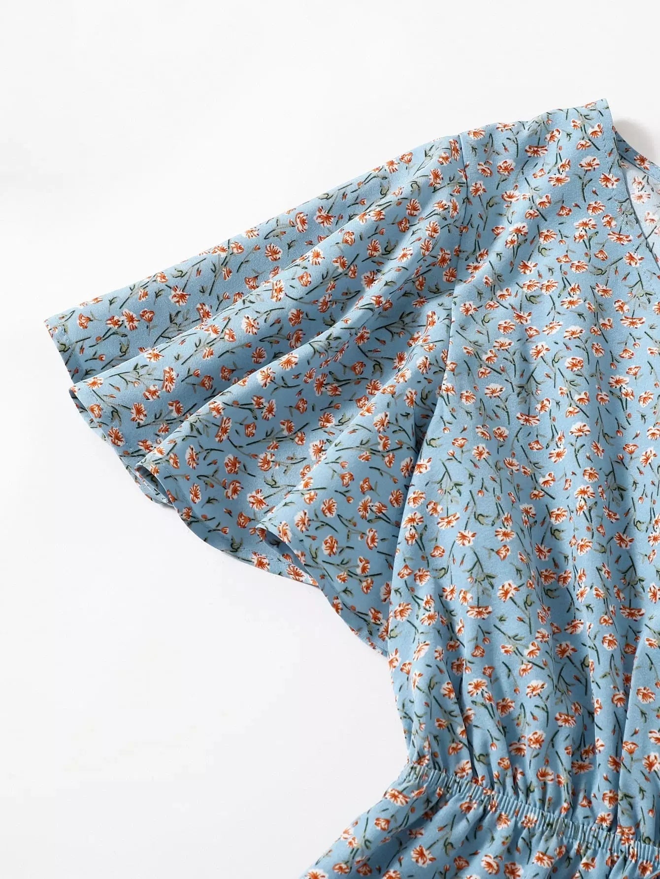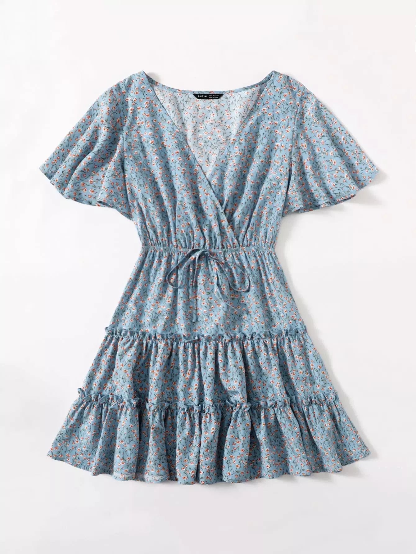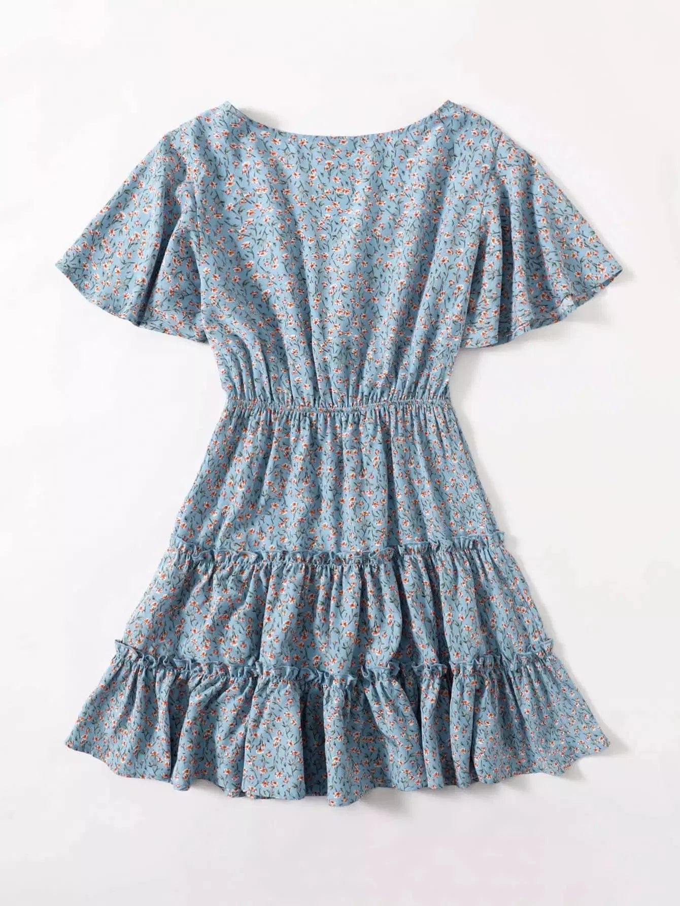 فستان برقبة كشكش بأكمام كشكش برقبة كشكش برقبة كشكش