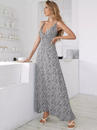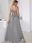 فستان قصير بياقة بربطة عنق برباط من الخلف مزين بالورود