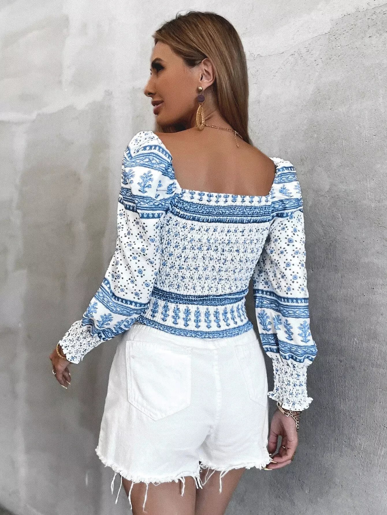 بلوزة ديتسي برقبة عنق سويت هارت برقبة زهرية مزينة بشراشيب