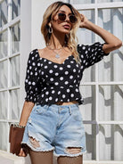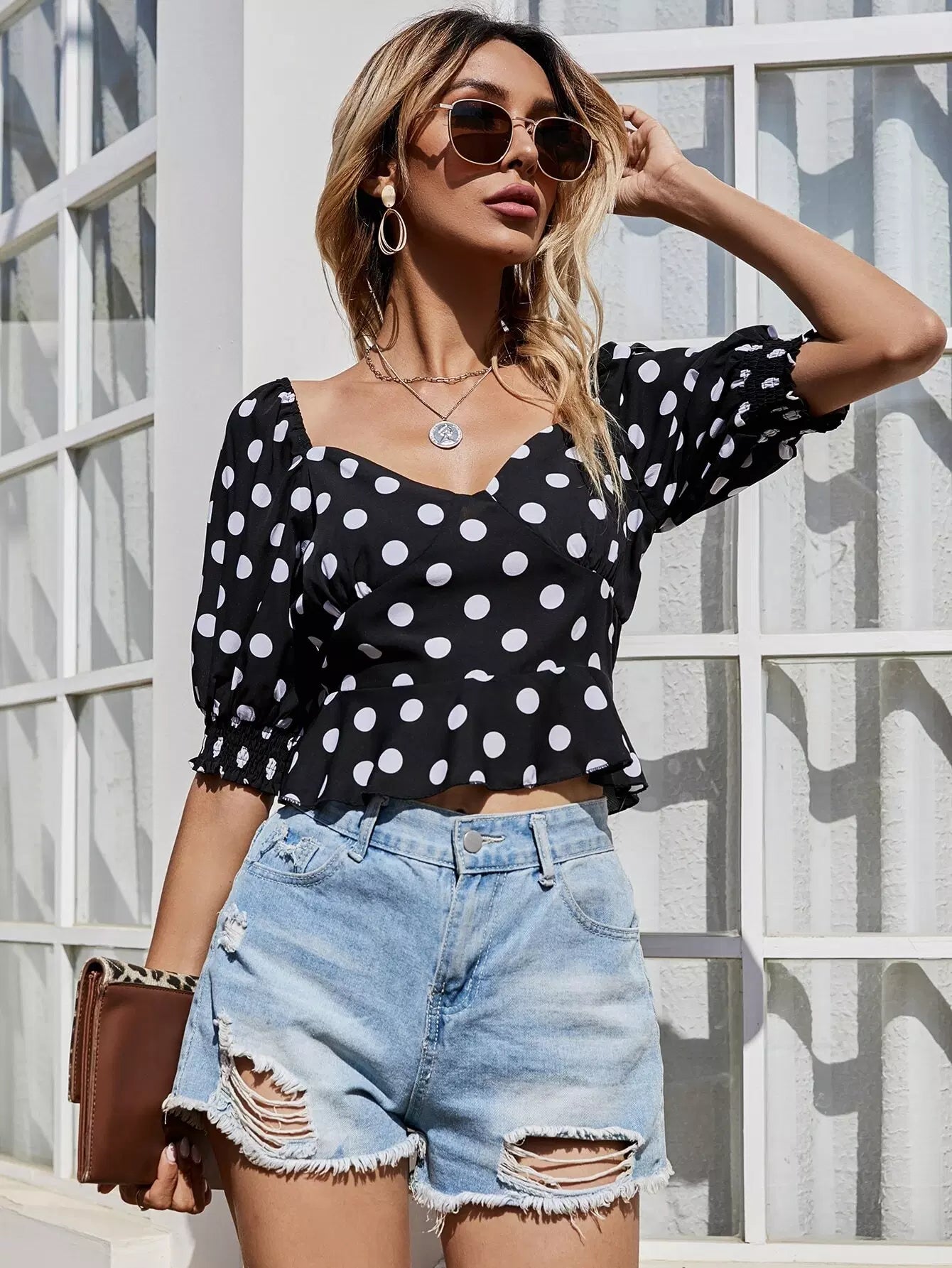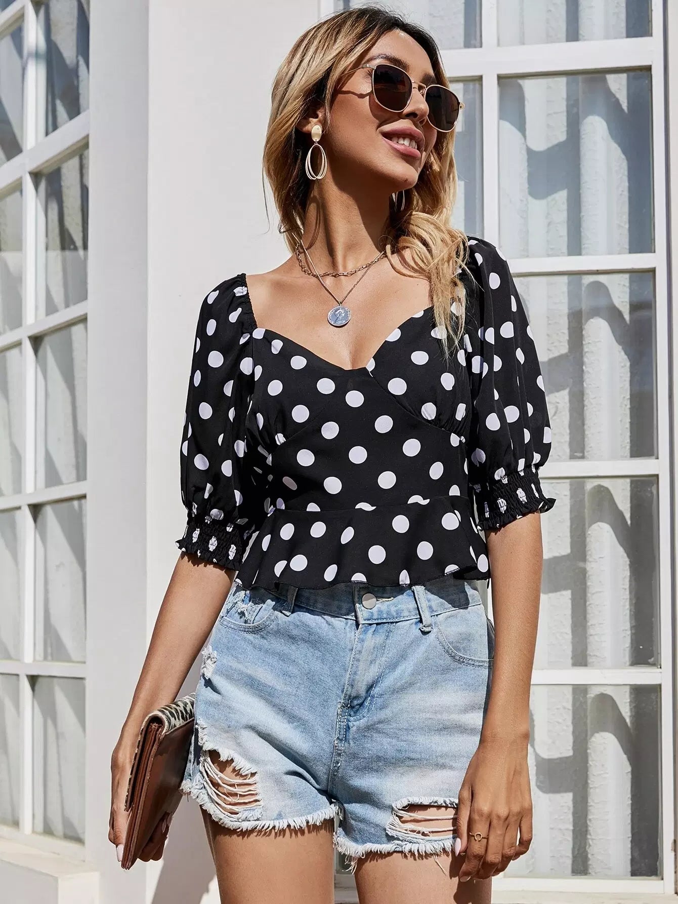 بلوزة برقبة عريضة منقطة برقبة سويت هارت برقبة منقطة