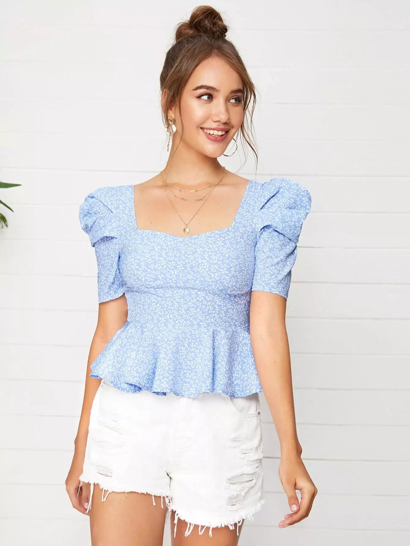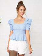 توب بياقة منفوشة بأكمام منفوشة بياقة منفوشة برقبة منفوشة بفتحة منفوشة