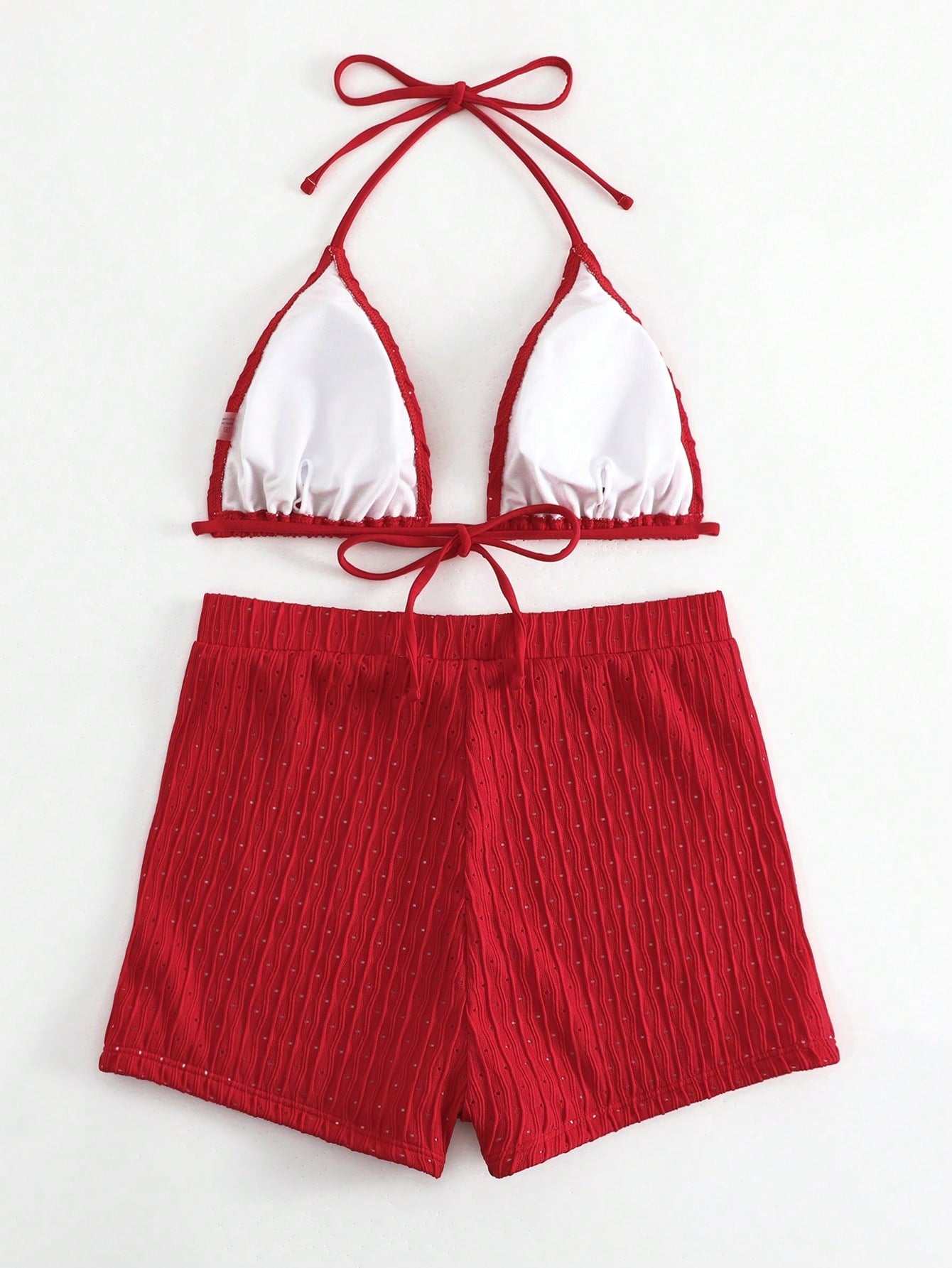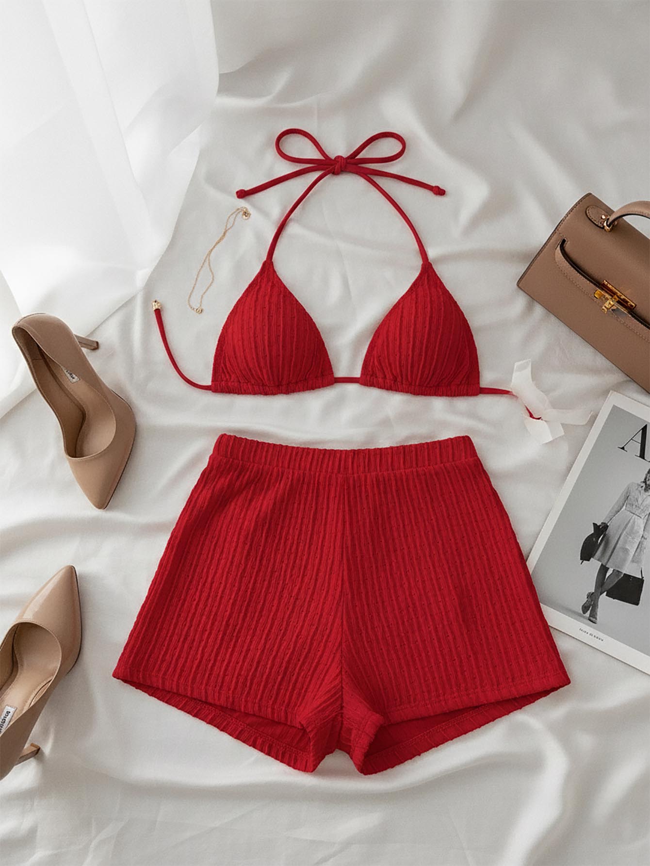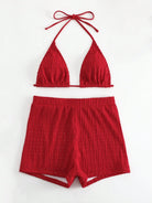 طقم بيكيني صيفي نسائي مثير برباط حول الرقبة، لون موحد، مناسب للشاطئ، من مجموعة Swim 2025