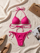 طقم بيكيني صيفي أساسي للشاطئ مزين بكشكشة وربطة جانبية