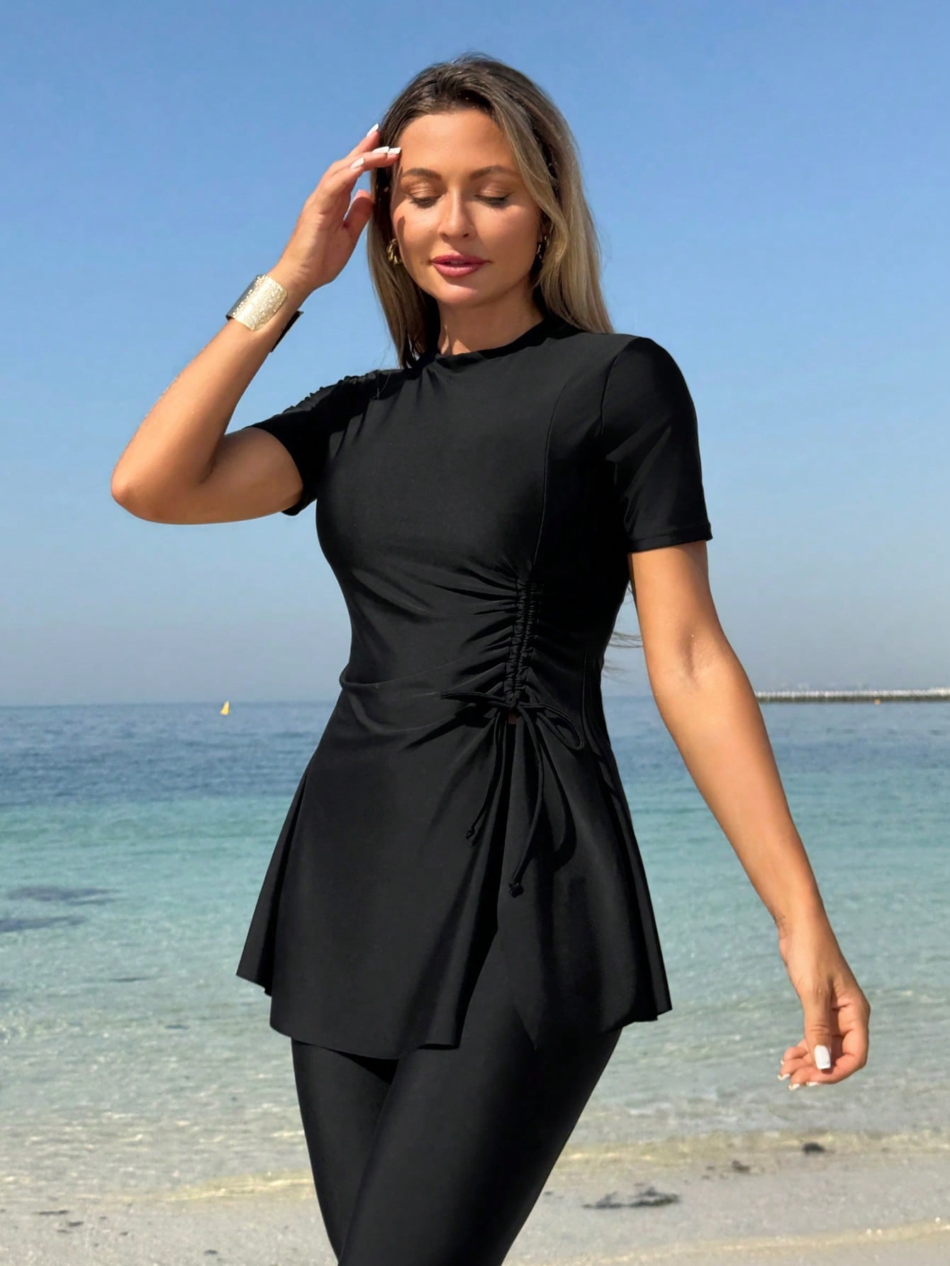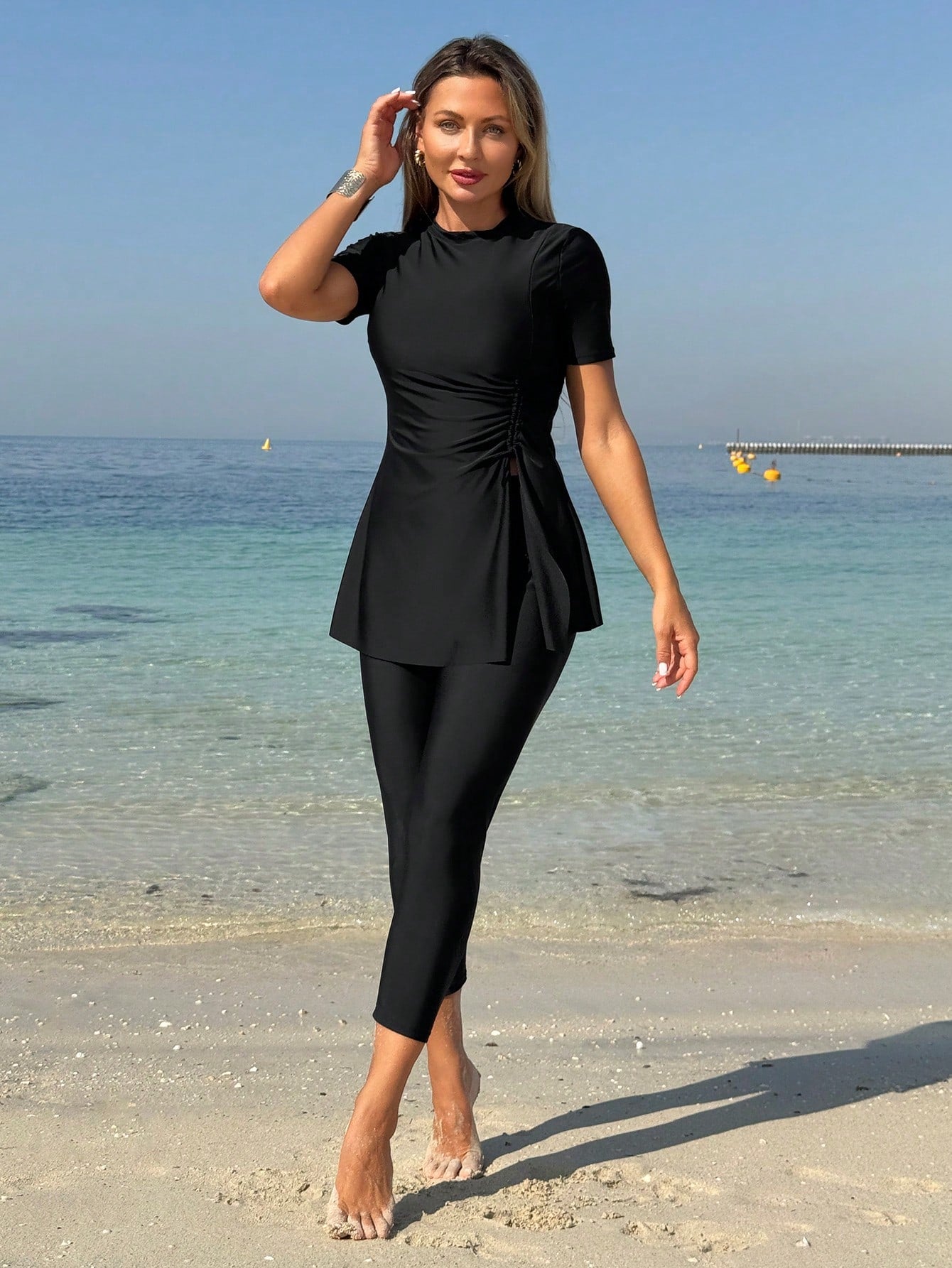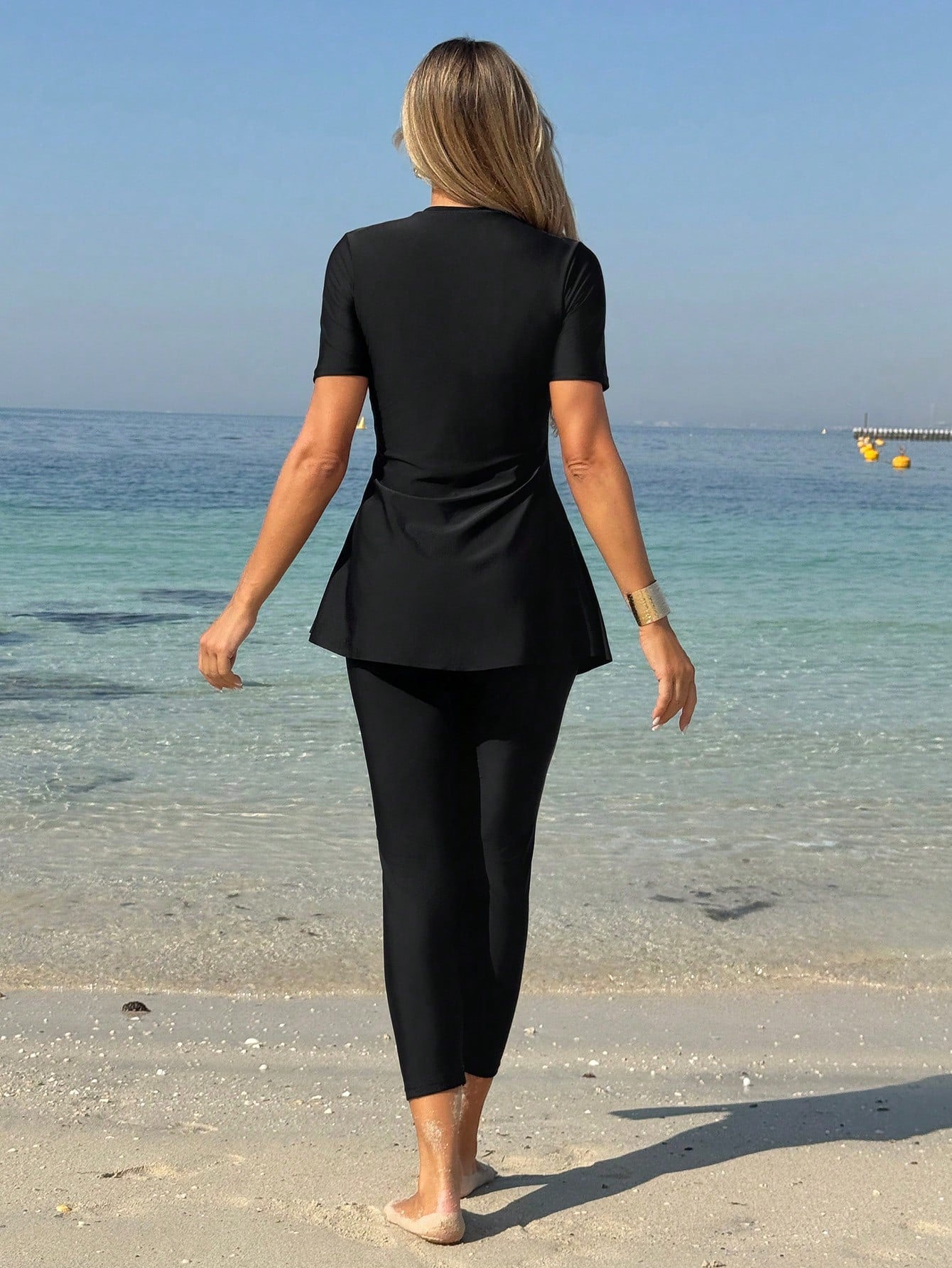 طقم ملابس سباحة بوركيني نسائي من قطعتين بلون موحد من مولفاري