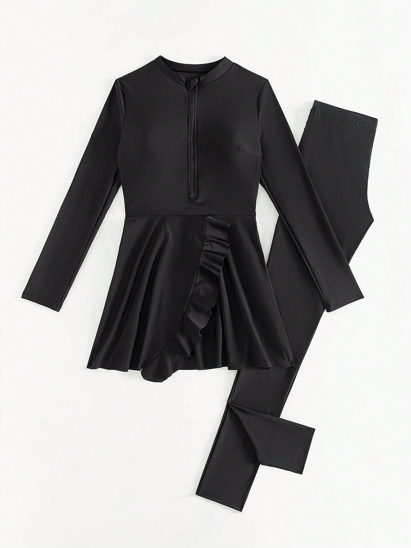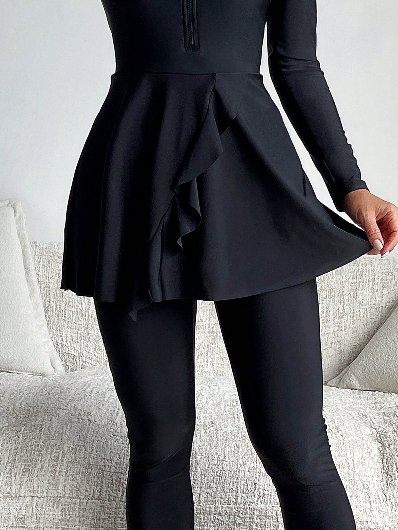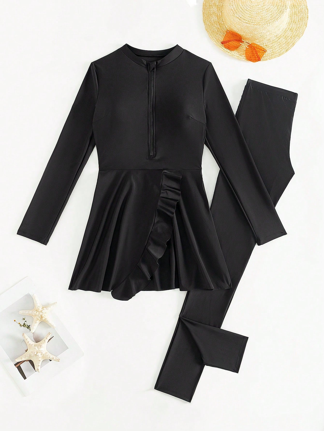 طقم بوركيني صيفي نسائي من مولفاري، بلون موحد وحواف مكشكشة، ملابس عربية