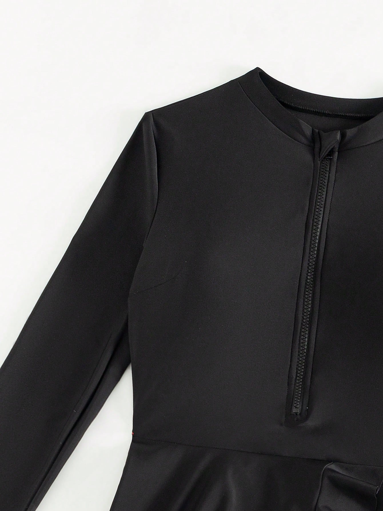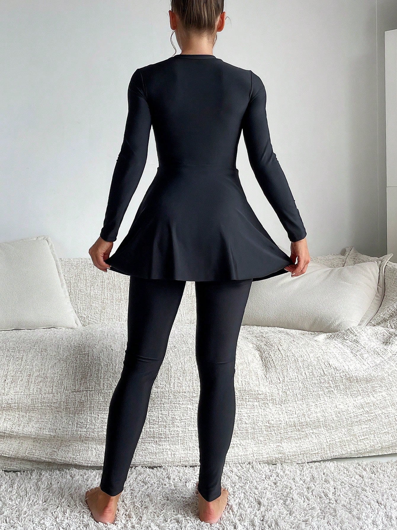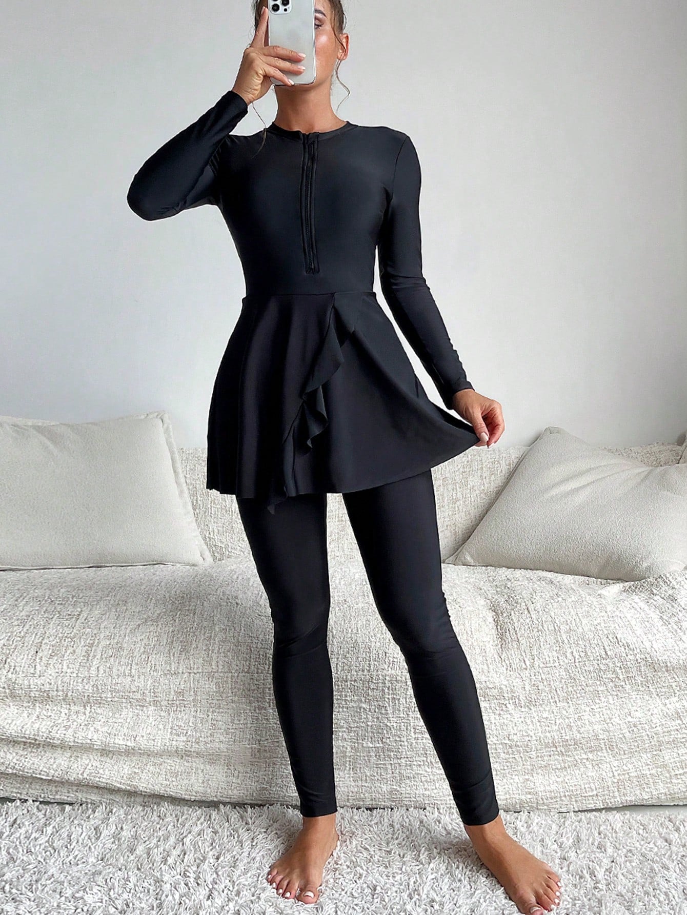 طقم بوركيني صيفي نسائي من مولفاري، بلون موحد وحواف مكشكشة، ملابس عربية