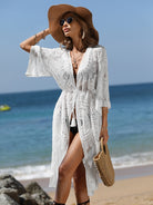 كيمونو شبكي مطرز للسباحة - مناسب للشاطئ في الصيف بدون حزام