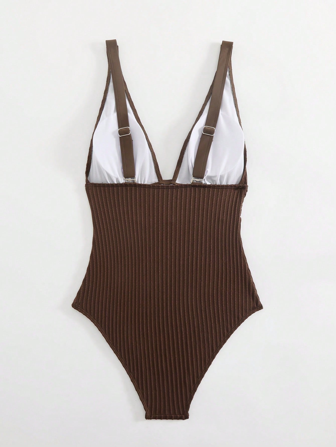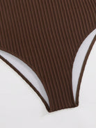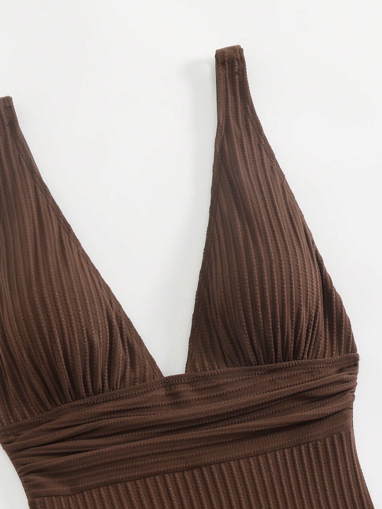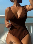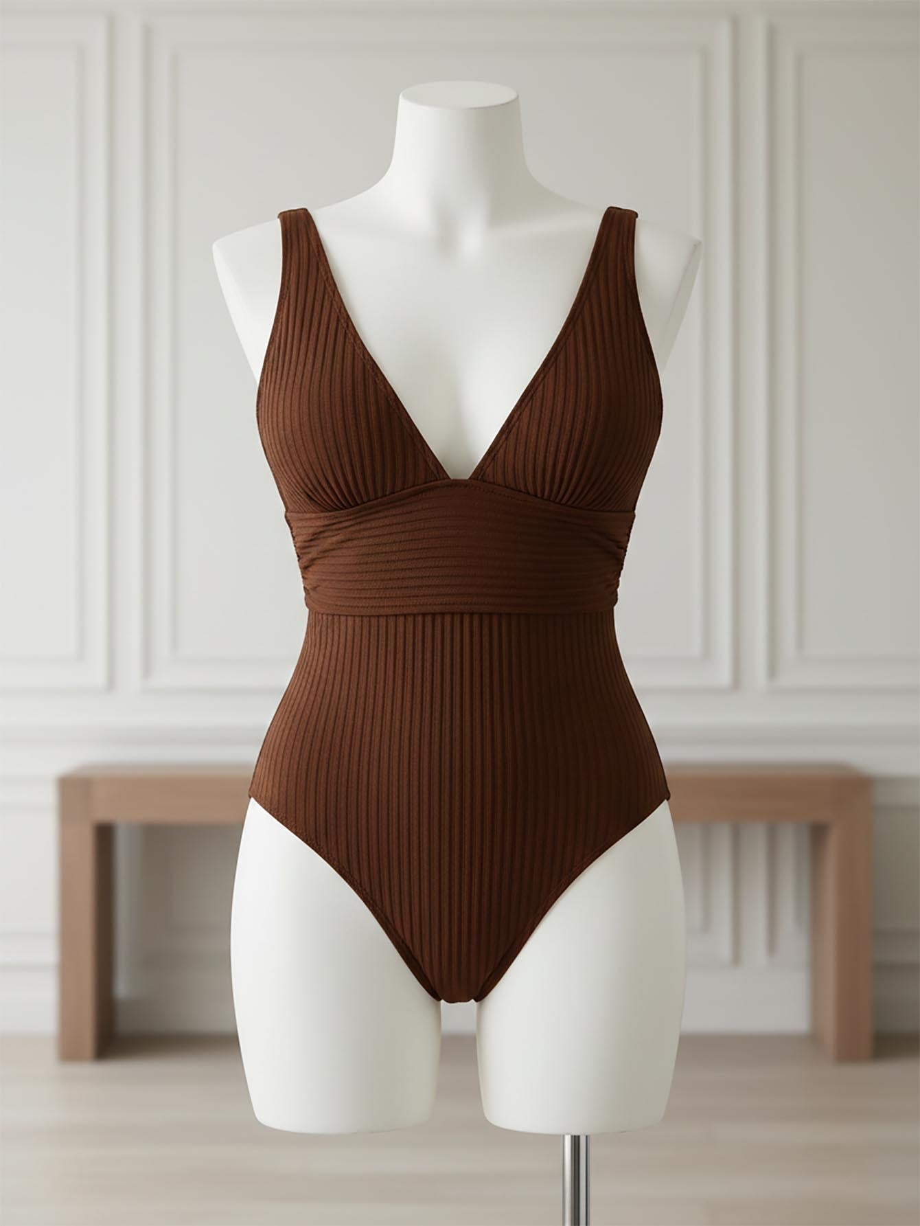 مايوه سباحة قطعة واحدة بلون موحد، بفتحة رقبة على شكل حرف V عميقة، ومضلع بدون خياطة، مثالي لعطلات الصيف على الشاطئ