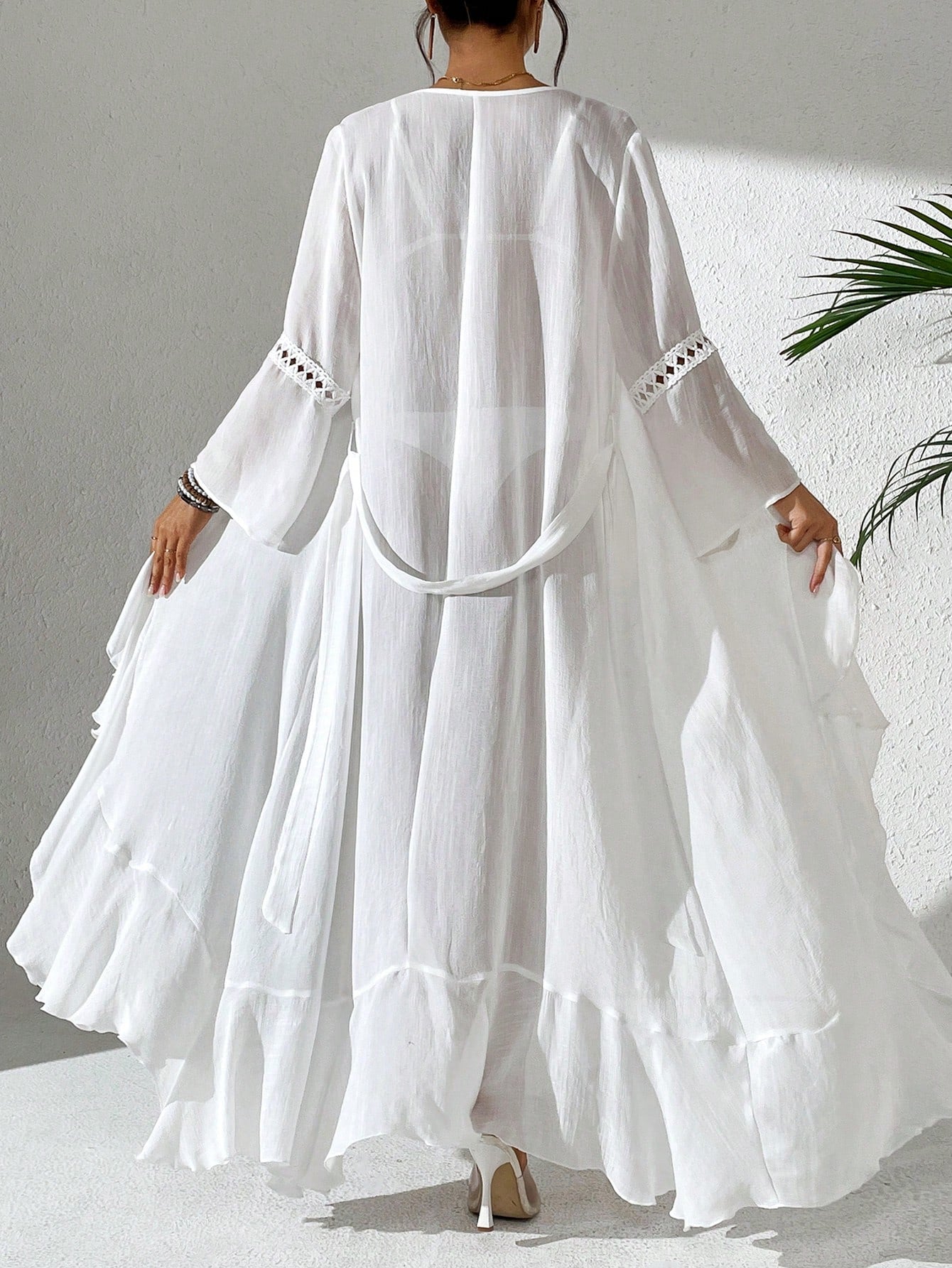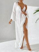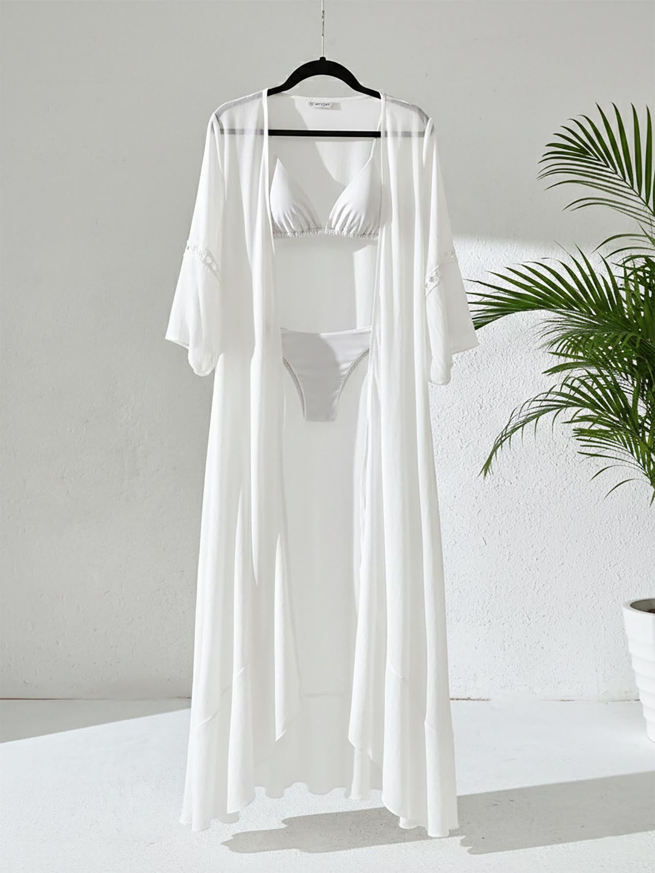 كيمونو أبيض كاجوال مفتوح من الأمام بأكمام مزينة بنقوش زهرية من Swim