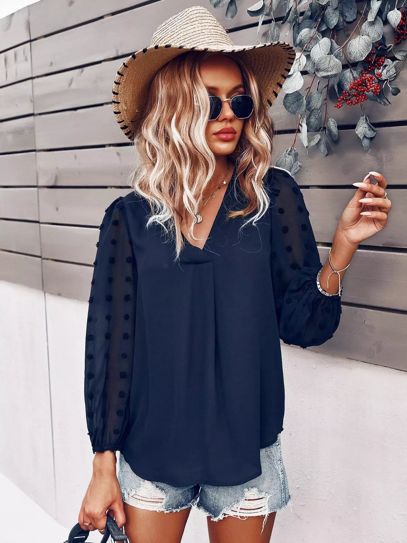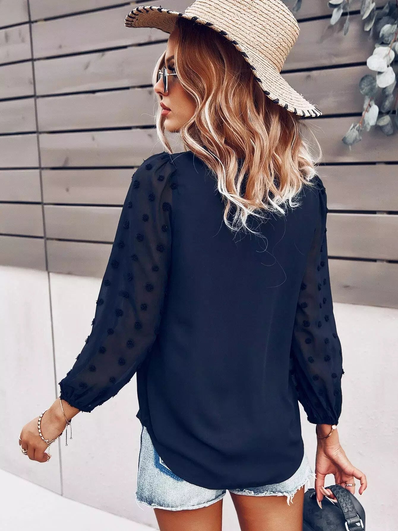 النساء - بلوزة ذات حافة منحنية بنقاط سويسرية