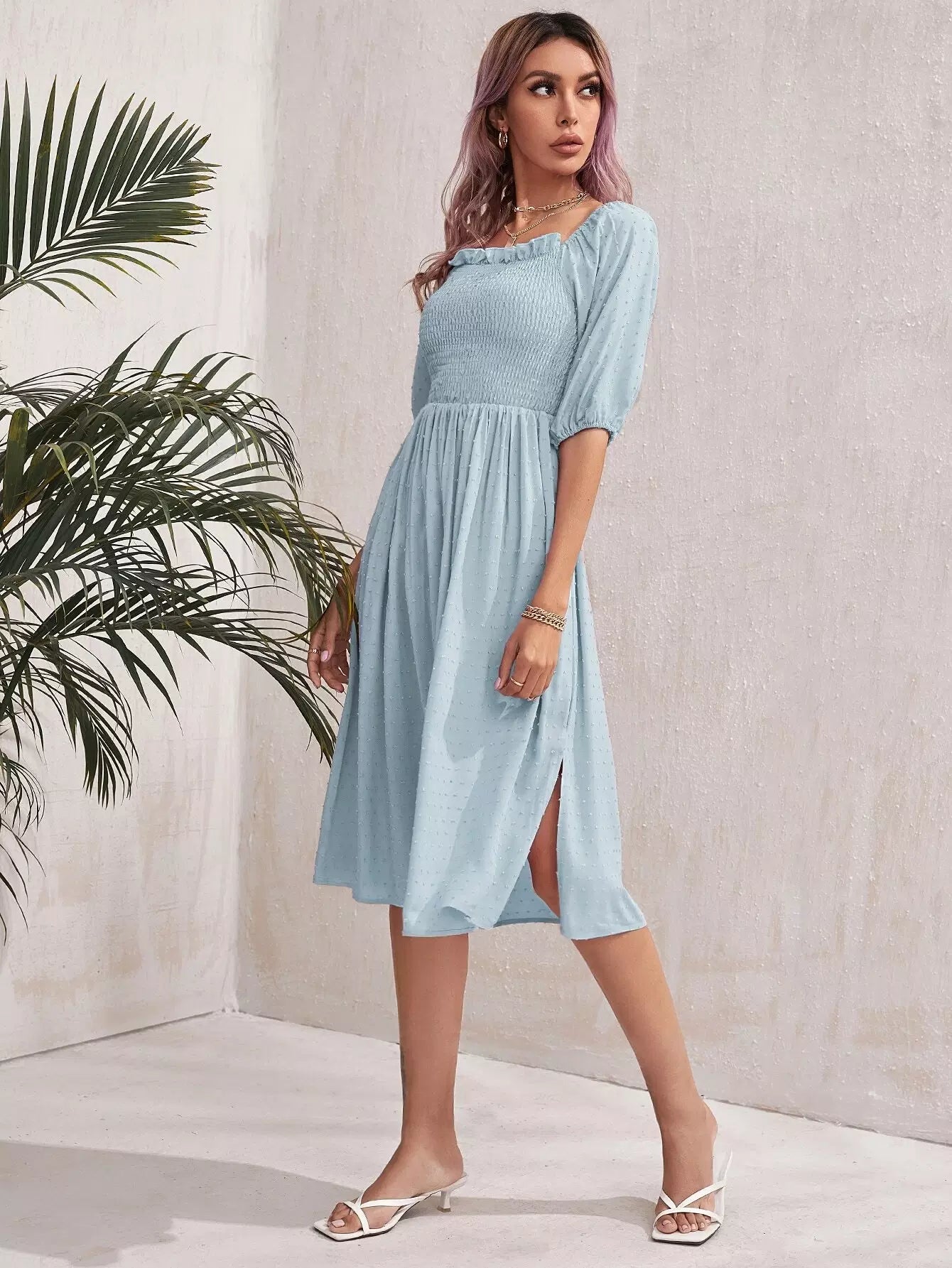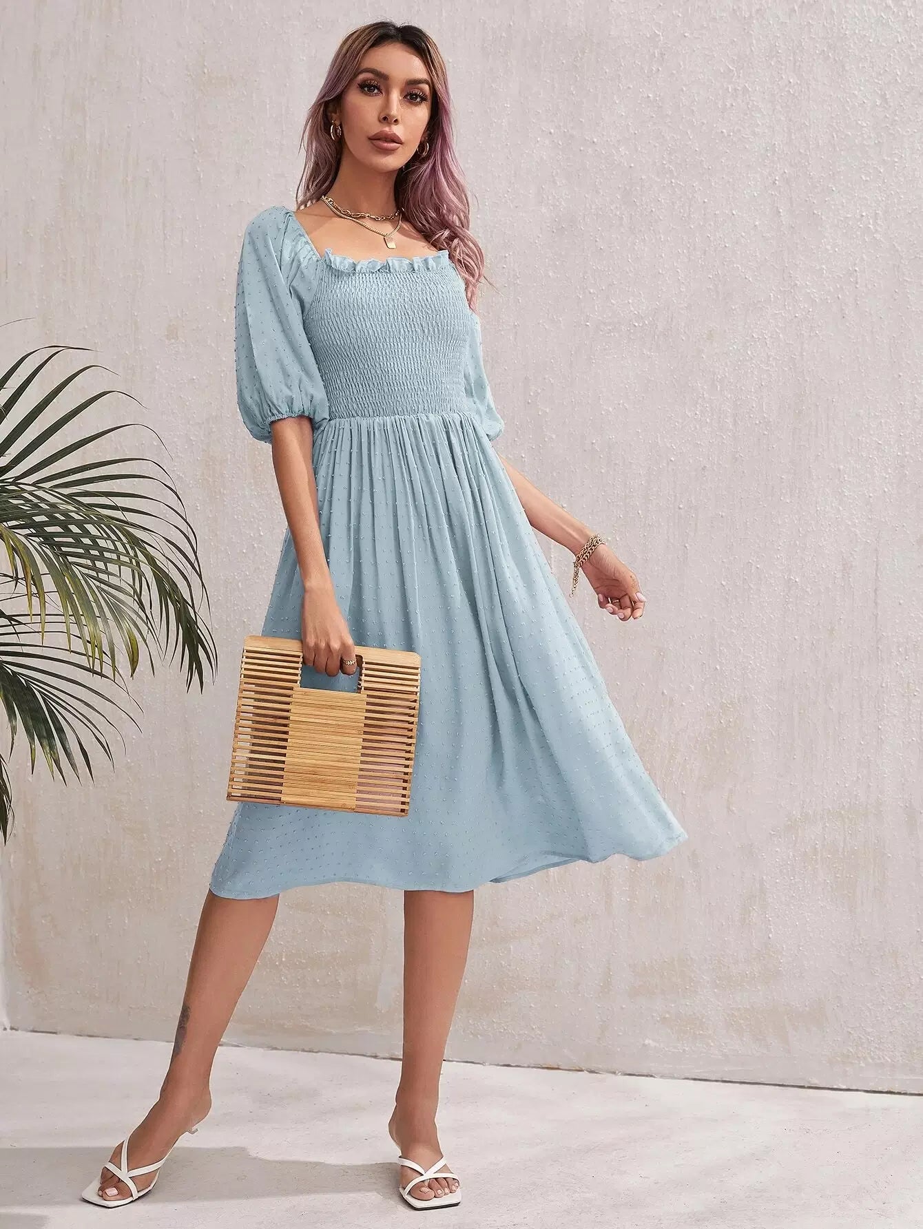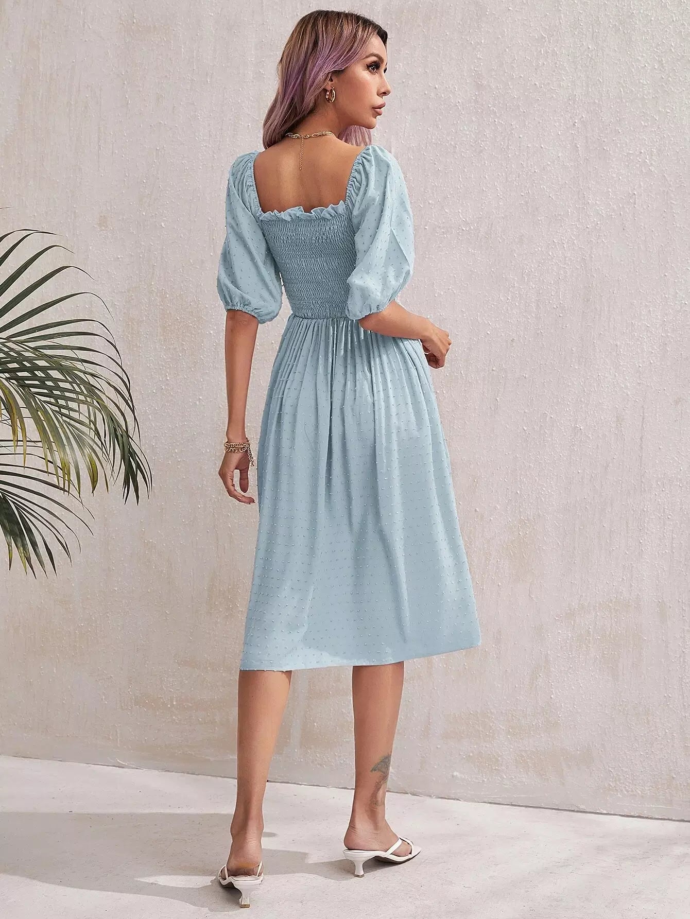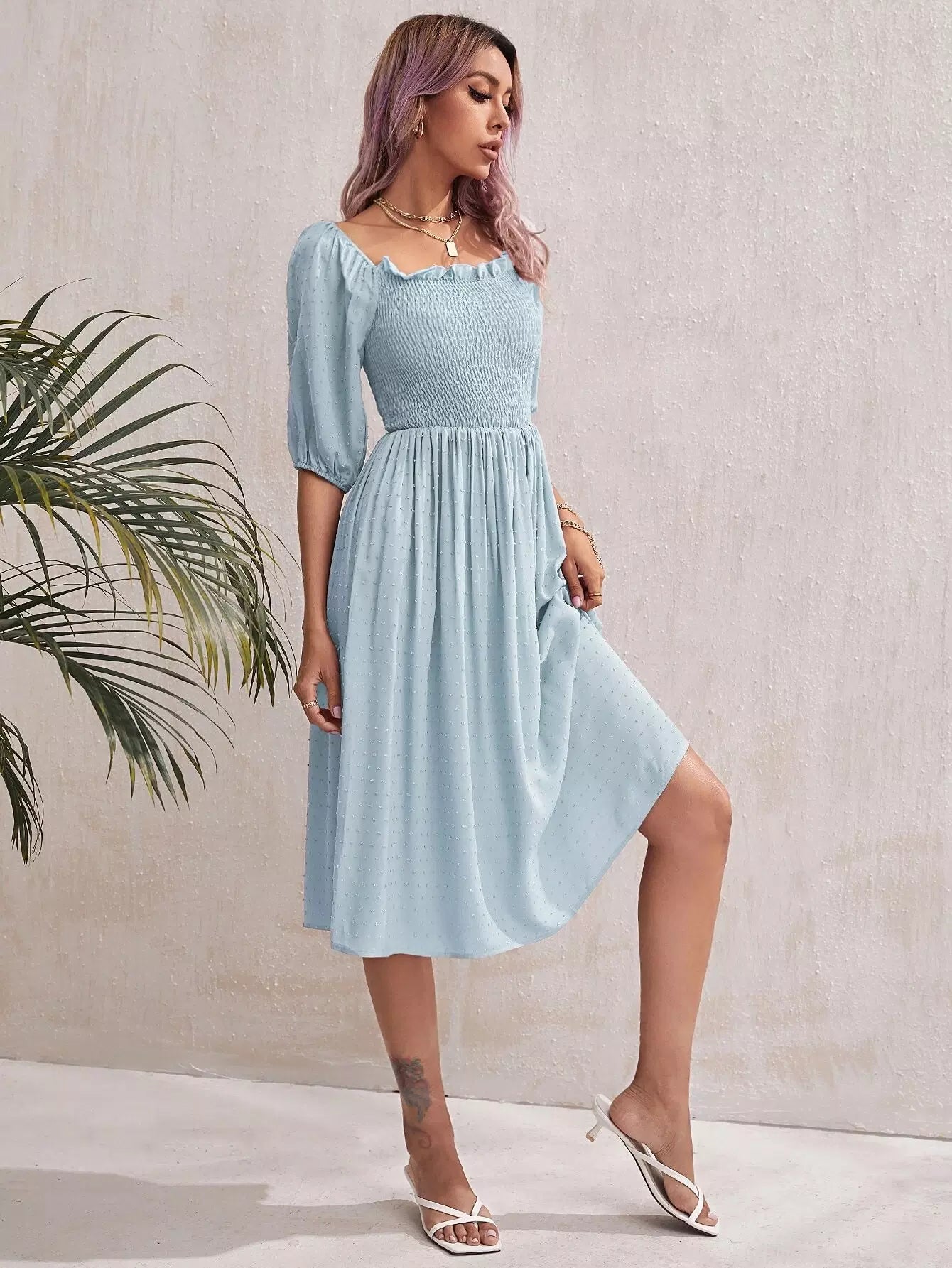 فستان سويس دوت دوت دوت كشكش بشريط على شكل حرف A