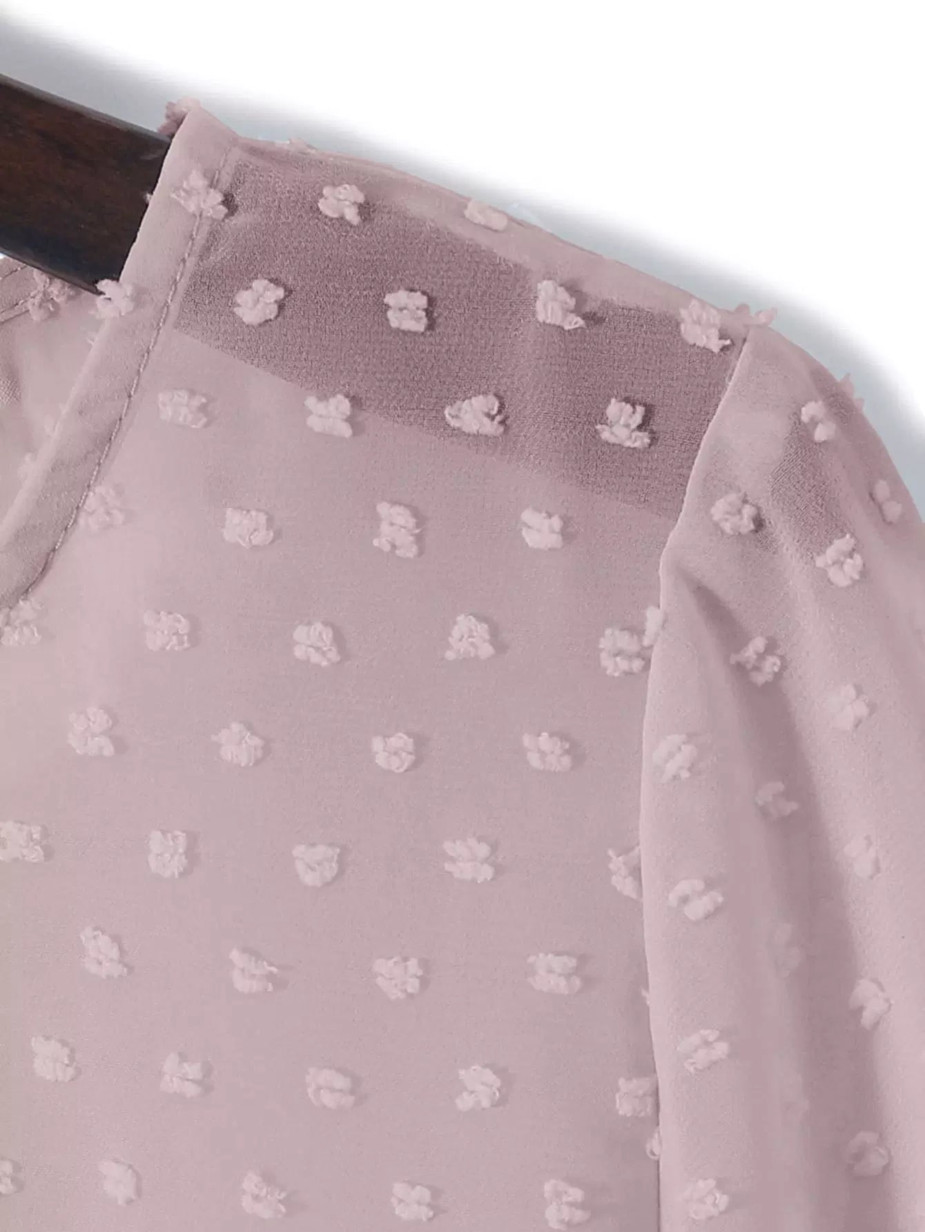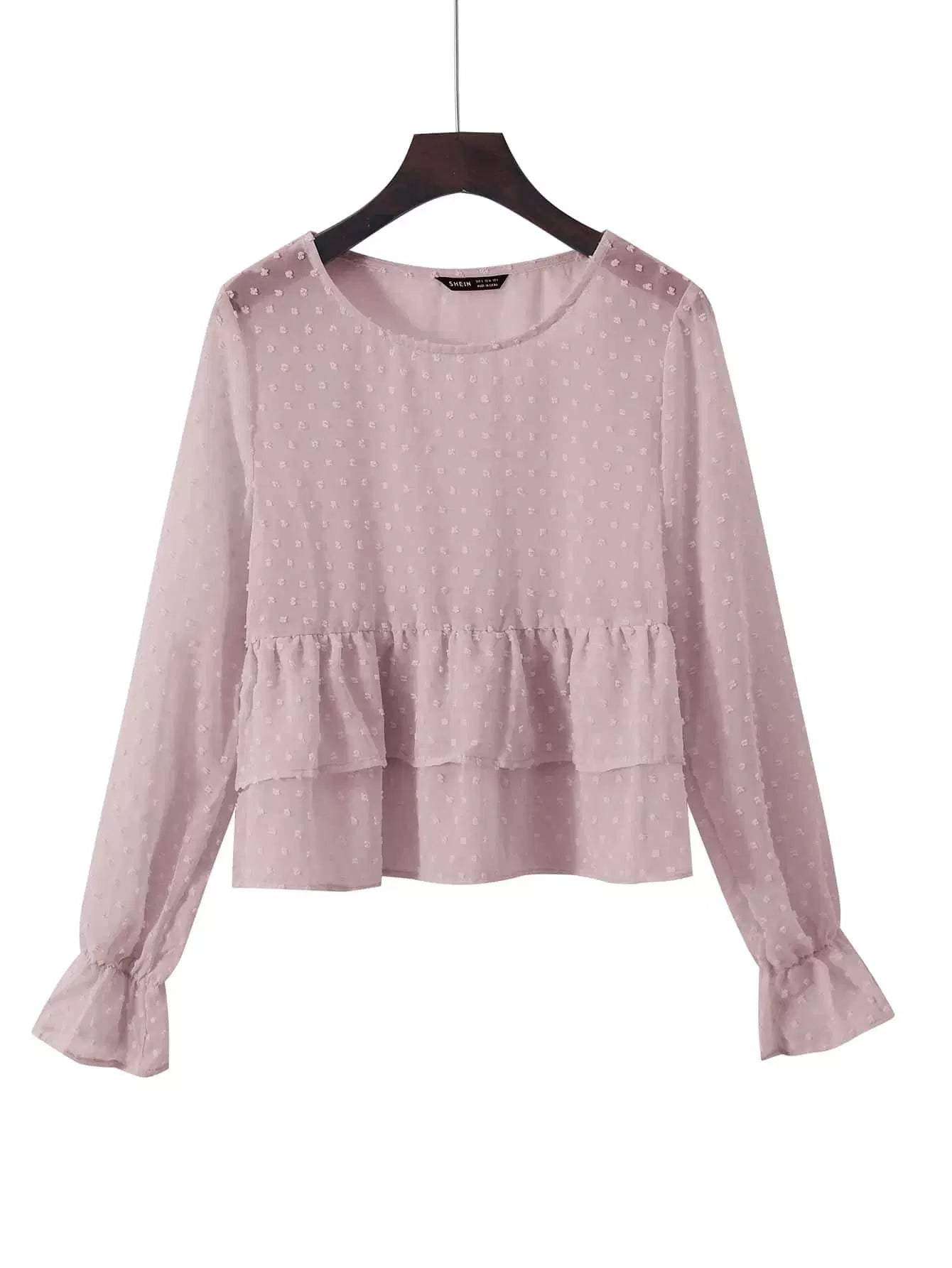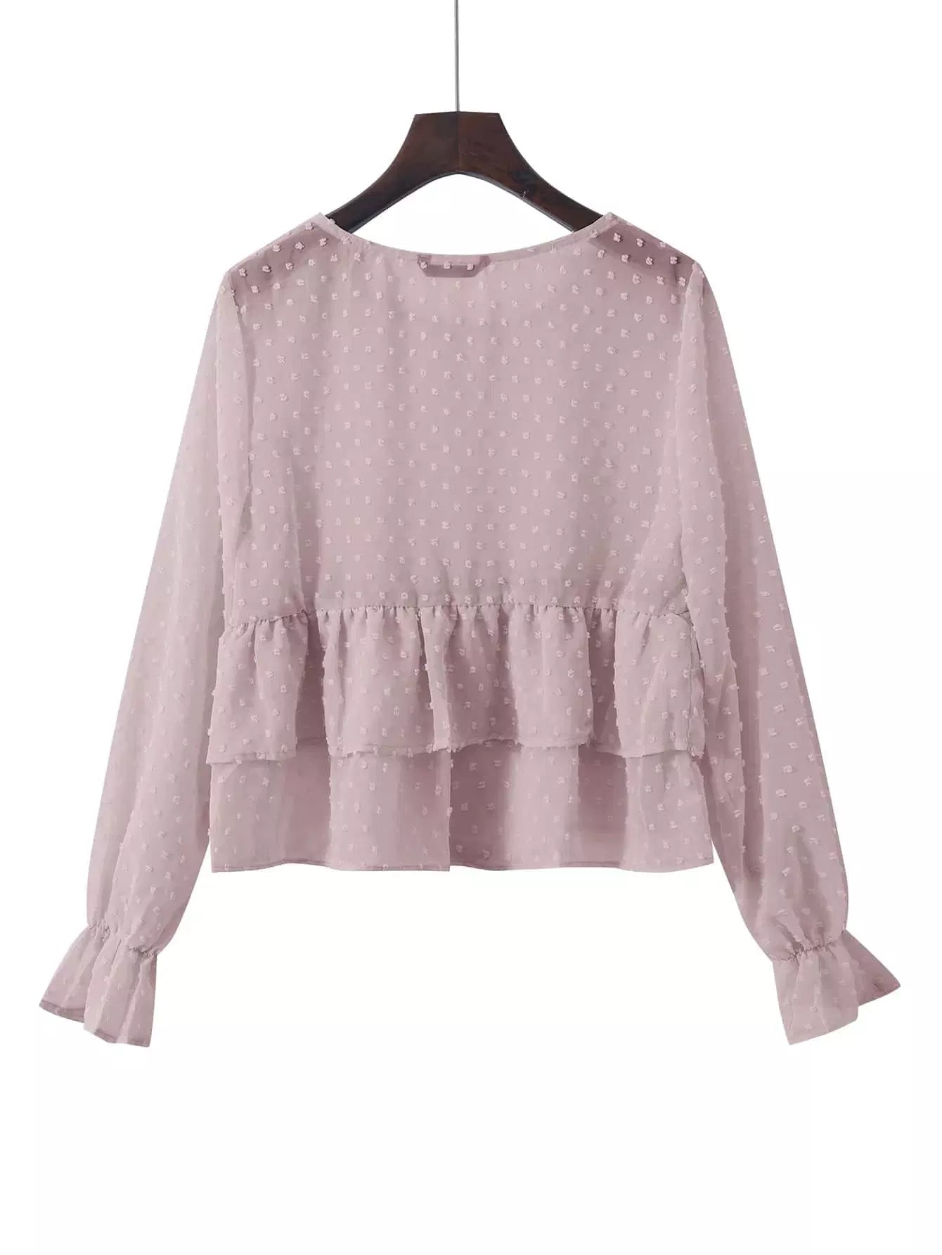 بلوزة شيفون منقّطة سويسرية شفافة ذات طبقات من الكشكش