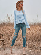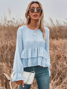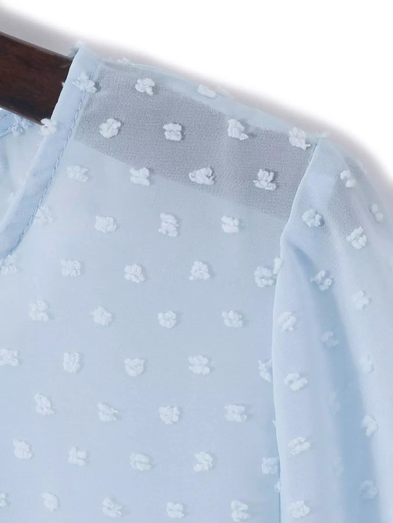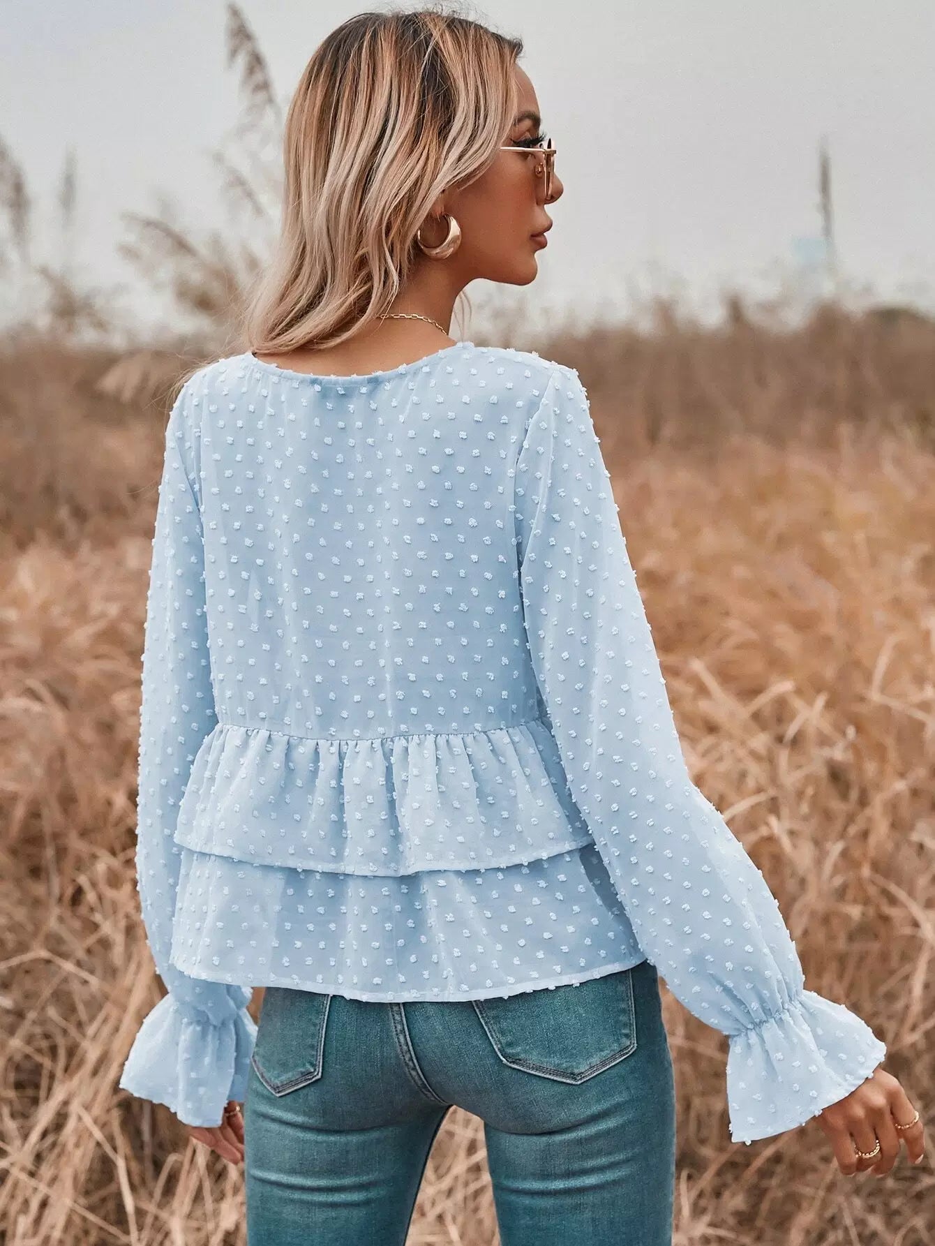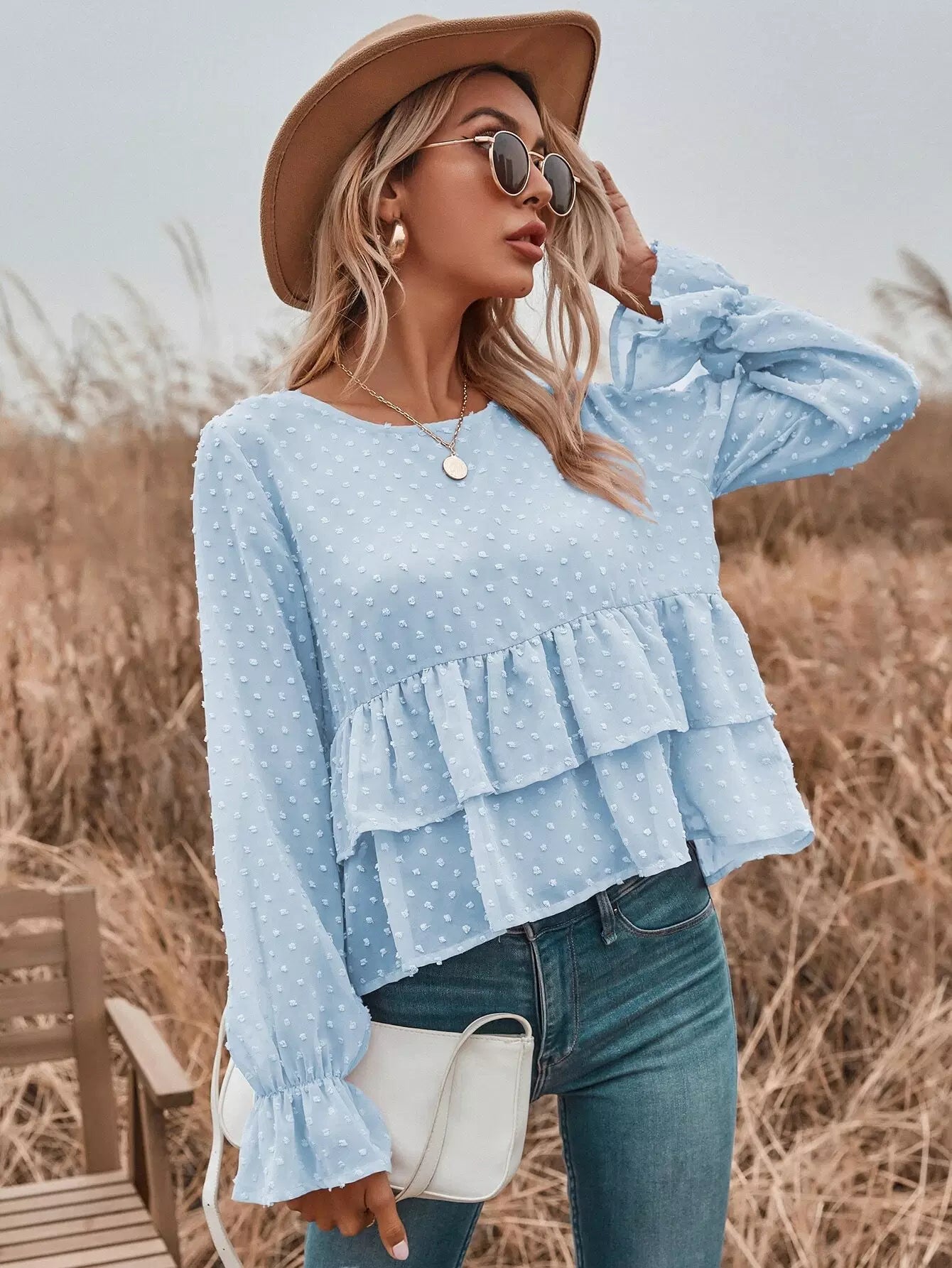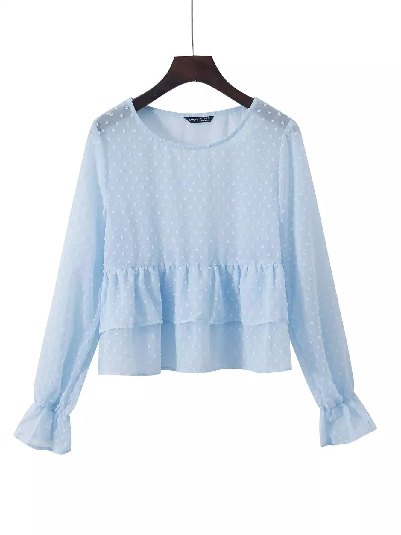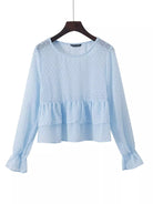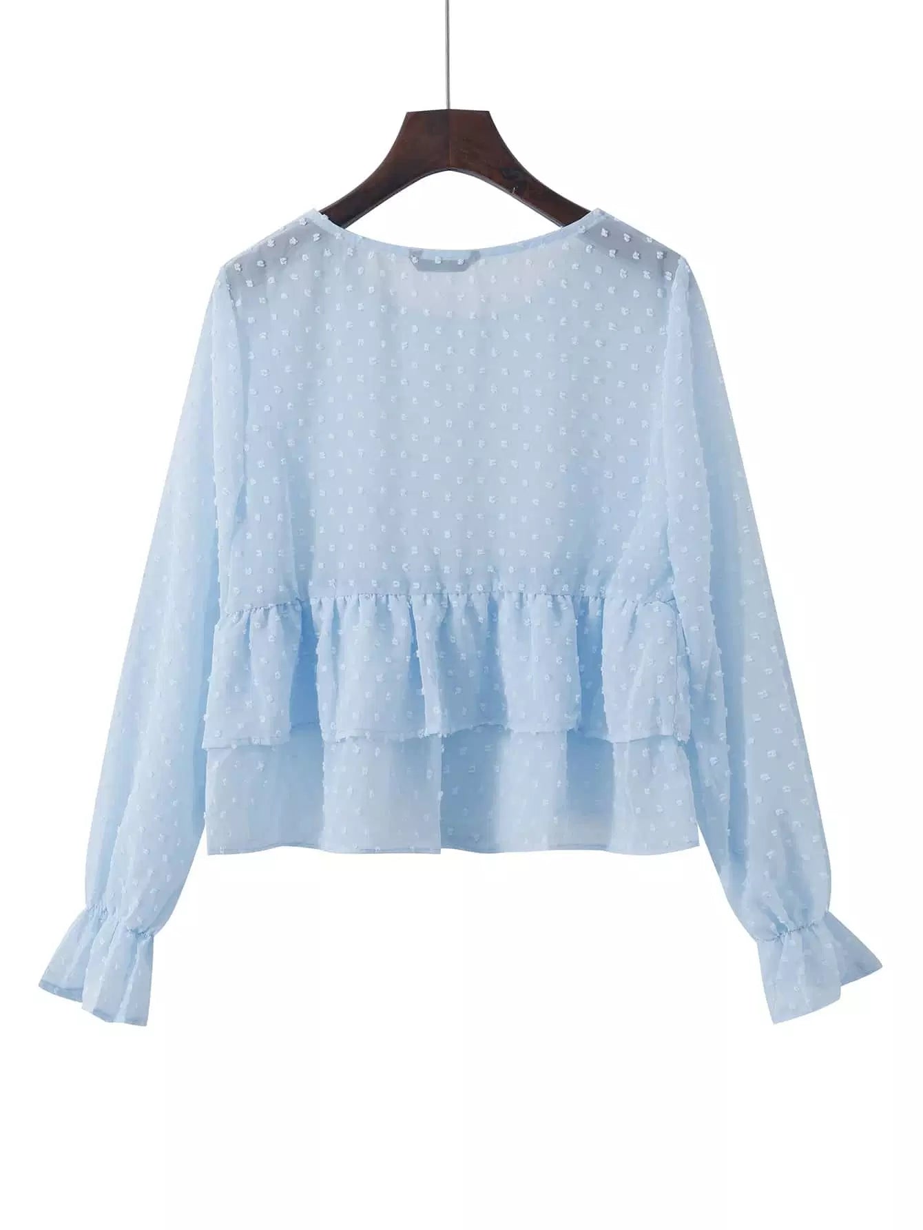 بلوزة شيفون منقّطة سويسرية شفافة ذات طبقات من الكشكش
