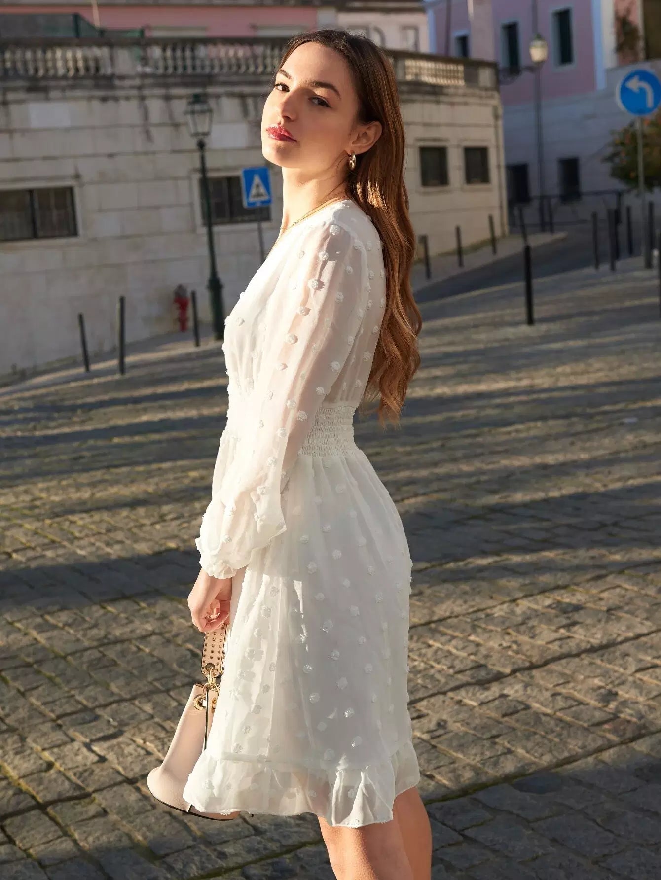 فستان سويس دوت دوت دوت دوت دوت شيرد بحافة كشكش