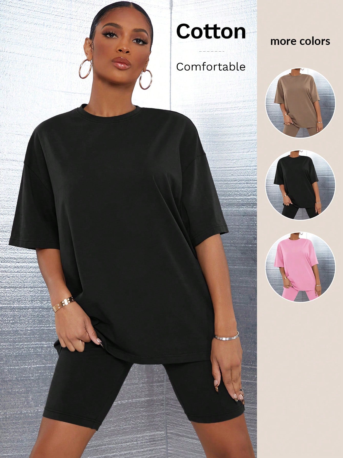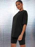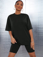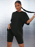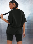 طقم SXY مكون من بلوزة سادة بكتف منسدل وشورت رياضي