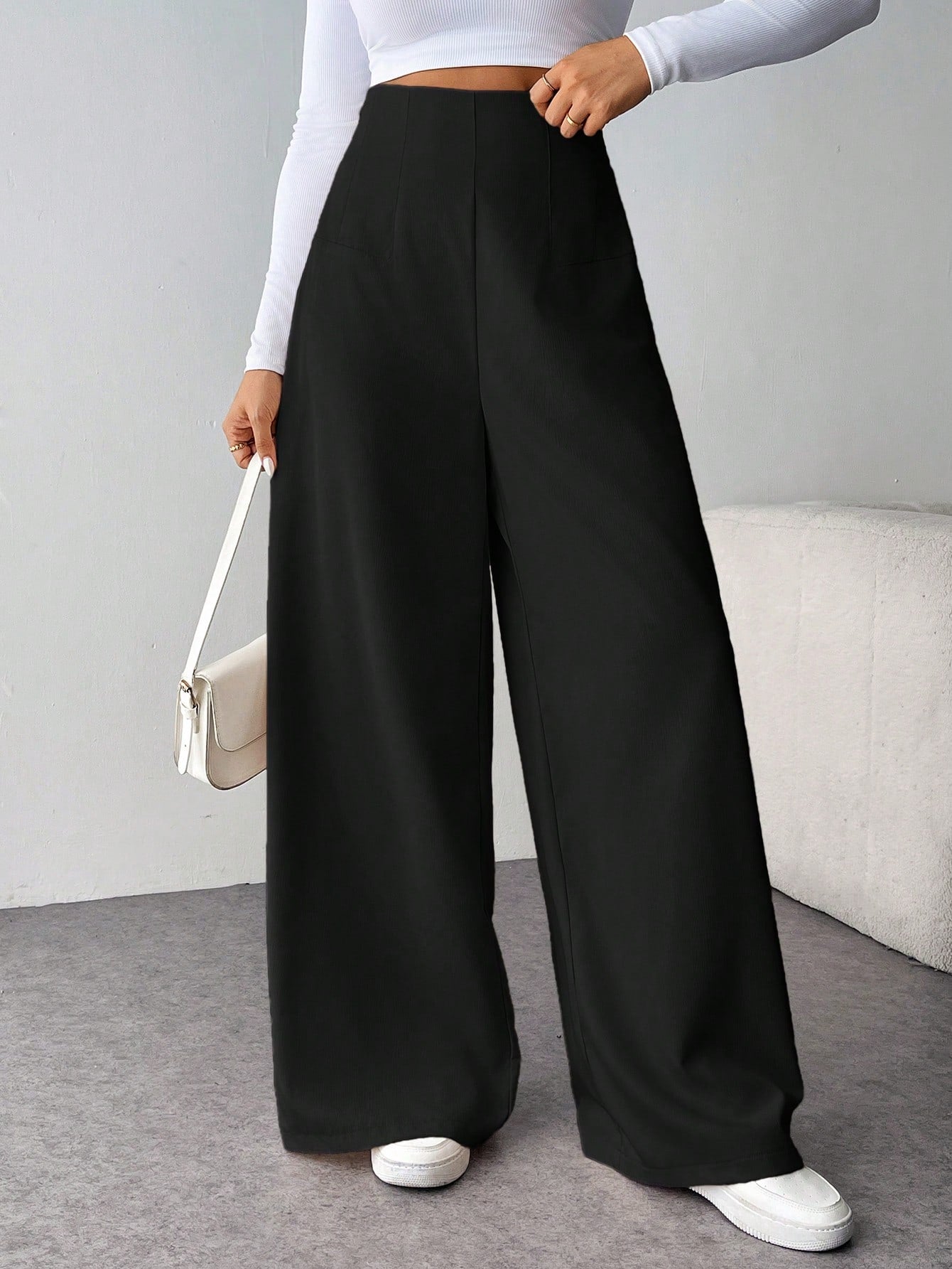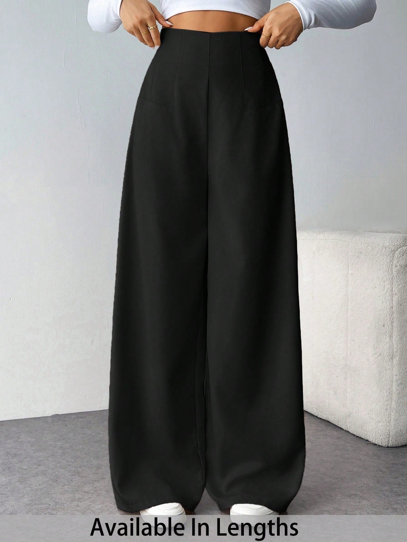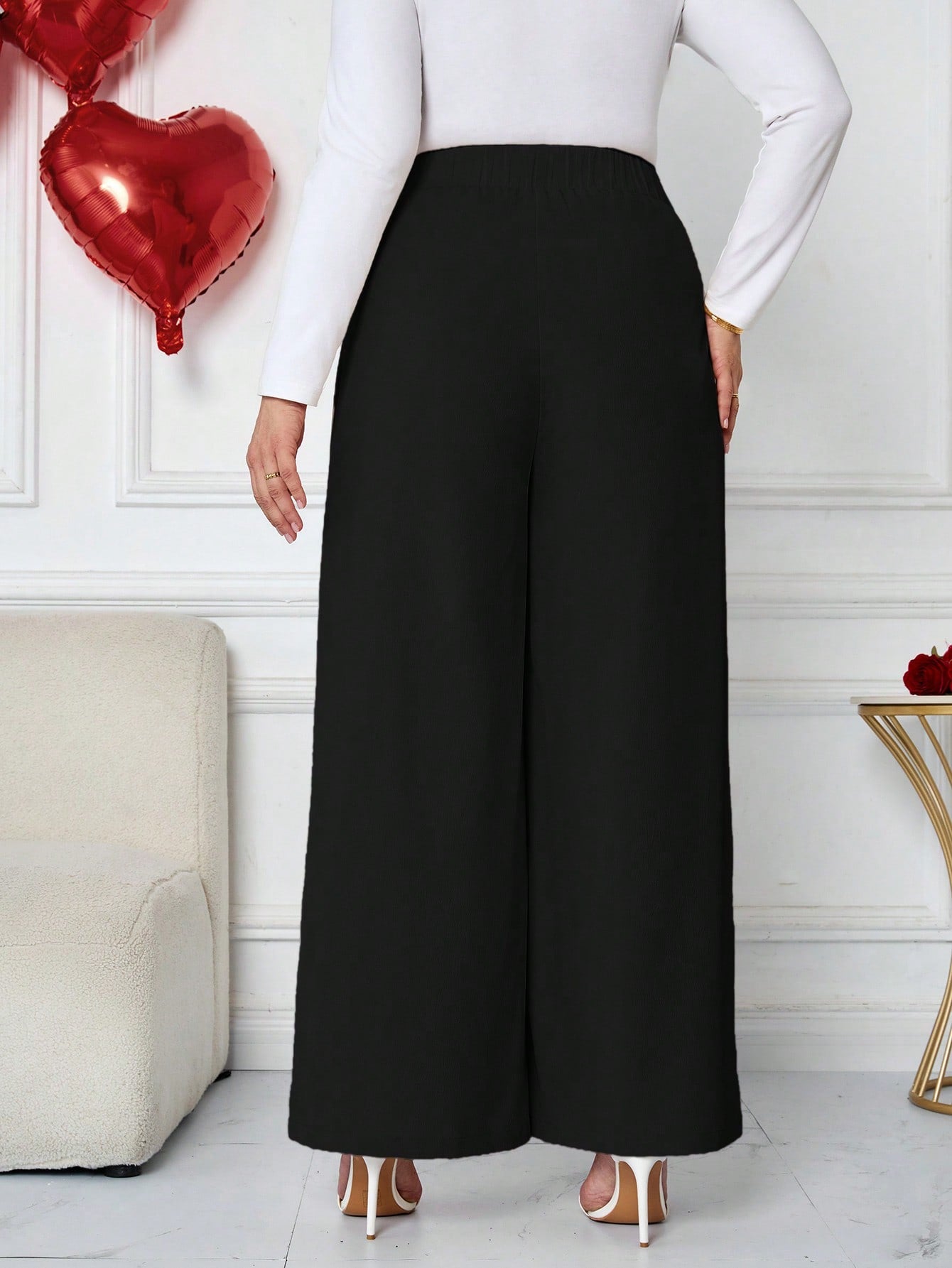 بنطلون طويل واسع الساقين بخصر عالٍ للنساء ذوات المقاسات الكبيرة من Tall CURVE، بنطلون كاجوال طويل بنقشة مميزة، مناسب للارتداء اليومي، بمقاسات كبيرة.