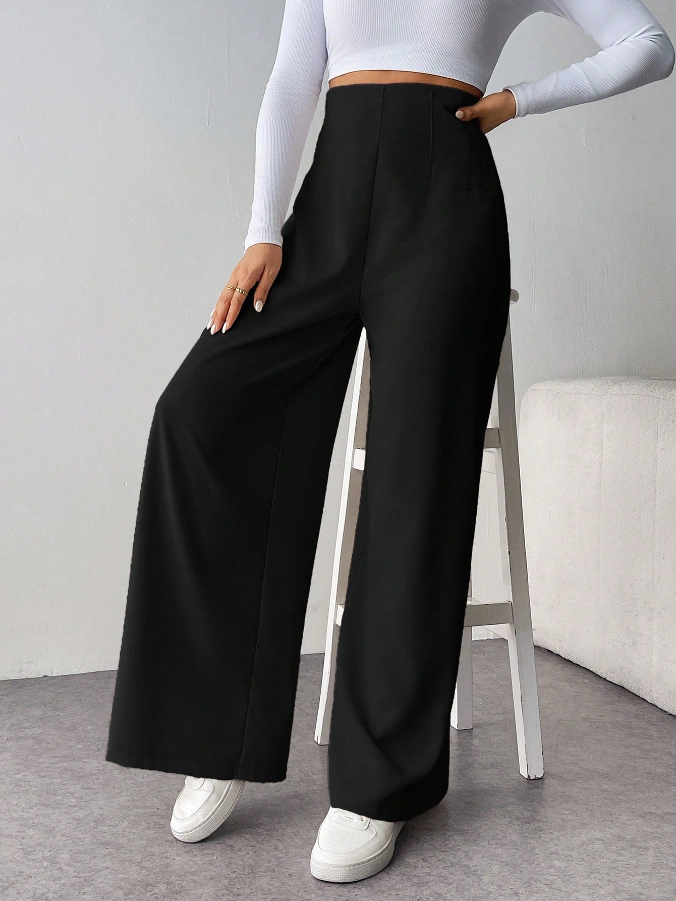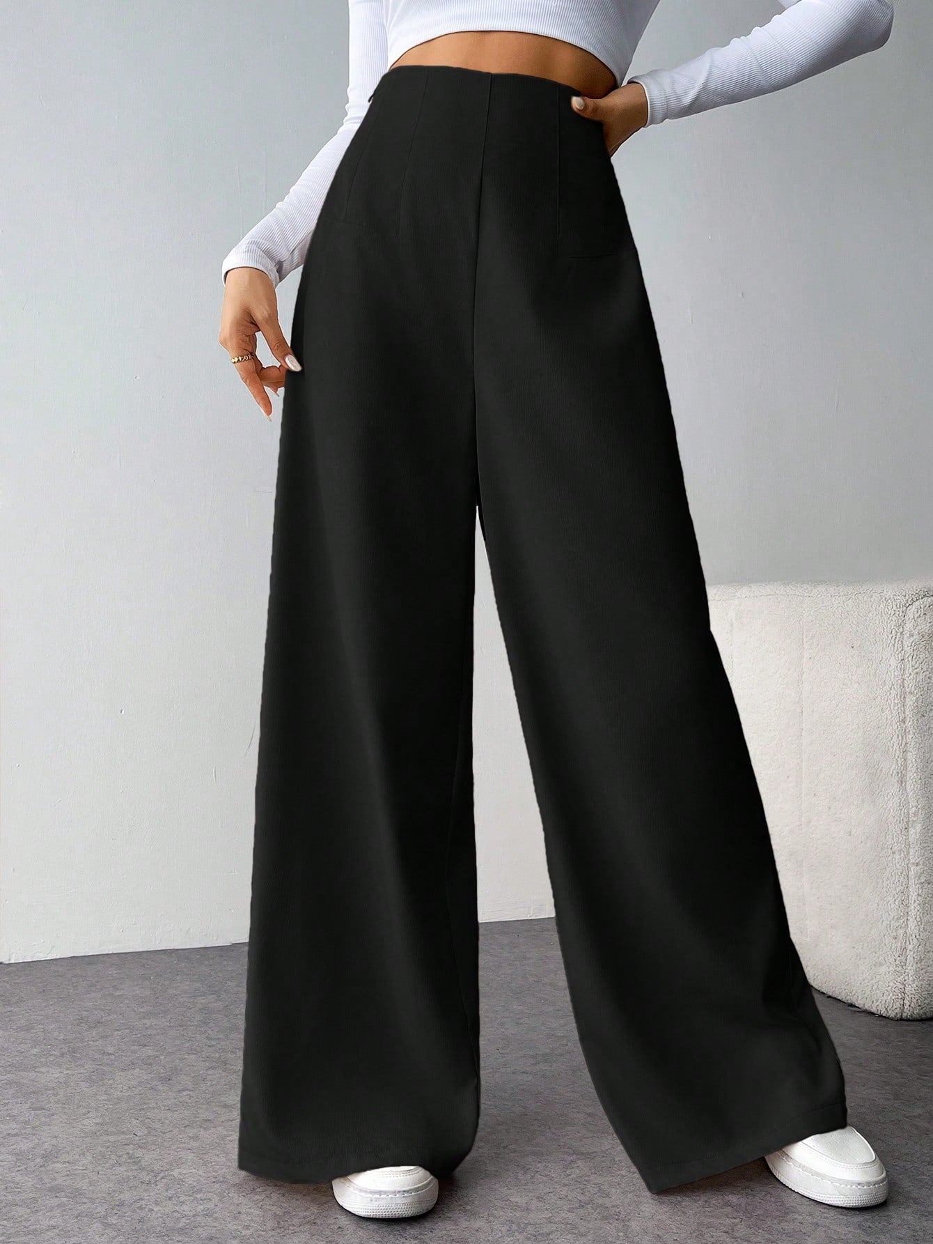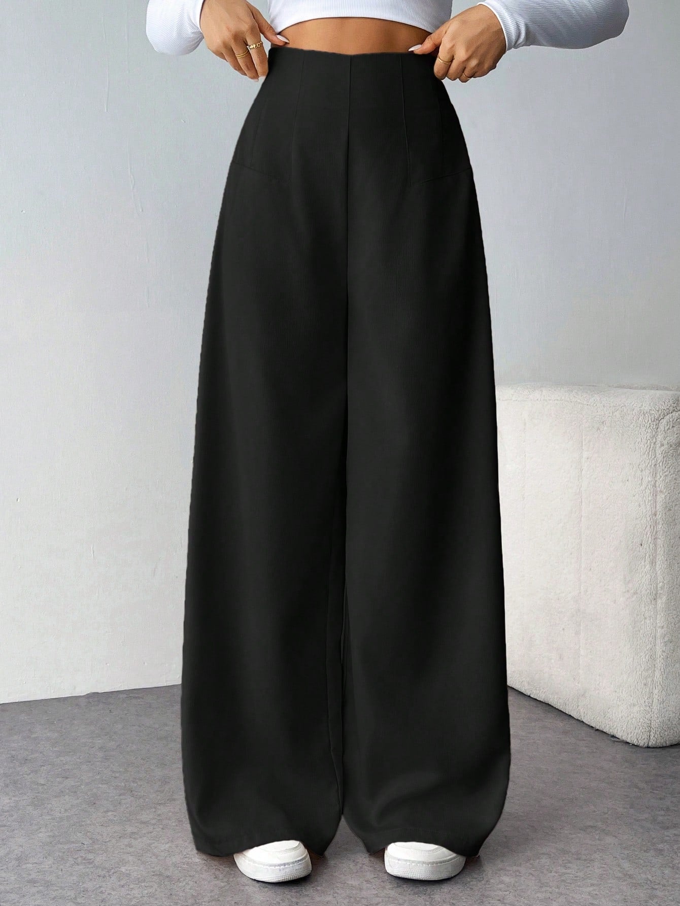 بنطلون طويل واسع الساقين بخصر عالٍ للنساء ذوات المقاسات الكبيرة من Tall CURVE، بنطلون كاجوال طويل بنقشة مميزة، مناسب للارتداء اليومي، بمقاسات كبيرة.