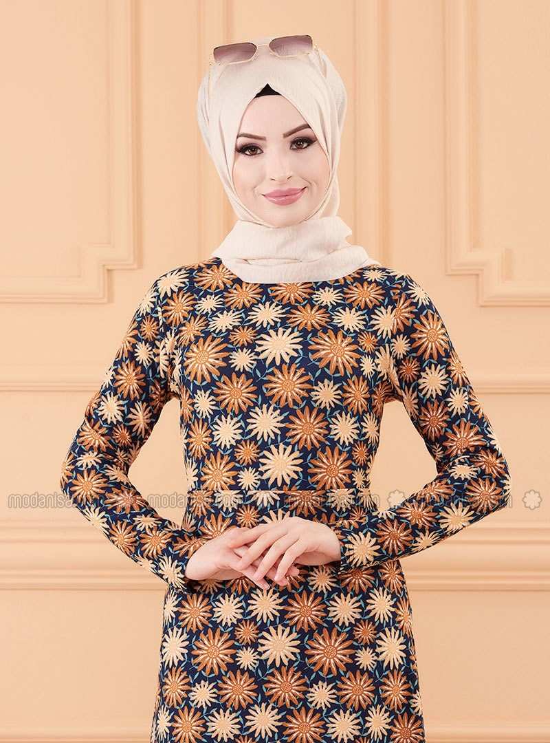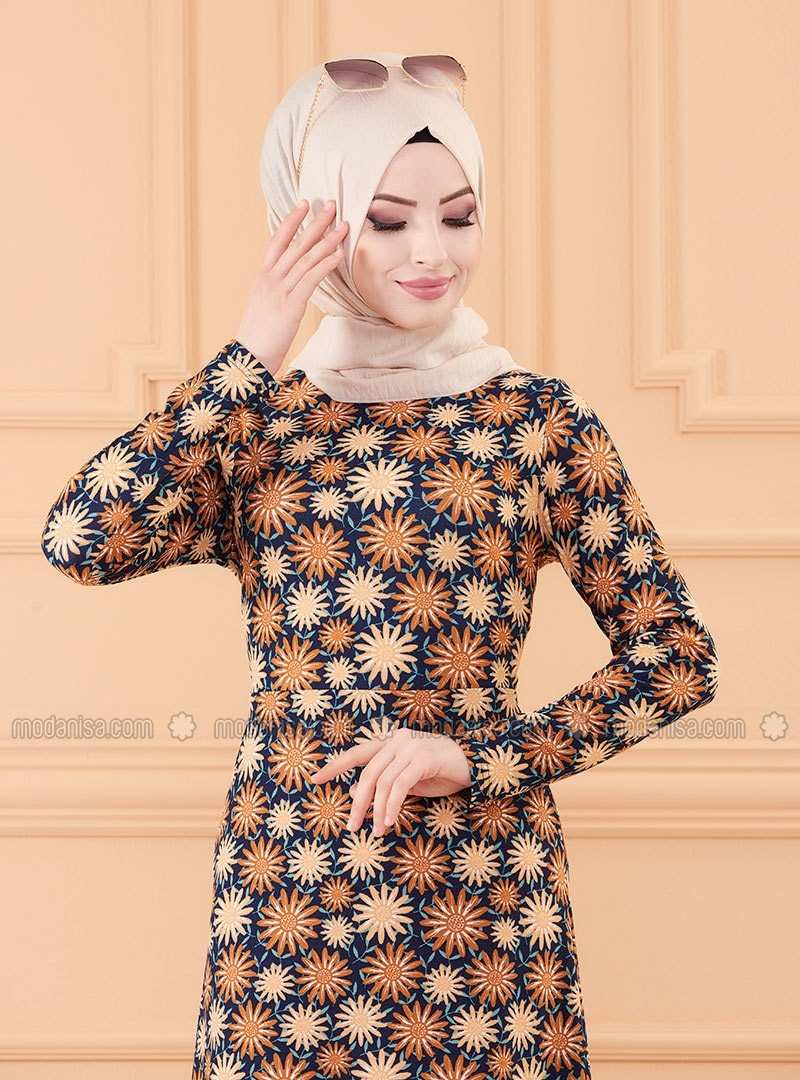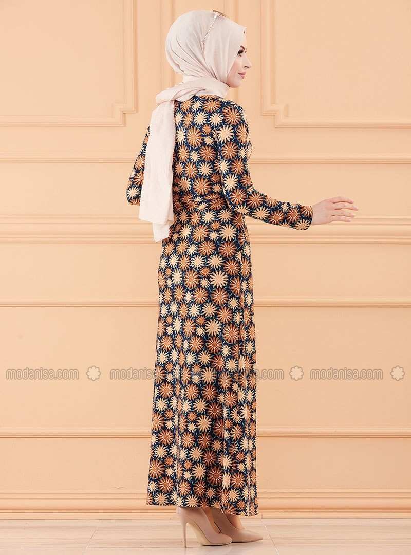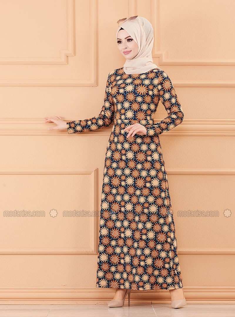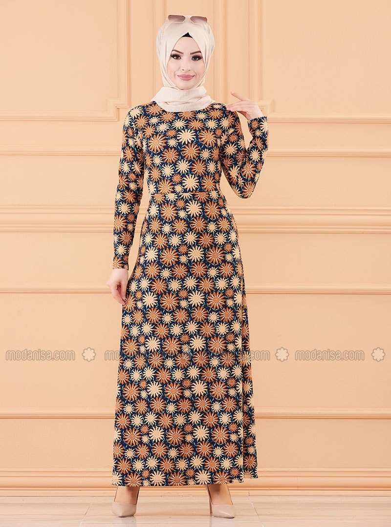 فستان محتشم من الفيسكوز، بياقة دائرية، وياقة مدببة، متعدد الألوان