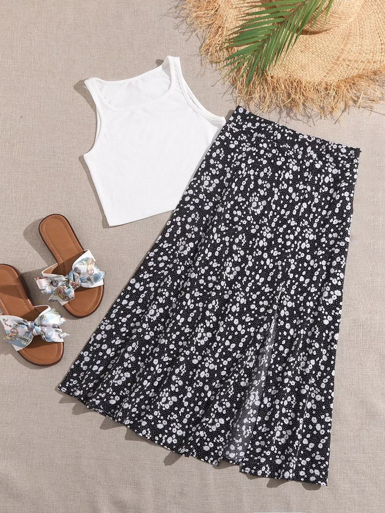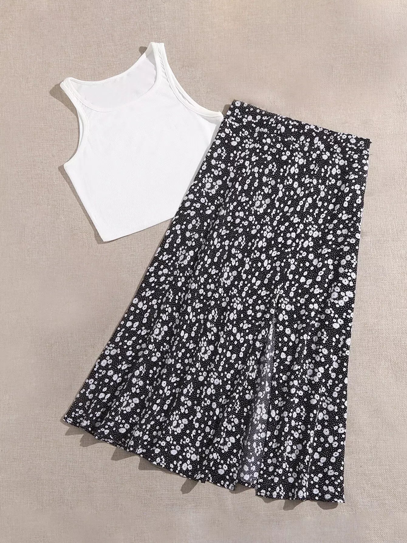 توب بدون أكمام مع تنورة ديتسي فلورال