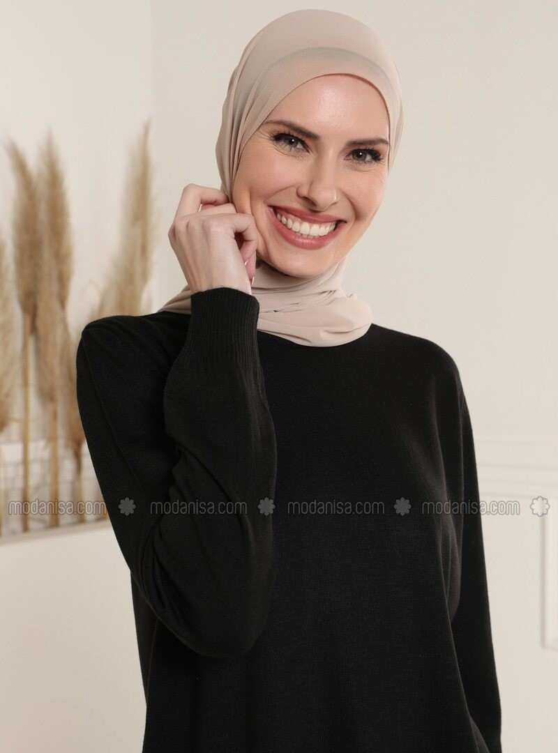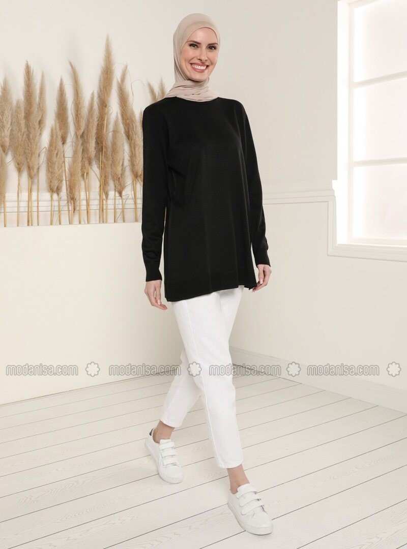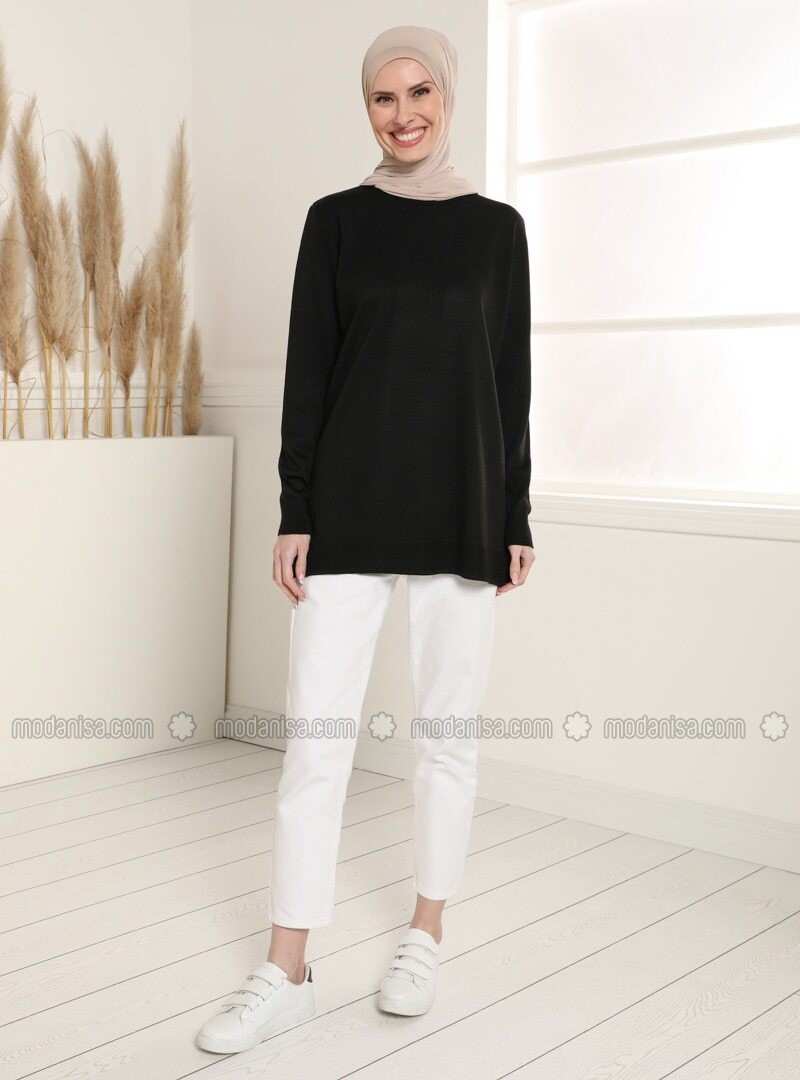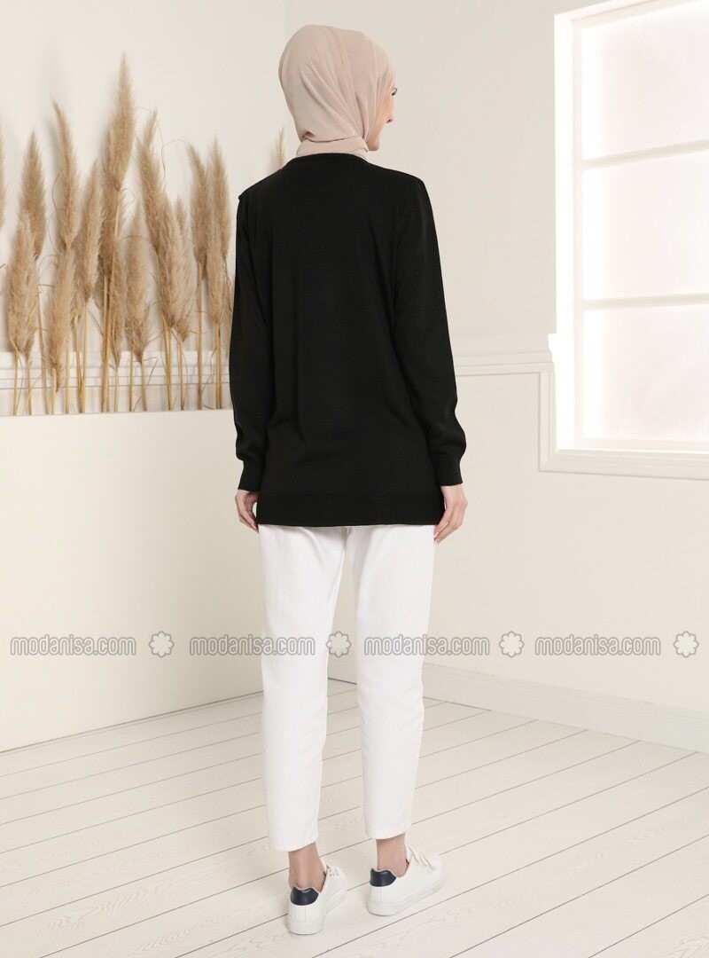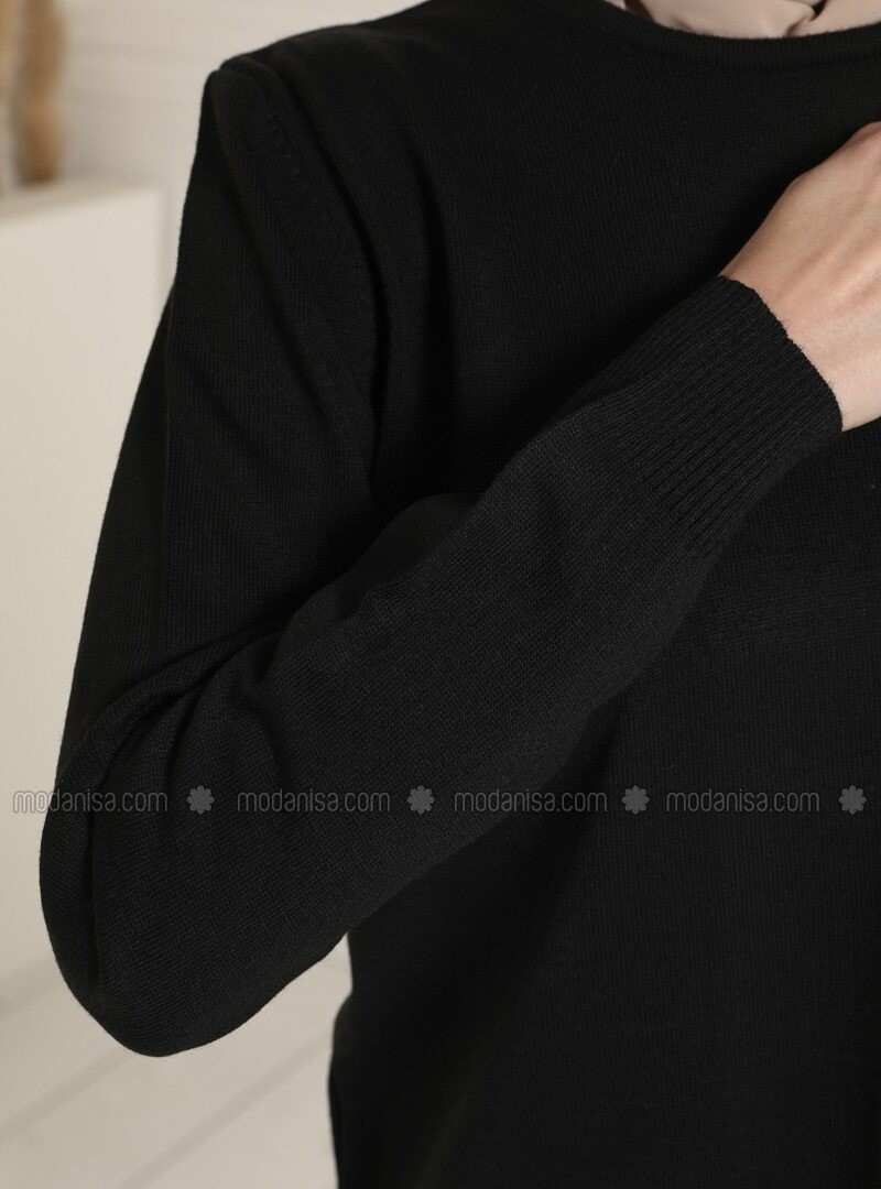 تافين سترة سوداء برقبة دائرية
