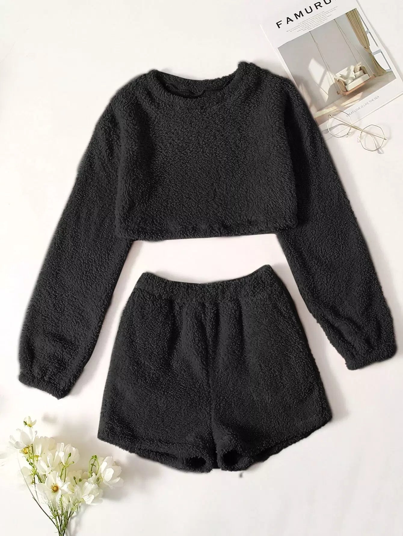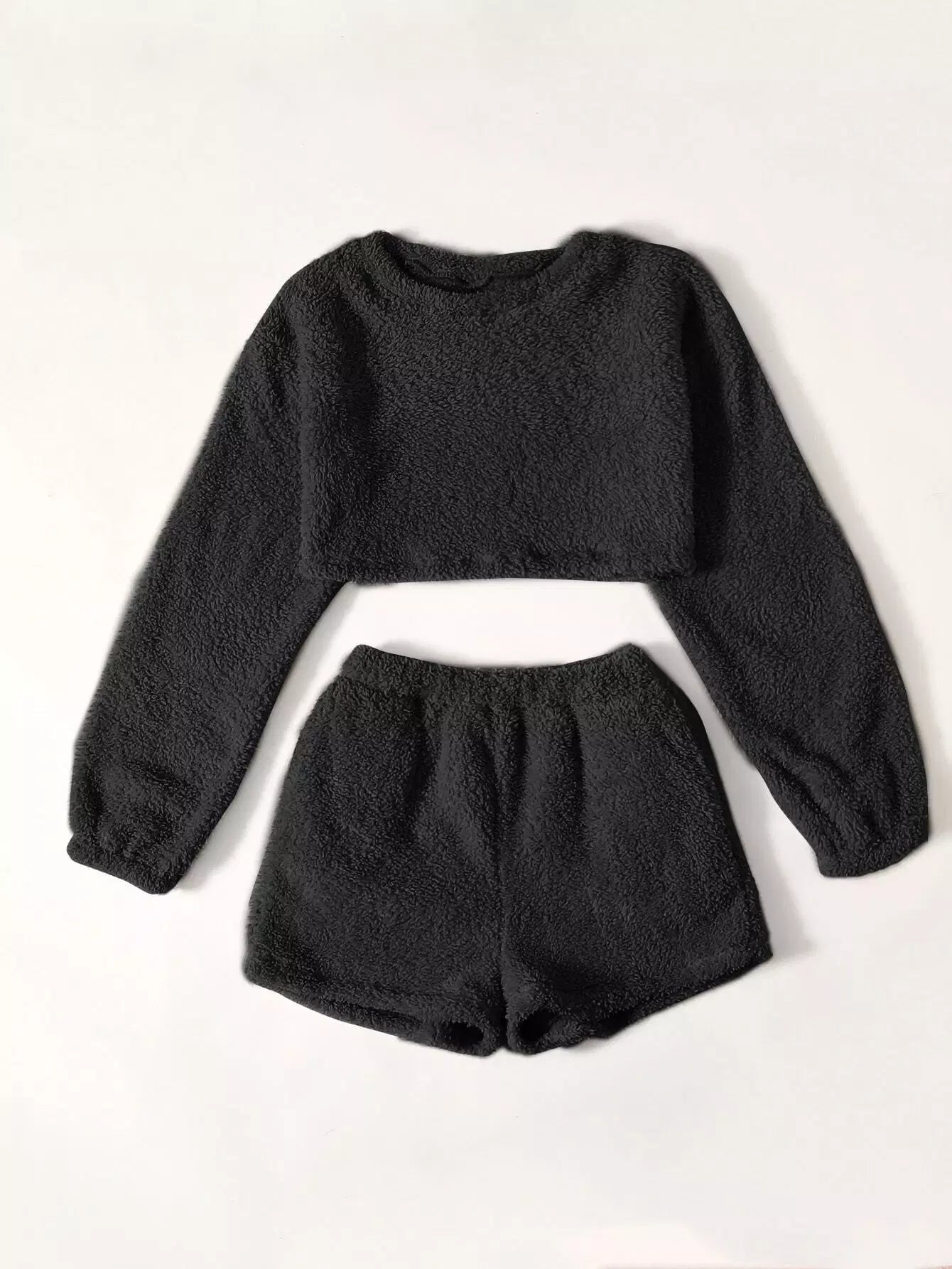 طقم تيدي كروب توب وشورت قصير سادة لصالة الاسترخاء