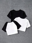 تيشيرتات محبوكة سادة ومطبوعة بنقوش للبنات المراهقات، طقم من 3 قطع