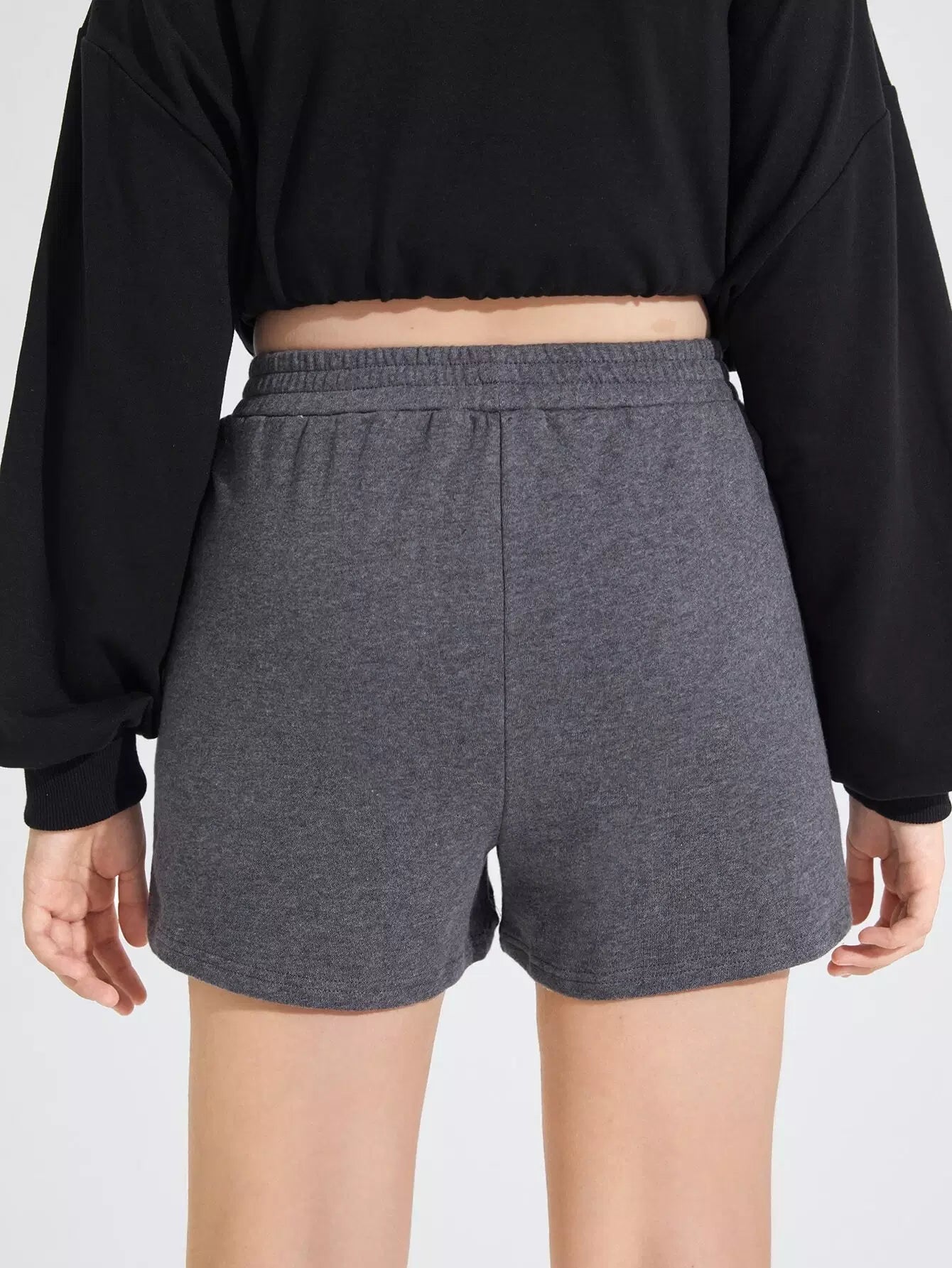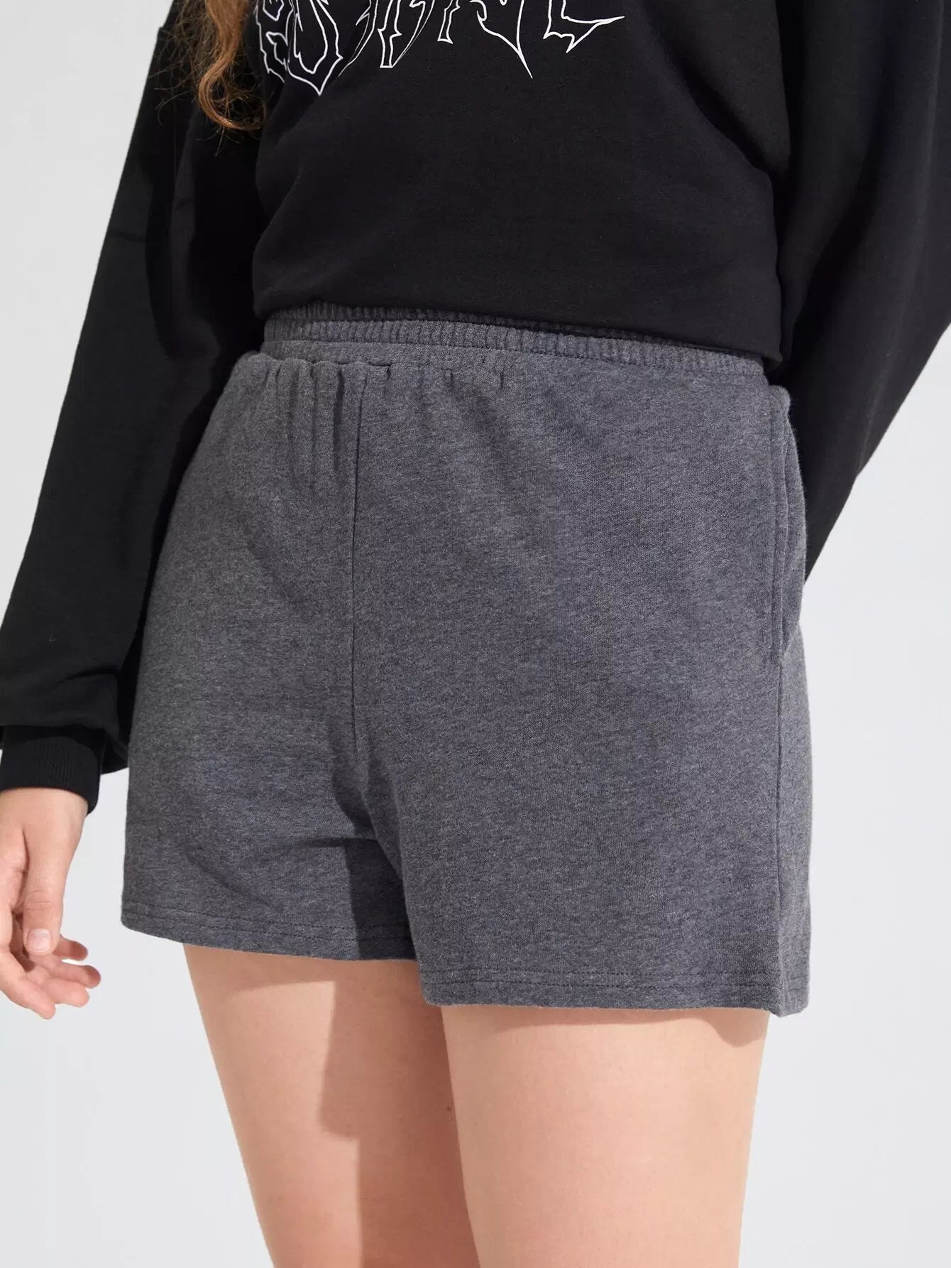 شورت رياضي سادة بخصر مطاطي وجيب مائل للفتيات المراهقات