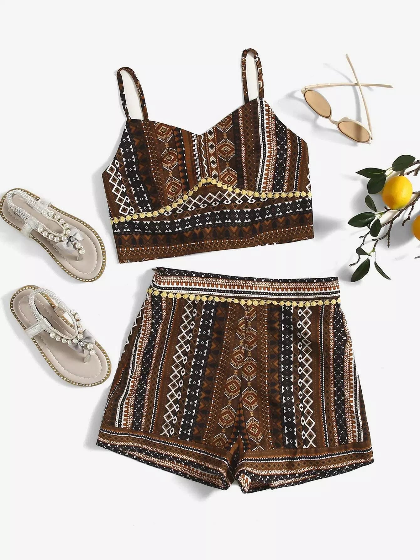 بلوزة وبنطلون قصير بنقشة جيو للبنات في سن المراهقة